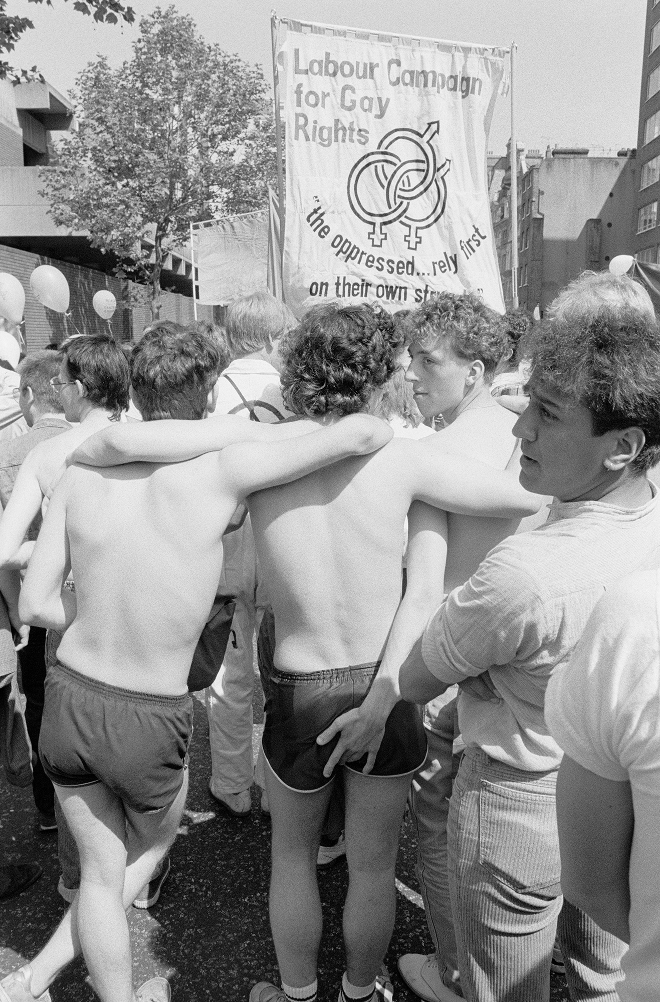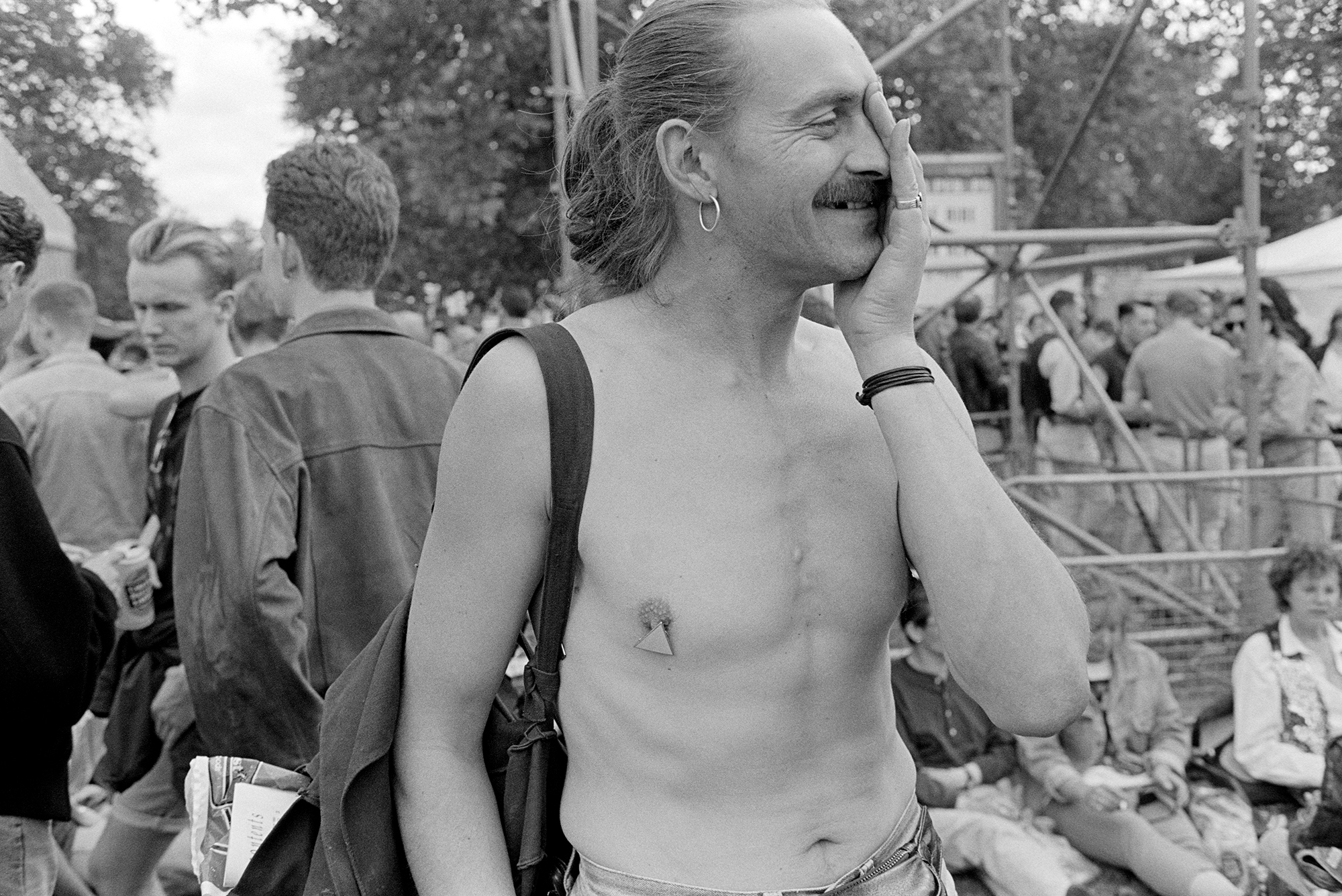 Now, his shots of gay rights protests, demonstrations, and early Pride marches from the late ‘80s and early ‘90s are published in his photobook Come Out. Shot in black-and-white, the pictures are an intimate window into London’s gay community through the lens of protest. Filled with warm, joyful portraits, they present an unconventional view of protest photography.