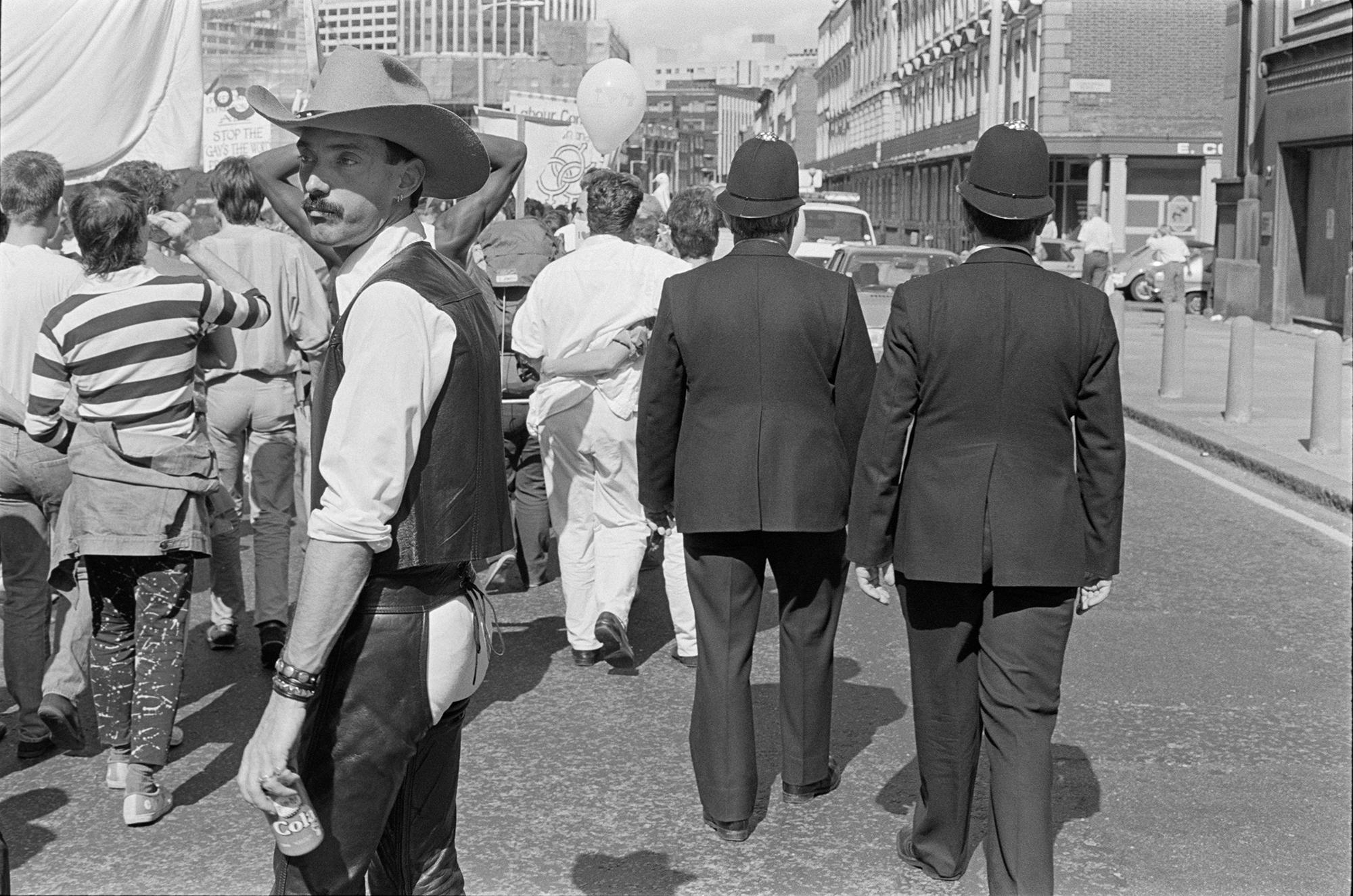 On top of issues affecting Britain’s LGBTQ+ population, such as Clause 27 (which would later become Section 28) that banned any material ‘promoting’ homosexuality, the book also features shots from demonstrations protesting other issues of the day – from anti-nuclear marches to solidarity with the miners strikes. With LGBTQ+ rights factions turning out at these protests, it was all seen as part of an interconnected struggle.
