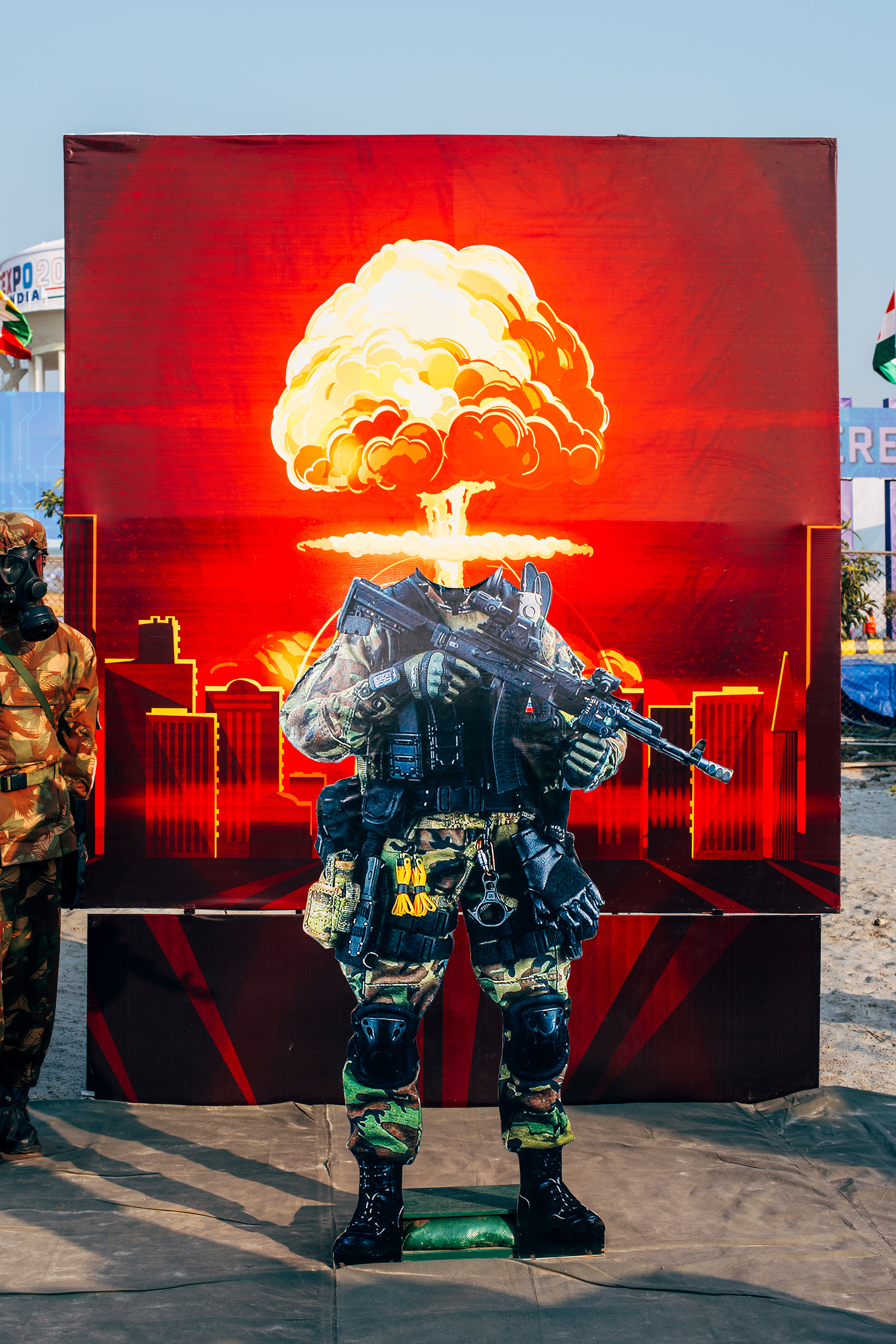 On January 21, 2019, photojournalist Nikita Teryoshin was in the main hall of Abu Dhabi’s expansive National Exhibition Centre, surrounded by booths and stalls filled with giant shells, tanks, and some of the most powerful people on the planet. He had travelled from his Berlin home to the UAE’s capital for the 25th anniversary of the International Defence Exhibition and Conference (IDEX), and to celebrate the landmark year, its organisers unveiled a particularly special surprise. At the room’s head was a table-sized cake, featuring a bizarre land, air and sea militarised scene, lined with edible ammunition across its rear.
