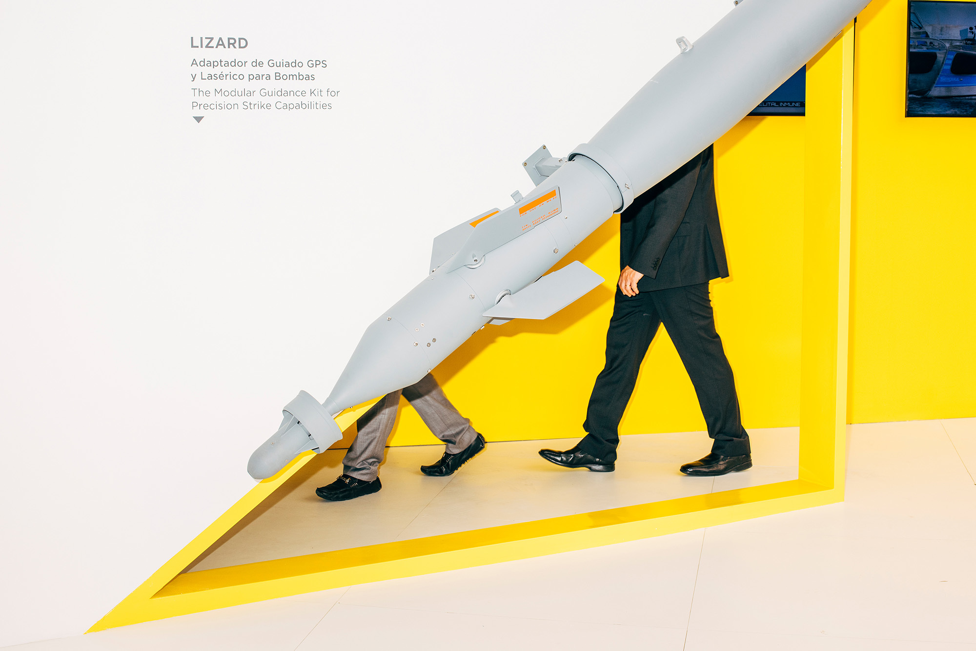 The book is a window into the shady business of arms dealing, and the barely believable ways in which lethal weapons are commercialised and sold. Usually advertised as “defence shows” or “airshows”, the events give companies space to show off their latest innovations in military technologies. Ammunition and warheads appear in all shapes and sizes, while simulators, models and demonstrations highlight their power – if not their human impact. From the first fair he visited in Poland, Teryoshin was immediately struck by the contradictions that they presented. “It was pretty cynical actually, people were just selling weapons like vacuum cleaners,” Teryoshin says. “It was like a playground for adults – people were in suits shooting bazookas or machine guns plugged into screens, so I was pretty shocked.”
