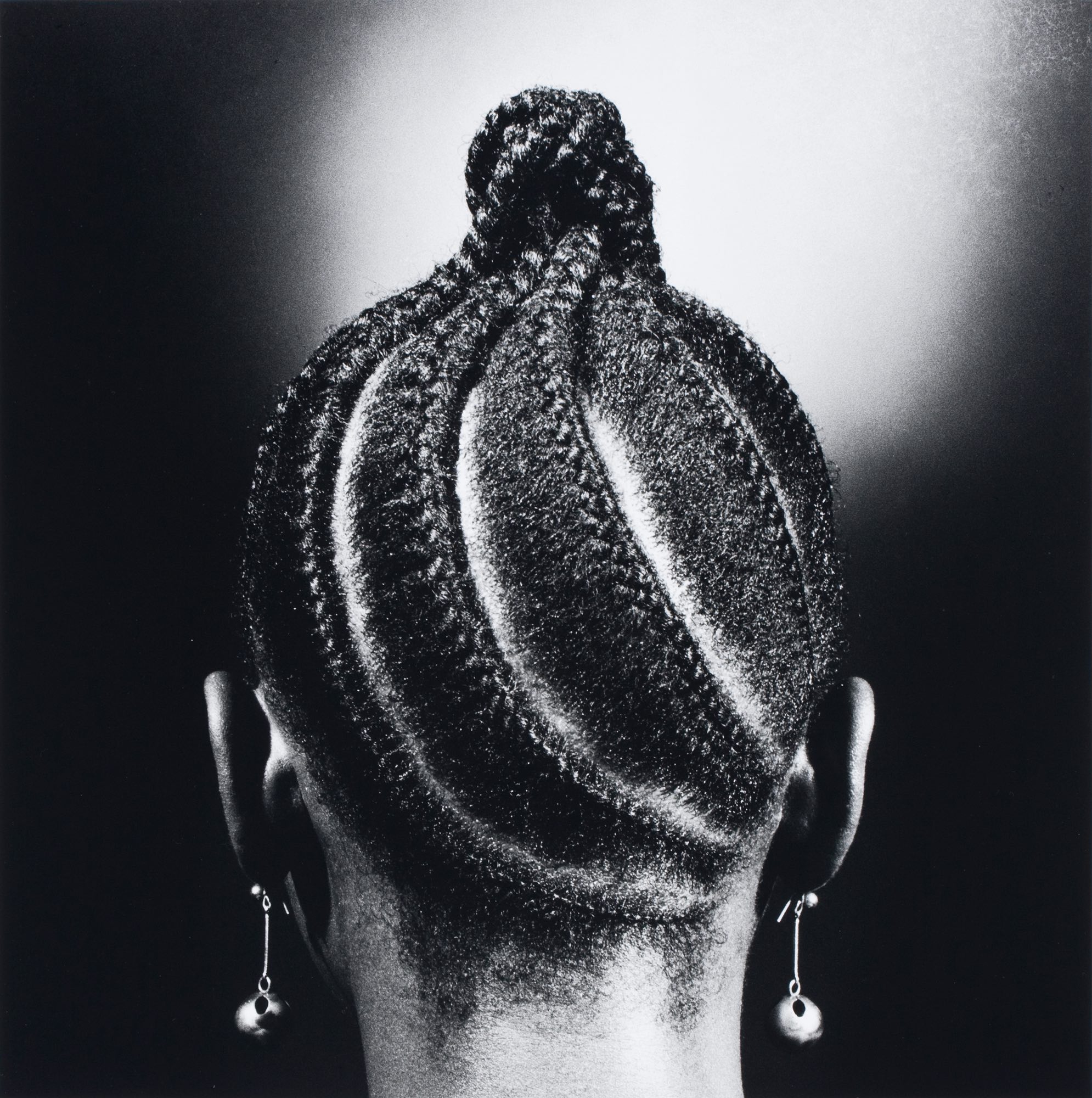 J.D. ‘Okhai Ojeikere, Untitled (Suku Banana Onididi), from the series Hairstyles, 1974 (printed 2009). Courtesy of The Walther Collection and Galerie Magnin-A, Paris