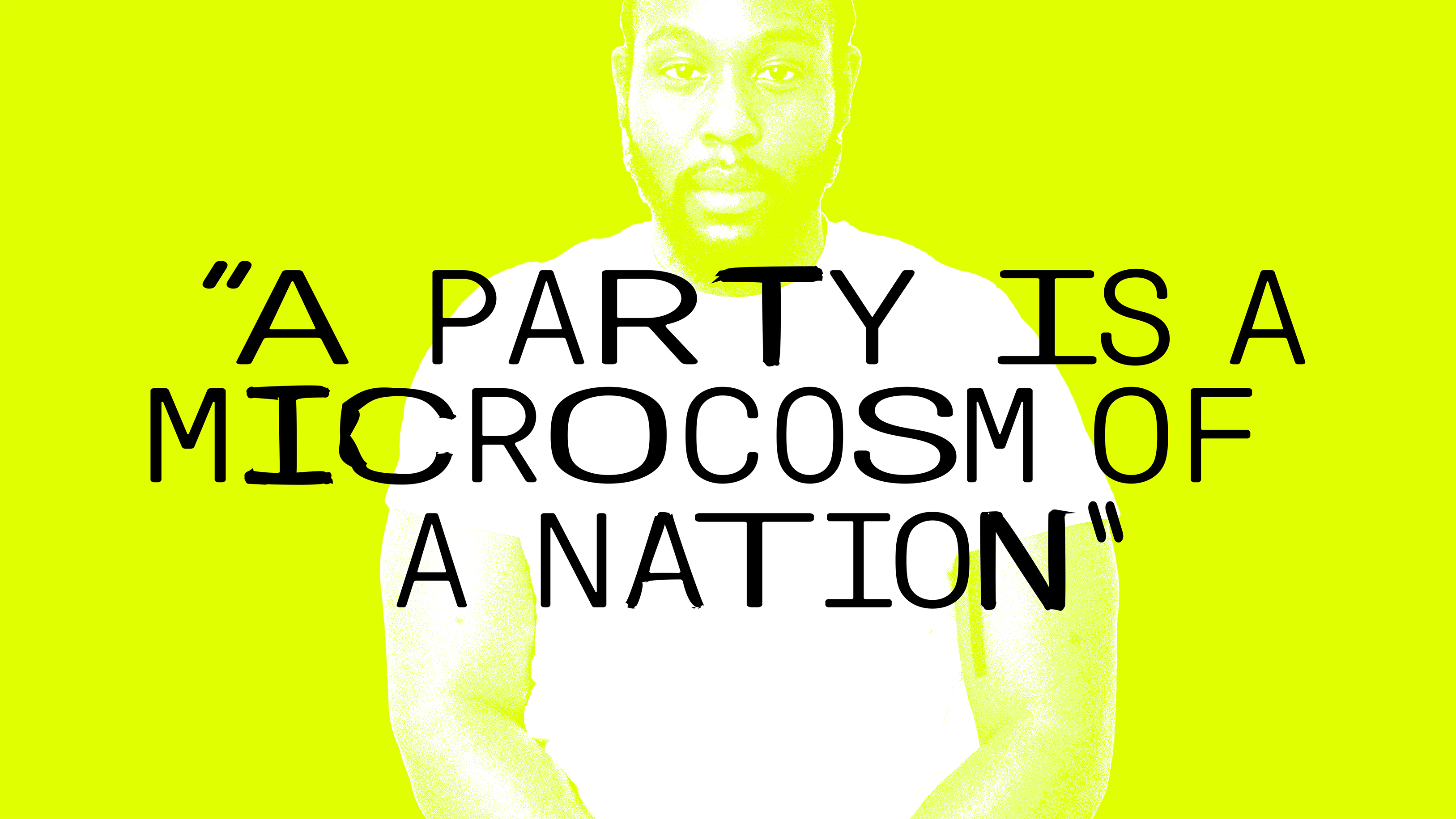 I think a party is a microcosm of a nation. Everybody’s narratives collide with everyone else’s at a party. You’re at the same party, but your entry points are different – some people have come to that party because they’ve had a really long week and they just want to find a way to renew their spirit, others are there because there’s someone that they love, and for some people times are hard and they’re lonely. Loneliness is such a rising factor in society – coming to a party, even if you don’t know anyone there, you feel like you’re part of a community and you belong. I think as a functional entity, house parties are there to strengthen the bonds between us as people, regardless of our motivations.