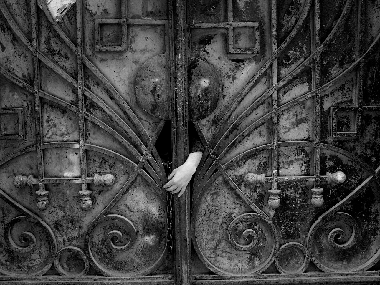 Bright Darkness, a black-and-white picture he took of that chandelier, with the small figure of a man standing to its right giving away its immense scale, is now featured as part of Micalizzi’s new exhibition A Kind of Beauty, which is on view at Milan’s 29 Arts in Progress Gallery from April 4 until June 28. Curated by Tiziana Castelluzzo, it presents several of the photographer’s most important and powerful shots from conflict zones around the world from the past 15 years.