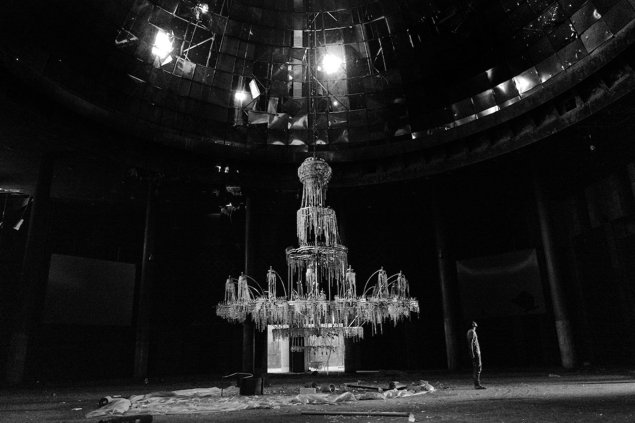 Inside, he found blown out windows and gunshots through walls, but also a strangely beautiful ornament that remained largely intact. “When the Libyan army took back this place, there was this chandelier that was so huge – five or six metres round, [hanging] from a mechanical rope,” he continues. “And everything around it was destroyed, but not the chandelier – it was a kind of resilience.”