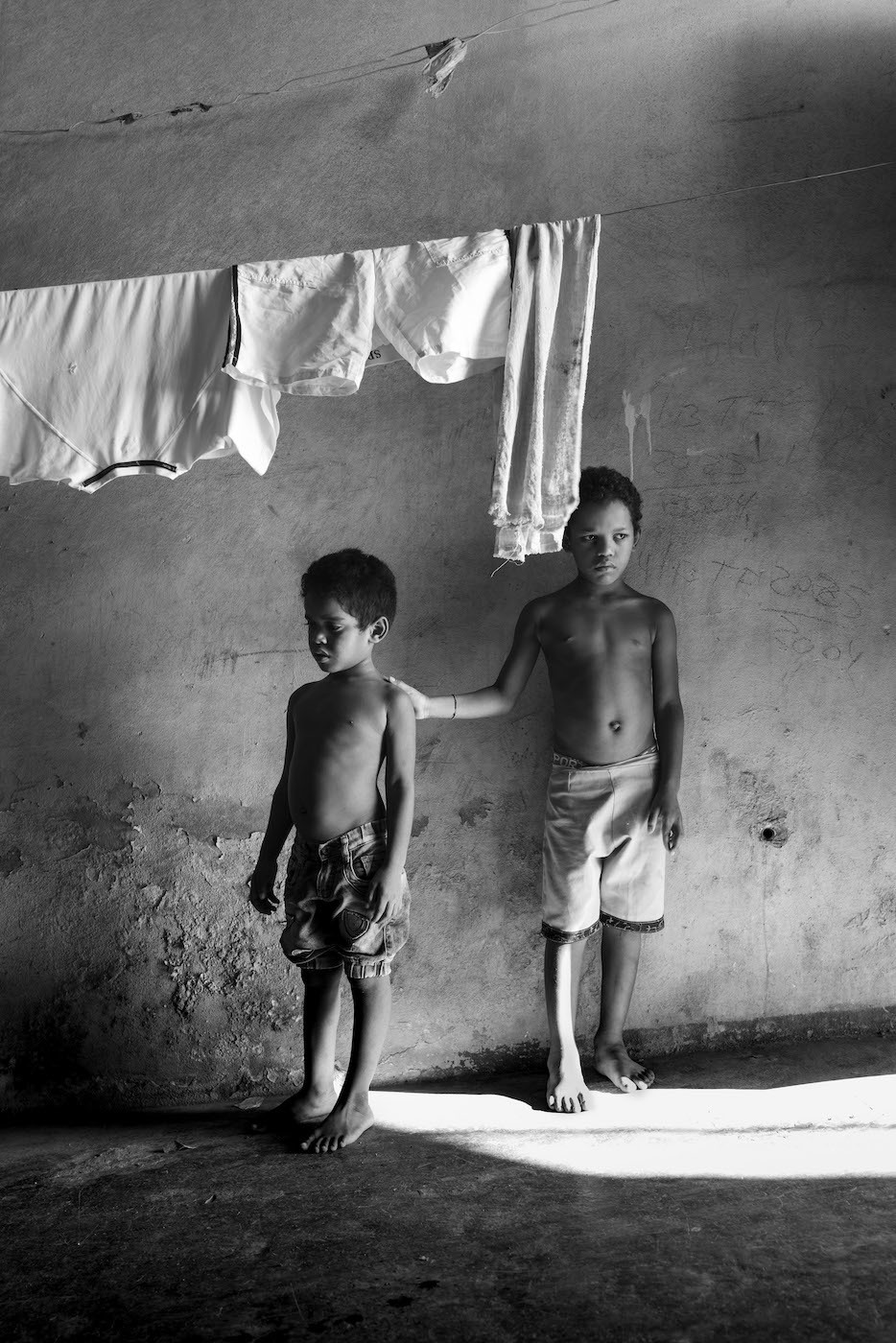 Inside was a bare-footed boy in shorts, brushing his teeth. As his gaze fixed on my cameras, I noticed tears streaming down his face.