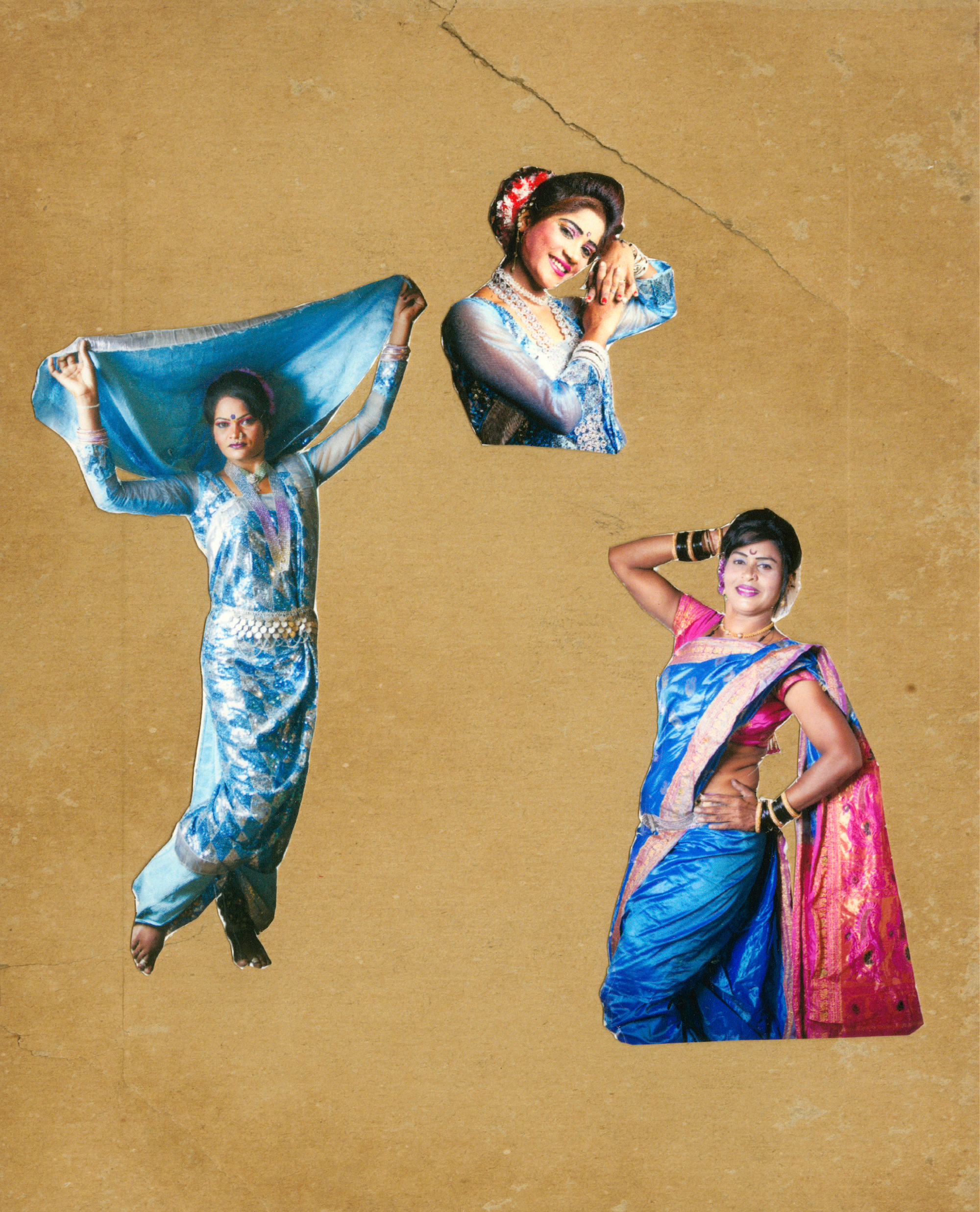 Khedekar would proceed to spend months on the road with the performers on numerous stretches until 2022, making pictures as well as mucking in with the production of the shows, and even getting on stage and performing. Now, some of his pictures are presented in his newly-published photobook Tamasha. With a mix of portraiture, candid shots of objects and creative collages, the pictures are a warm, vibrant and intimate window into the costumes, performances and characters of the nomadic show, as well as the wild operation that moving 100-plus performers, artists and crew on a daily basis takes.