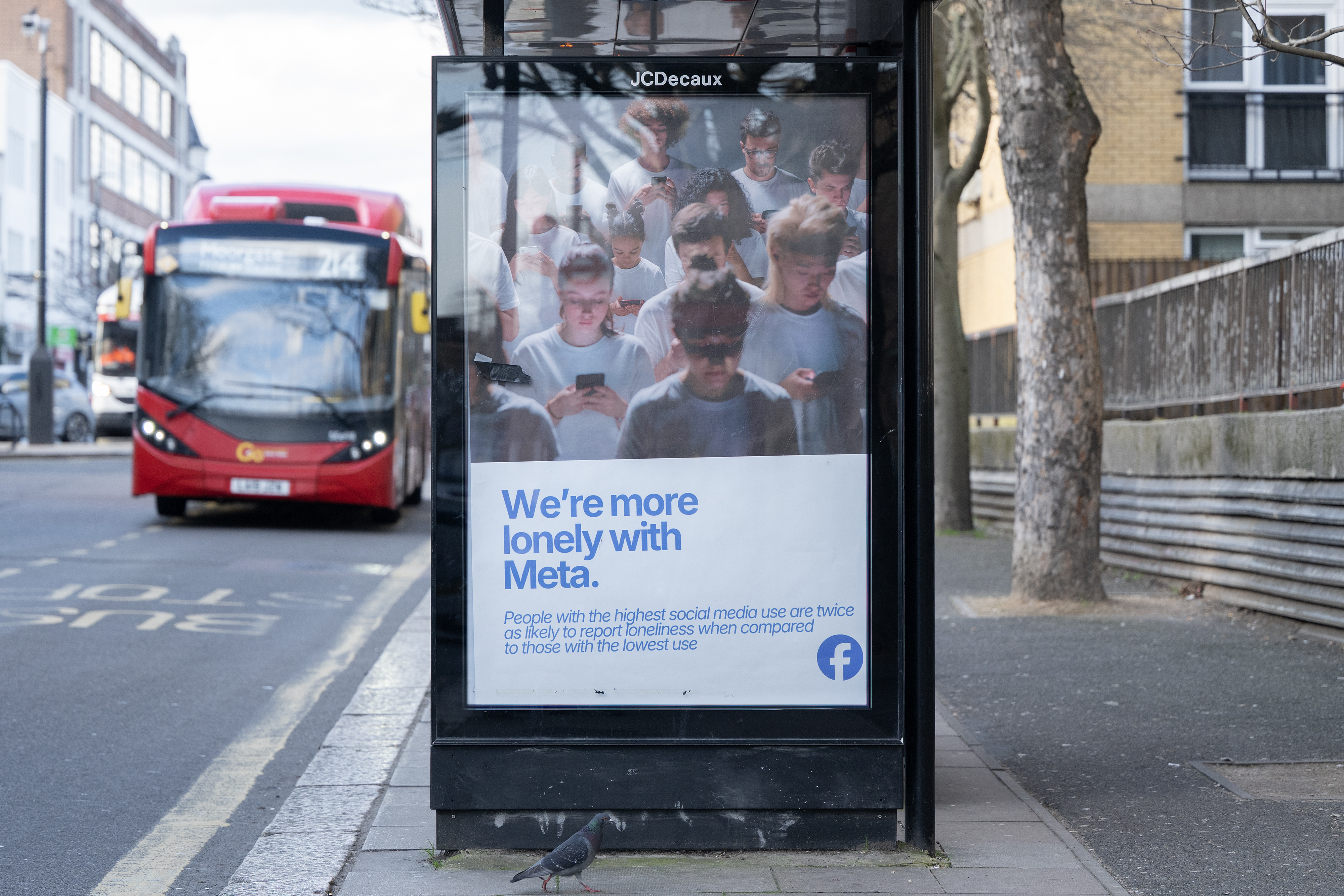 Posters mimicking ads for major tech platforms have appeared across London this week, accusing big tech billionaires of profiting from a growing youth mental health crisis. The campaign is plastered on billboards and bus stop posters, carrying messages like “The Youth Mental Health Crisis – Sponsored by Meta”, “Misery starts on TikTok”, and “We’re more lonely with Meta”.