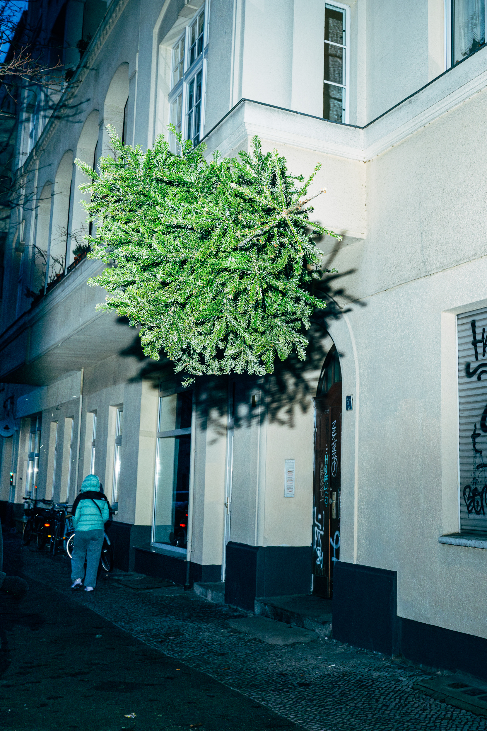 O Tannenbaum also features a series of action shots, with the photographer capturing people flinging Christmas trees out of their apartment windows. The very first one that Teryoshin took actually came courtesy of his neighbour, who dropped his tree to ground level from the fourth floor. “It was actually by accident,” he explains. “I didn’t know that people threw Christmas trees out of the window until I saw my neighbour. Then the next year, I posted on Instagram asking if people were going to throw their Christmas trees from their windows, went to their places, and took pictures.”