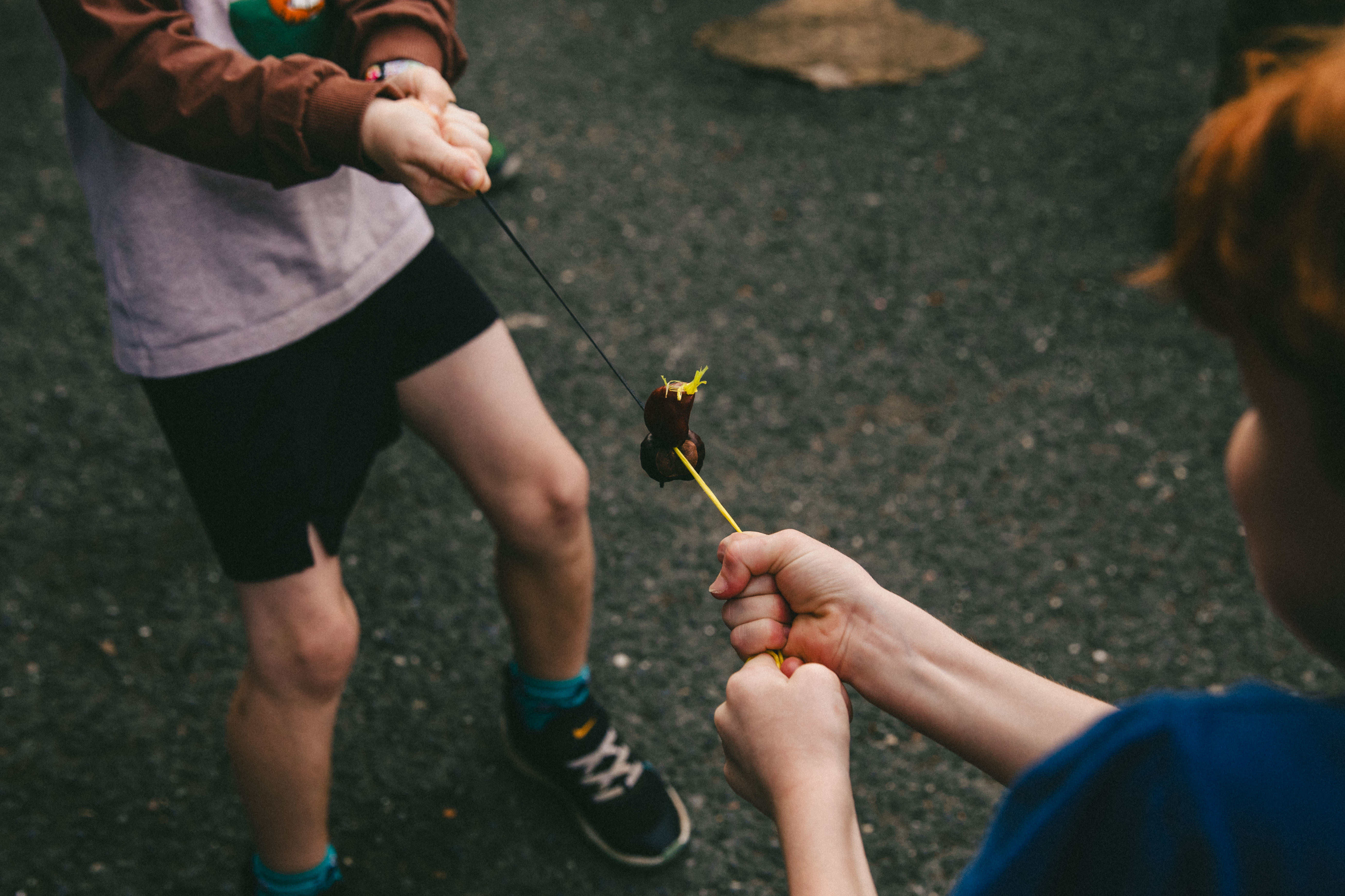 Conkers, typically, is a silly British game played by children across the UK every autumn. When horse chestnuts drop from their unfurled trees, players scoop them up, hole the nuts, thread a string through their centre and try to smash their opponent’s conker by swinging their own into it. The first recorded game happened on the Isle of Wight 175 years ago. Today, the World Conker Championships take place in Northamptonshire where the rules – stand one meter apart, don’t tamper or reuse your conkers, keep at least 20 cm of string between knuckle and nut are strictly enforced by finicky umpires. In Peckham, the competition is rambunctious: Battle Royale Rules– with cheating encouraged.