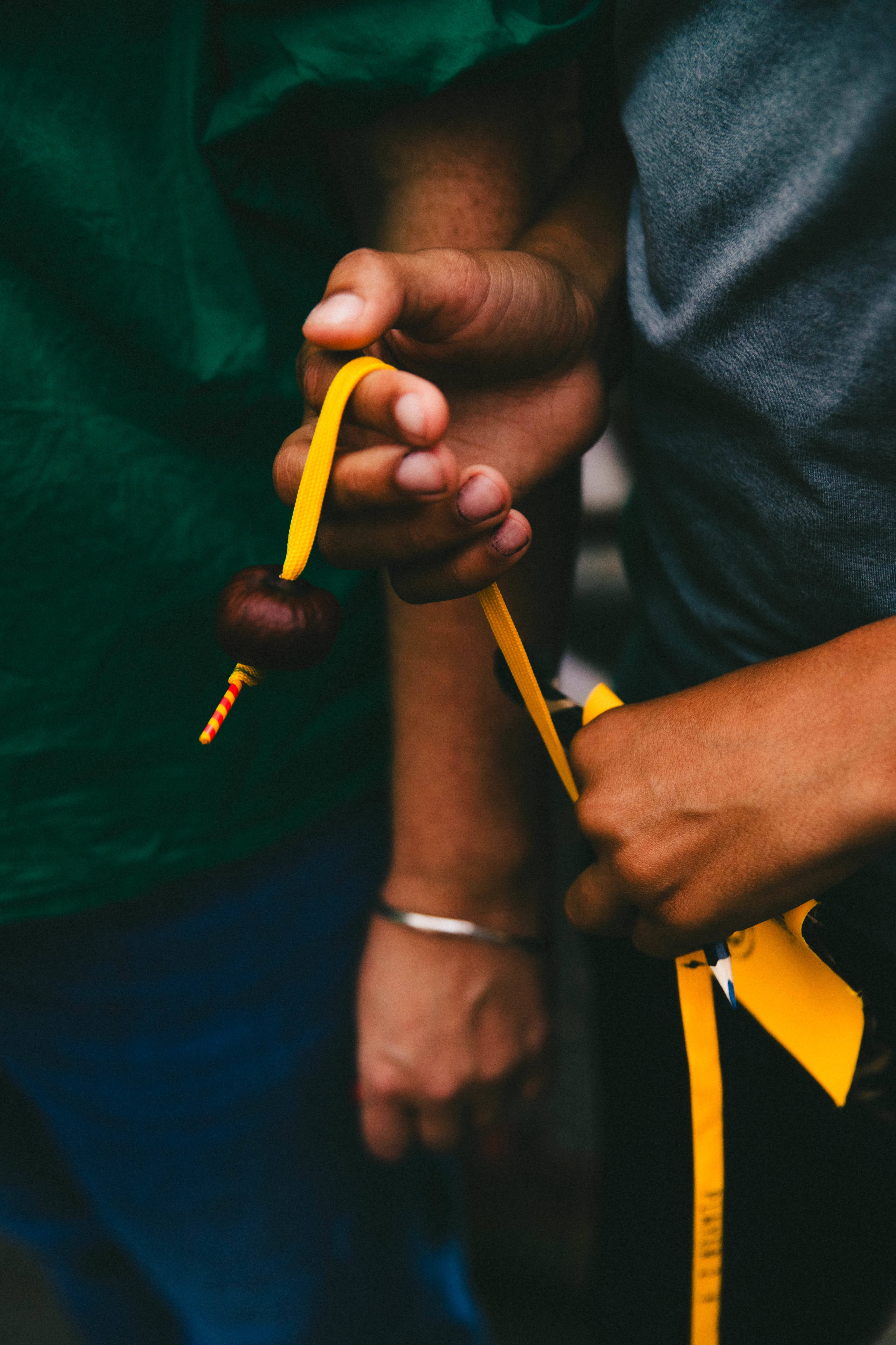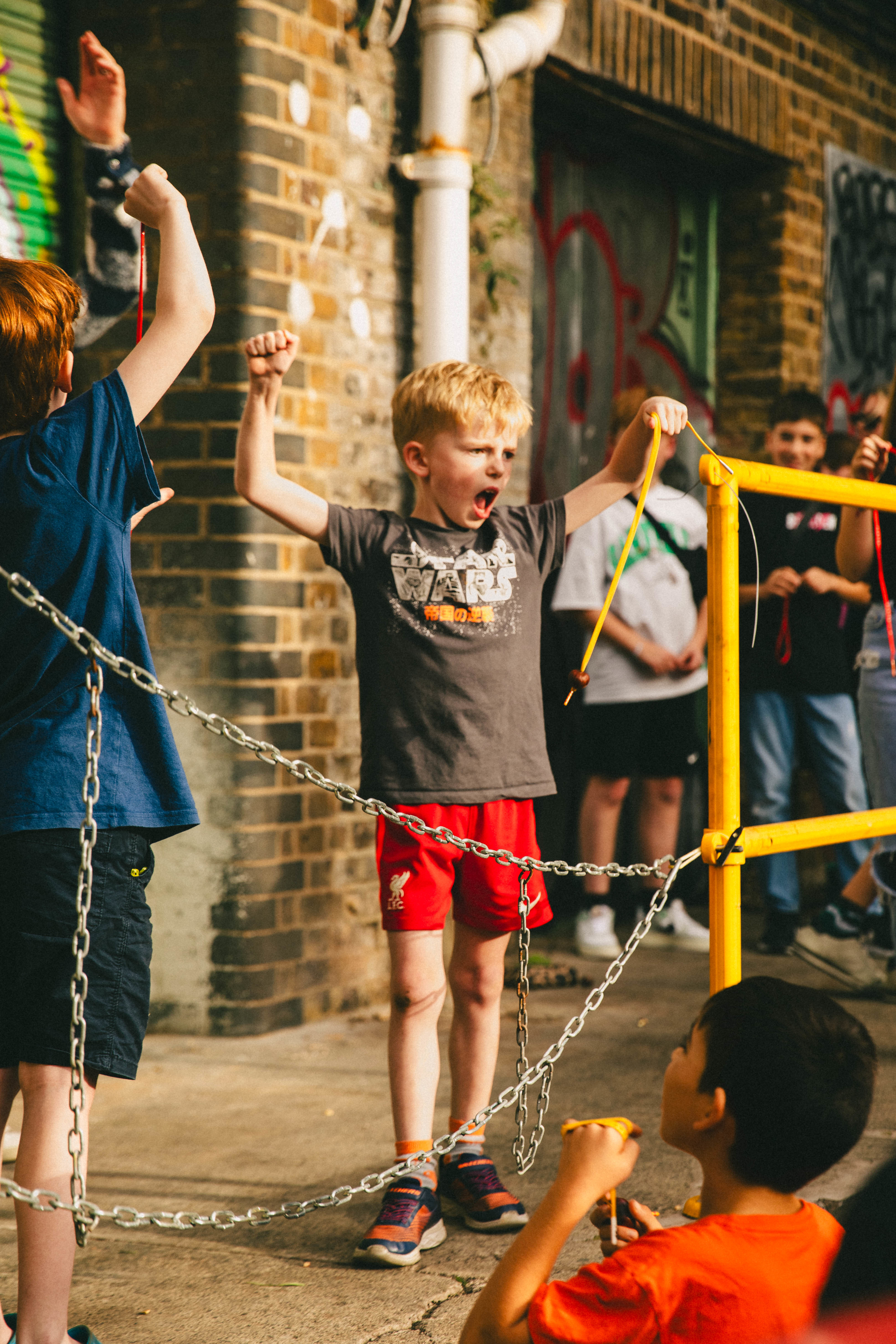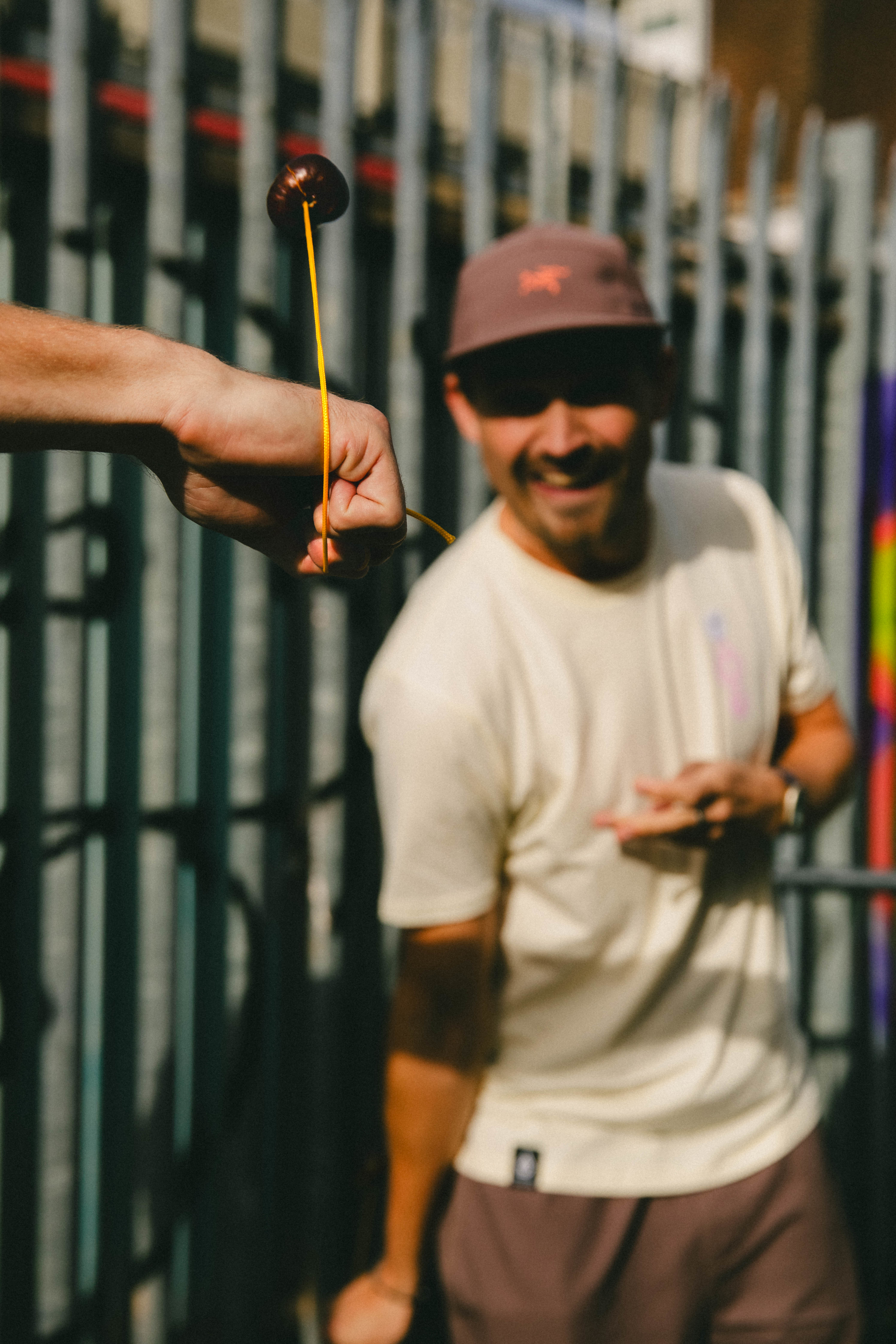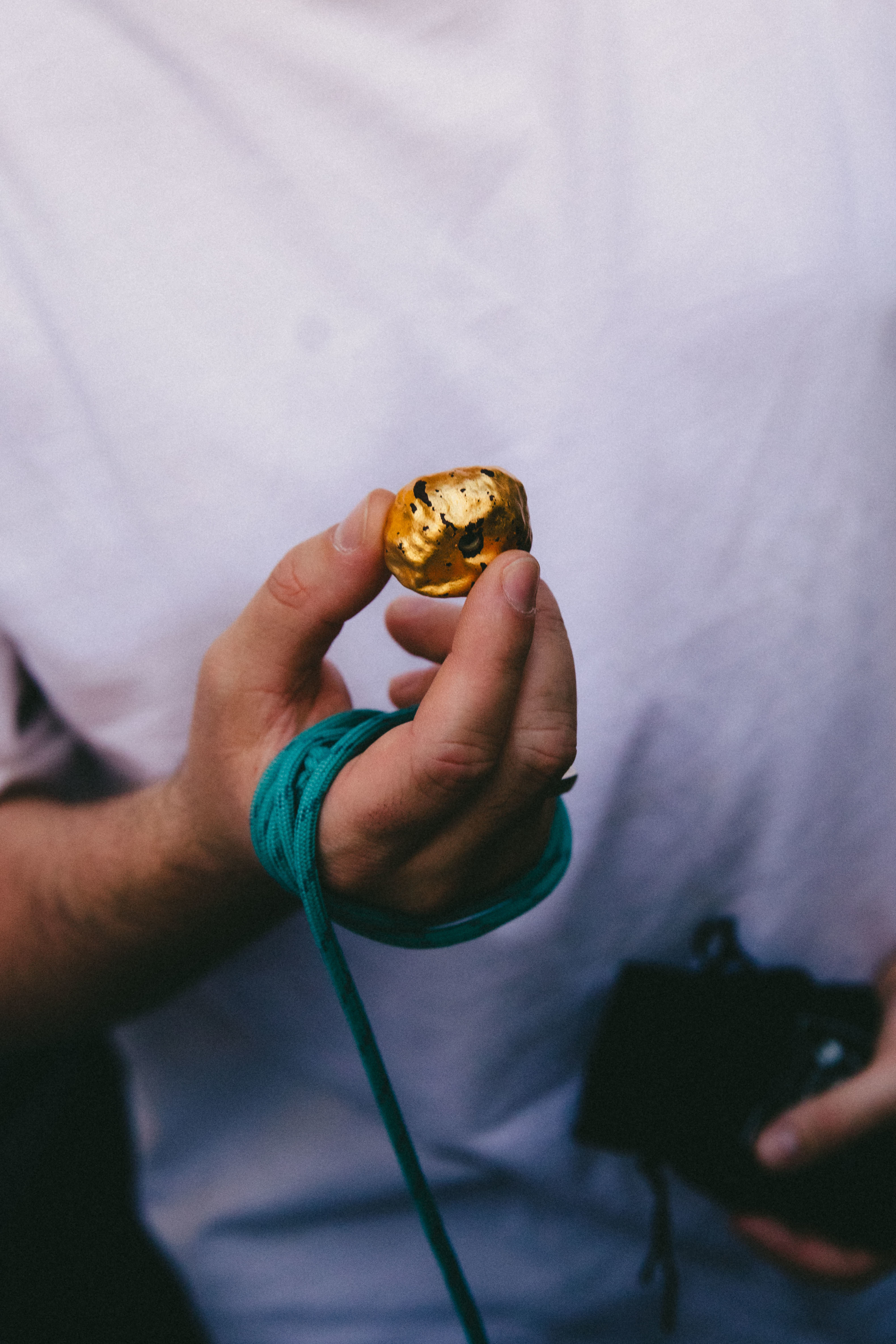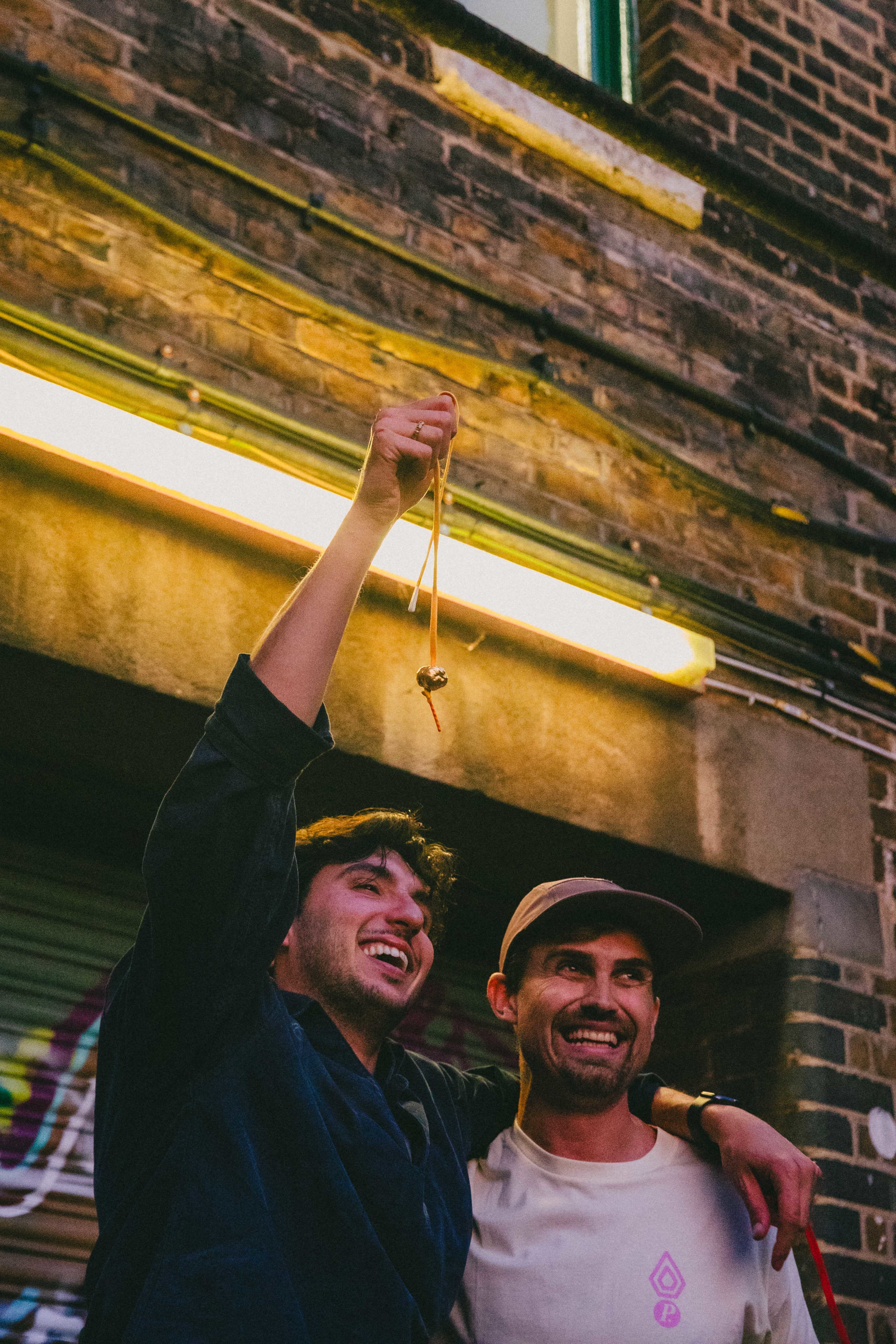 Swing after swing is swung but Pietro has no hits on target. Finn is frustrated, striking Pietro’s nut every time without an all-important break. After several minutes, and maybe twenty swings, the crowd chants for a “nut inspection” to analyse any cracks which may have appeared on either man’s apparatus. But, in the end, the victory comes down to brute force. Strings tangle once again. Finn’s knot flies apart and Pietro — poised and ready — stamps his way to victory. The crowd passionately applauds. Chris runs towards him proudly, golden nut in hand. Life-changing kudos is in the air as the sun sets over the arches.