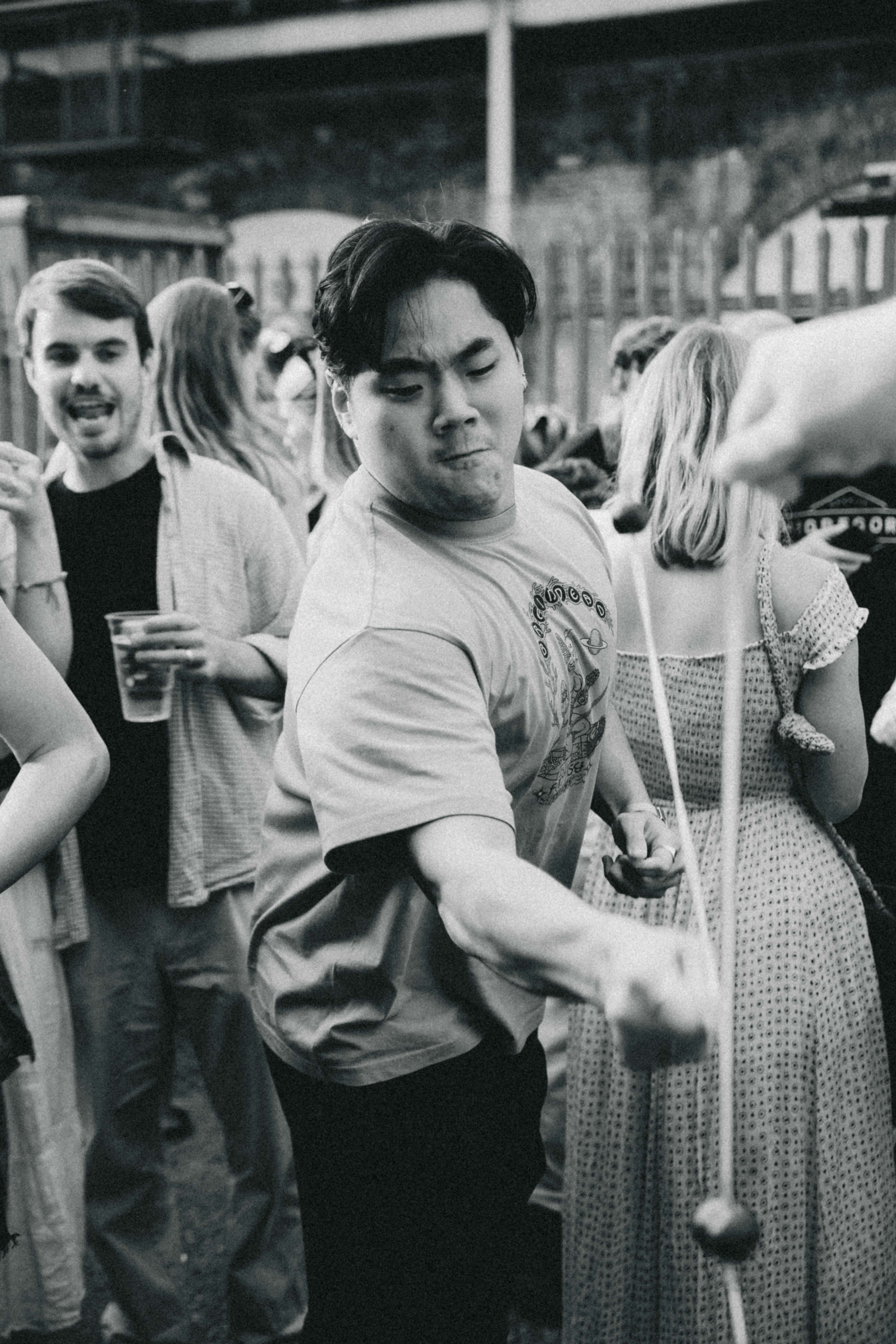 Chants of “Pi-et-ro” ring through the arches. His performance is theatrical. Shrugging in faux dismissal of Harry’s skill as the game continues. He throws the crowd side-eye expressions, playing with their investment in his every move: rolls back his shoulders, nods confidently, tells himself “Okay. Okay”, takes aim and swings. His conker tangles with Harry’s again. They slam against the wall, spinning round until — as suddenly as it began — it’s over. Harry Hard Nut, 2022 champion, is out of the tournament. Pietro, victorious, shakes both hands into the air like a conductor indicating a crescendo. The crowd obliges as screams of celebration reach optimum volume. Pints are thrown in the air.