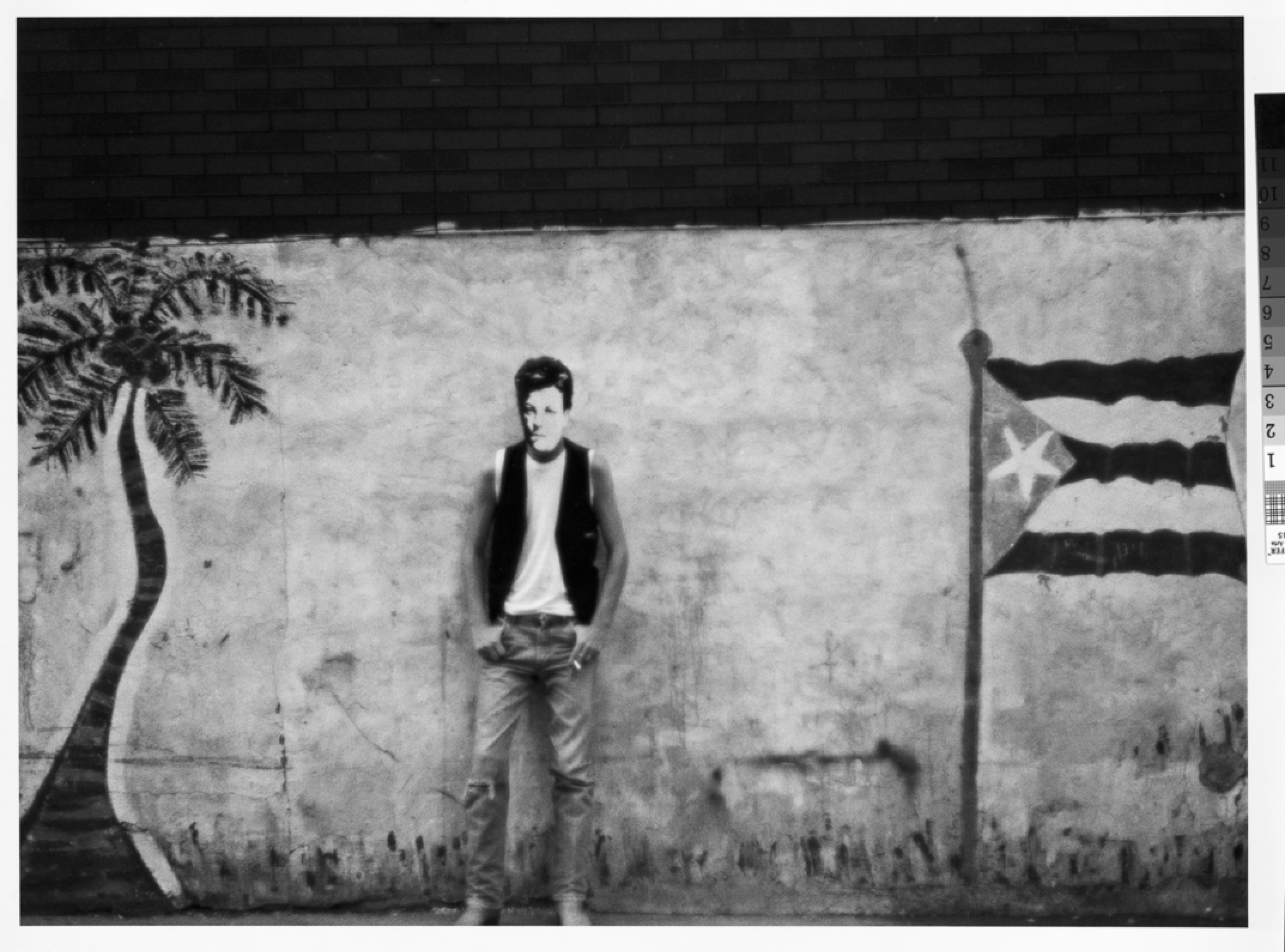 Upon his return to New York in 1978, Wojnarowicz embarked on his project Arthur Rimbaud in New York. He and collaborators donned a paper mask of the poet’s face, adopting poses provocative and prosaic around town, crafting sumptuous scenes cast against the crumbling city streets. Photographed with the knowing eye of the Pictures Generation, we see Rimbaud’s pallid veneer haunt New York landmarks like Coney Island and Times Square, hipster joints like Terminal Bar, and cruising grounds including the West Side Piers, the mask taking on a life of its own.