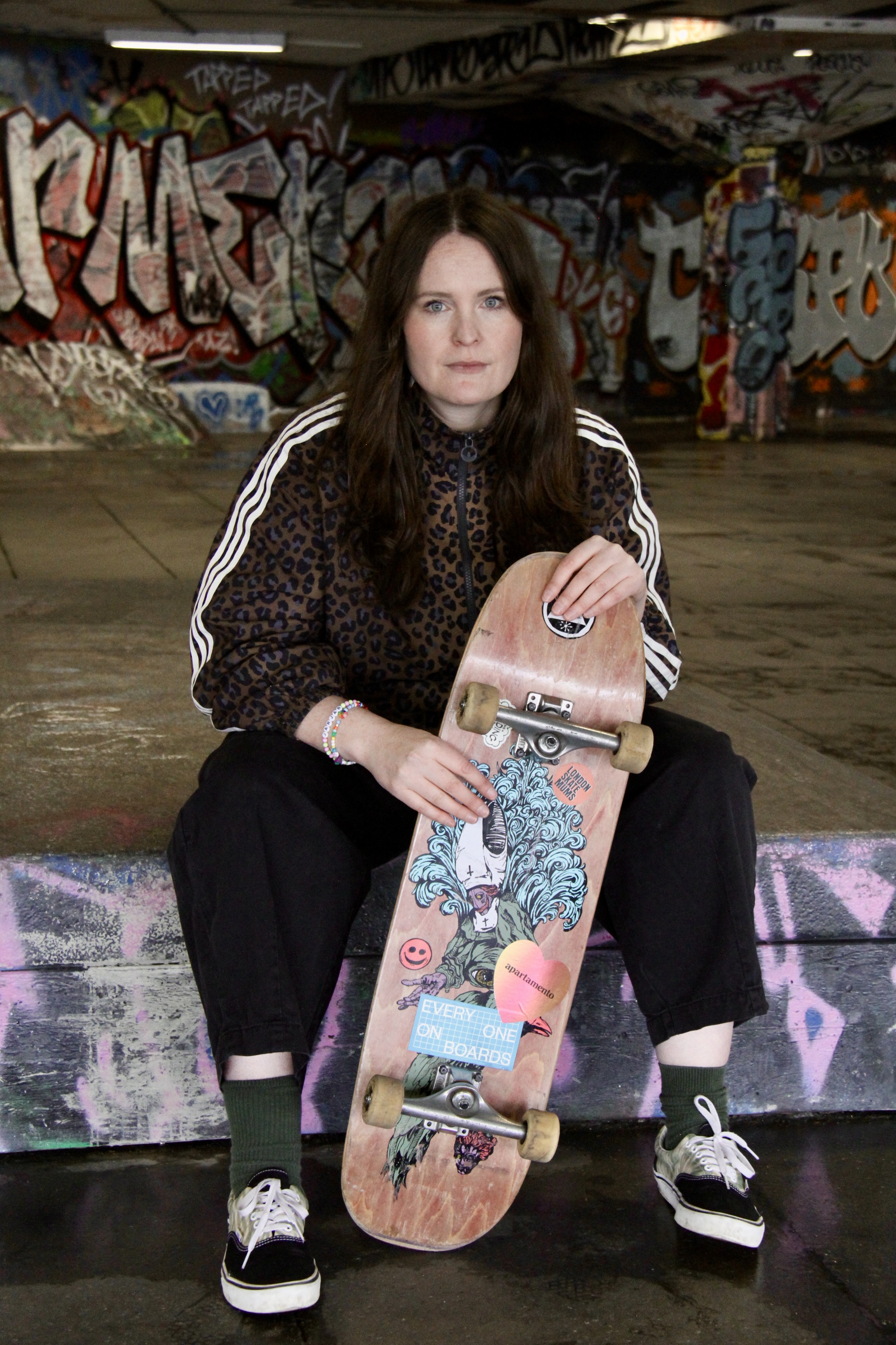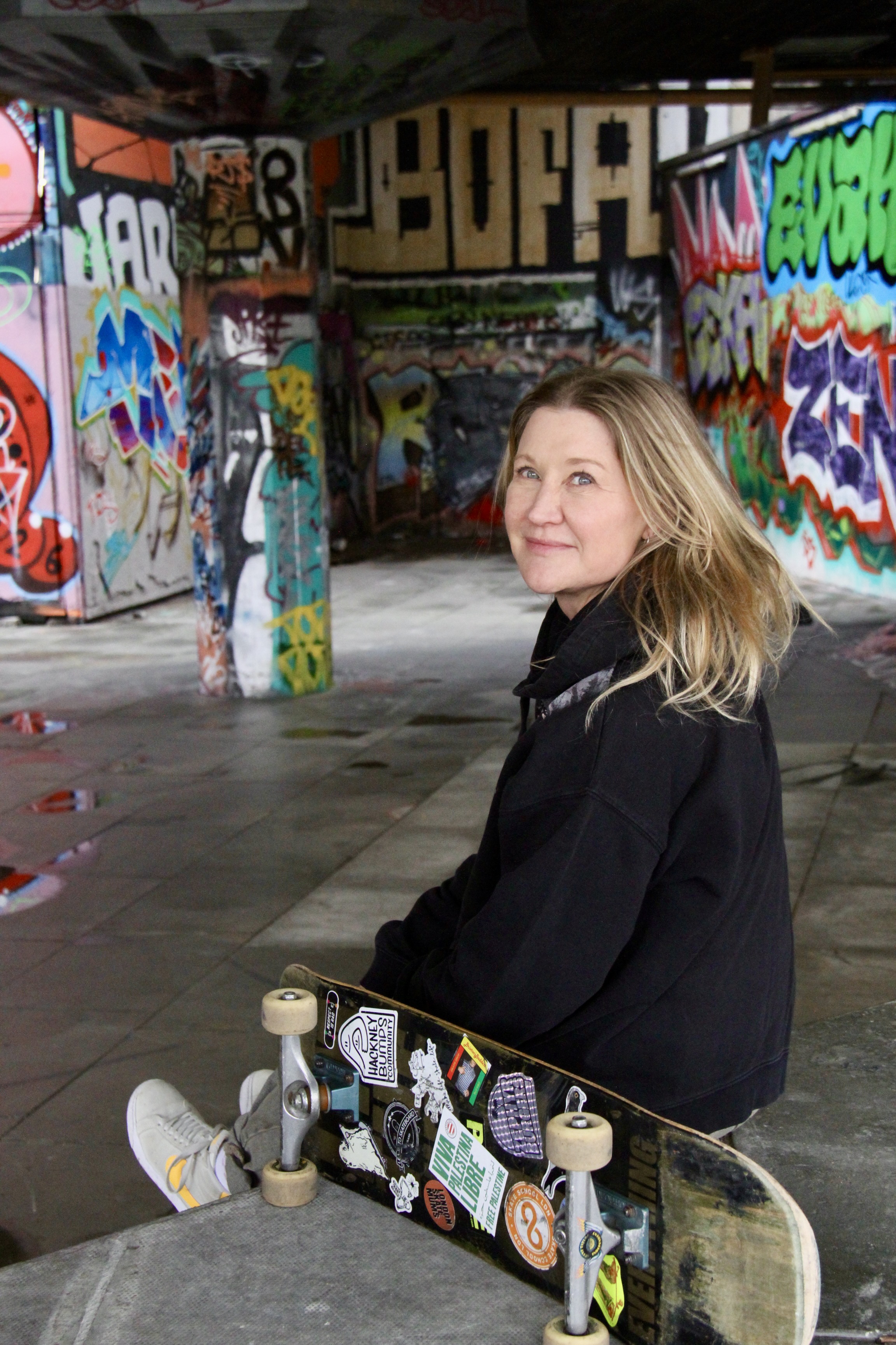 The 37-year-old mother of two was born and raised in New Zealand, but lives in London with her husband and two kids and works as an interior stylist. Skating is something she doesn’t have time for. But like the other 100 plus women in the London Skate Mums club, she makes time for it.