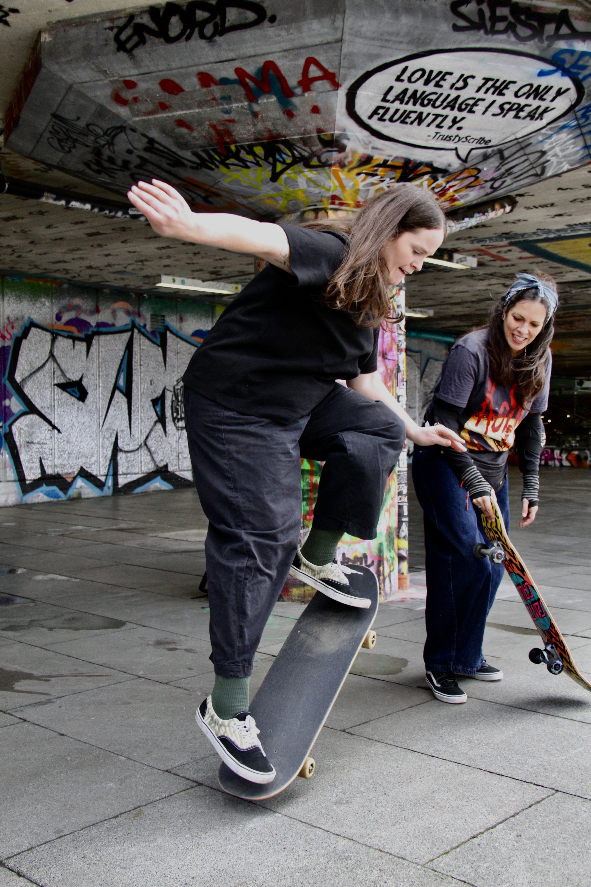 The exhibition will mark 50 years of skating under Queen Elizabeth Hall, where the skate mums are hosting today’s session. Skate 50 is set to tell the story of the space’s inception and legacy through photos, video and audio spanning the half-century that it’s been a beloved riding park. And its modern history wouldn’t be complete without spotlighting the mothers who shred there.