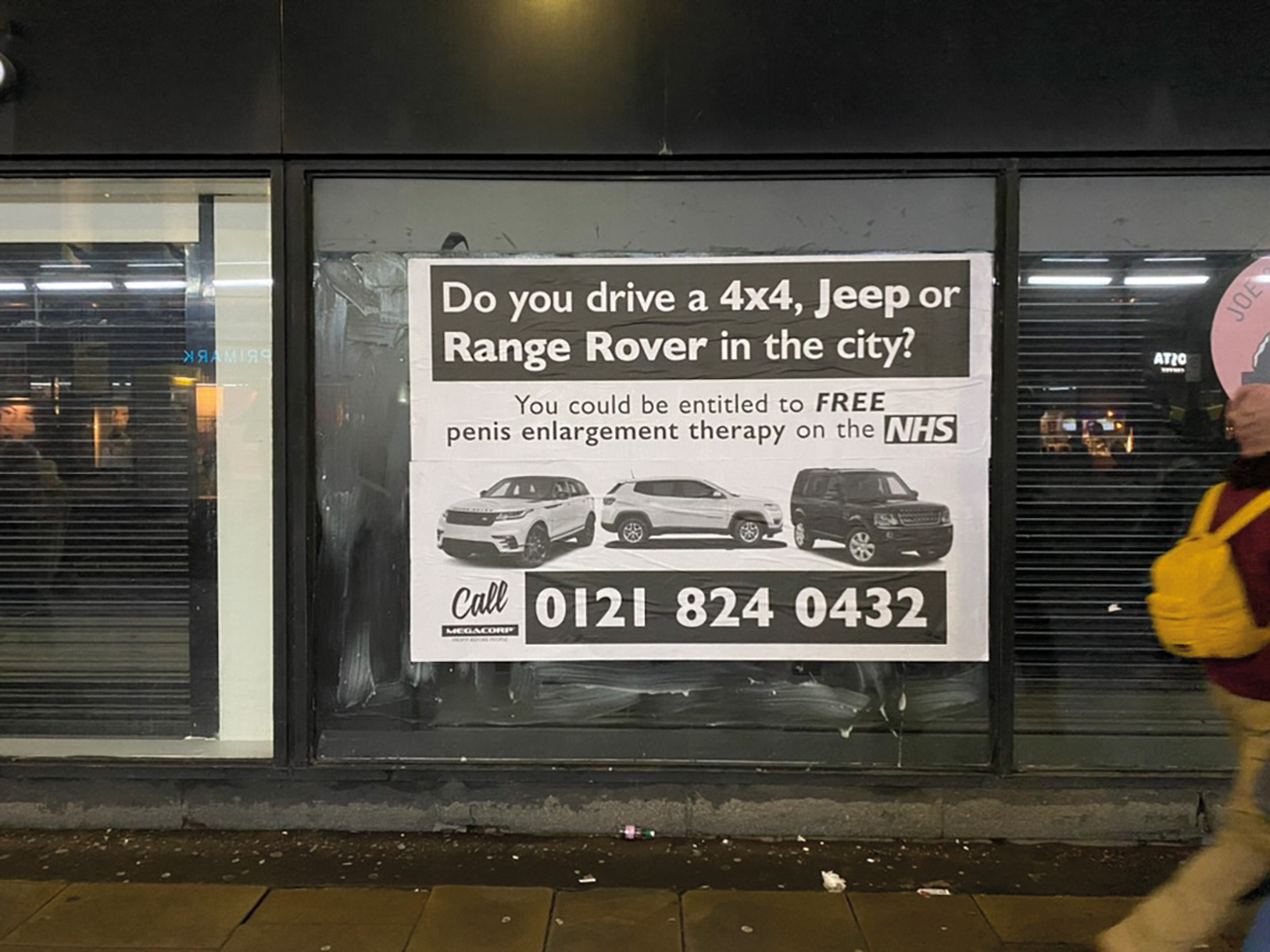 When I did the “If you drive a 4×4 you could be entitled to a free penis enlargement on the NHS” advert, I had a number that was connected to an answerphone. Some people would call up with serious enquiries about the penis enlargement, which I found very surprising. It made me realise that there is a demographic that will fall for absolutely anything that is framed right.