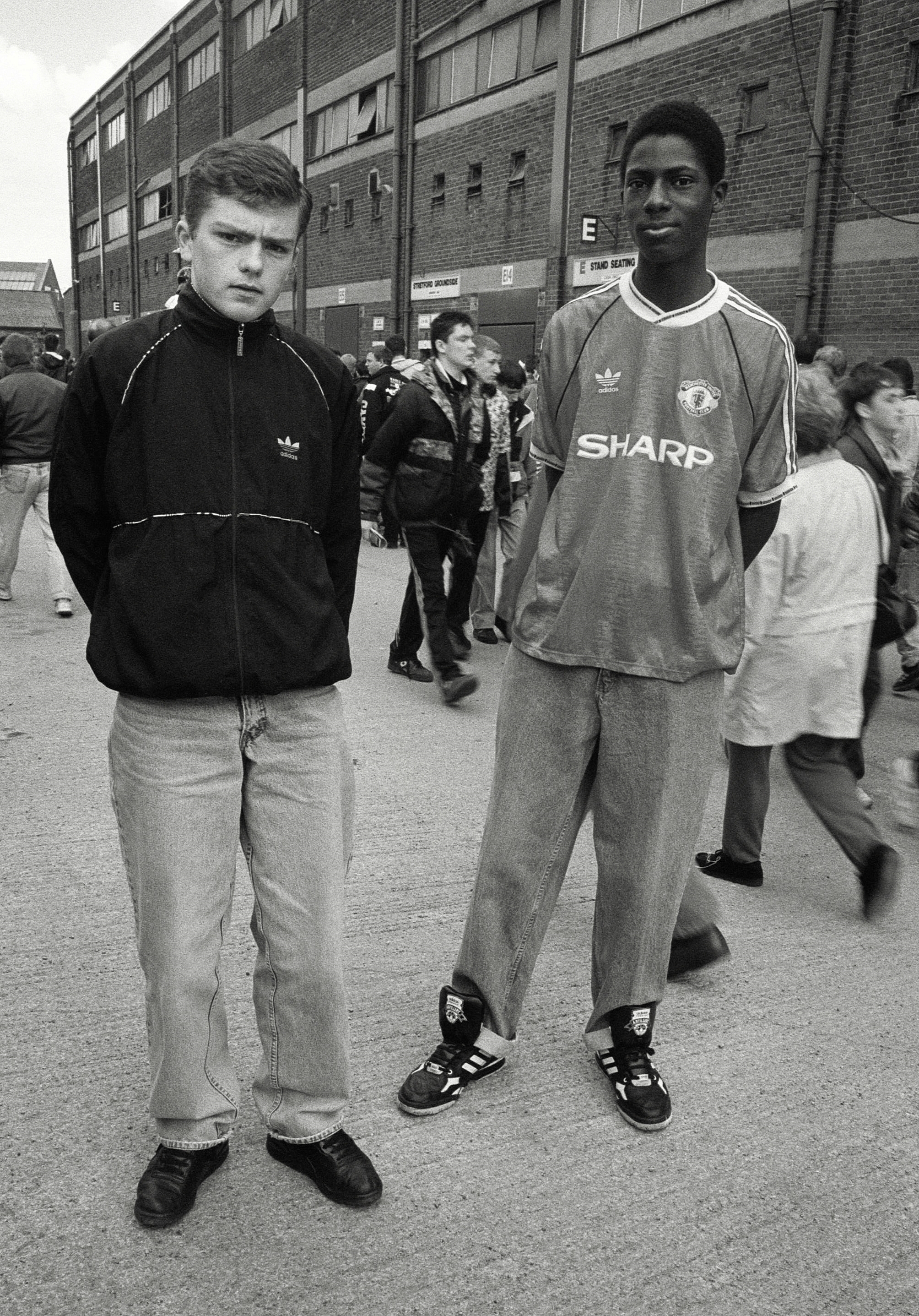 All of a sudden, these various, disparate strands of British popular culture had come to intersect in the heart of the city, and Davis wanted to explore how English football in particular was changing as a result. He travelled with his camera across northern England to matches at the grounds of Manchester United, Manchester City, Everton, Liverpool and Oldham Athletic, taking portraits of fans heading to see their teams play in an attempt to understand if there was a “new football fan” emerging. Now over three decades later, he revisits a selection of them in Going to the Match, a new zine published by Lower Block featuring young football fans he photographed in and around the stadiums.