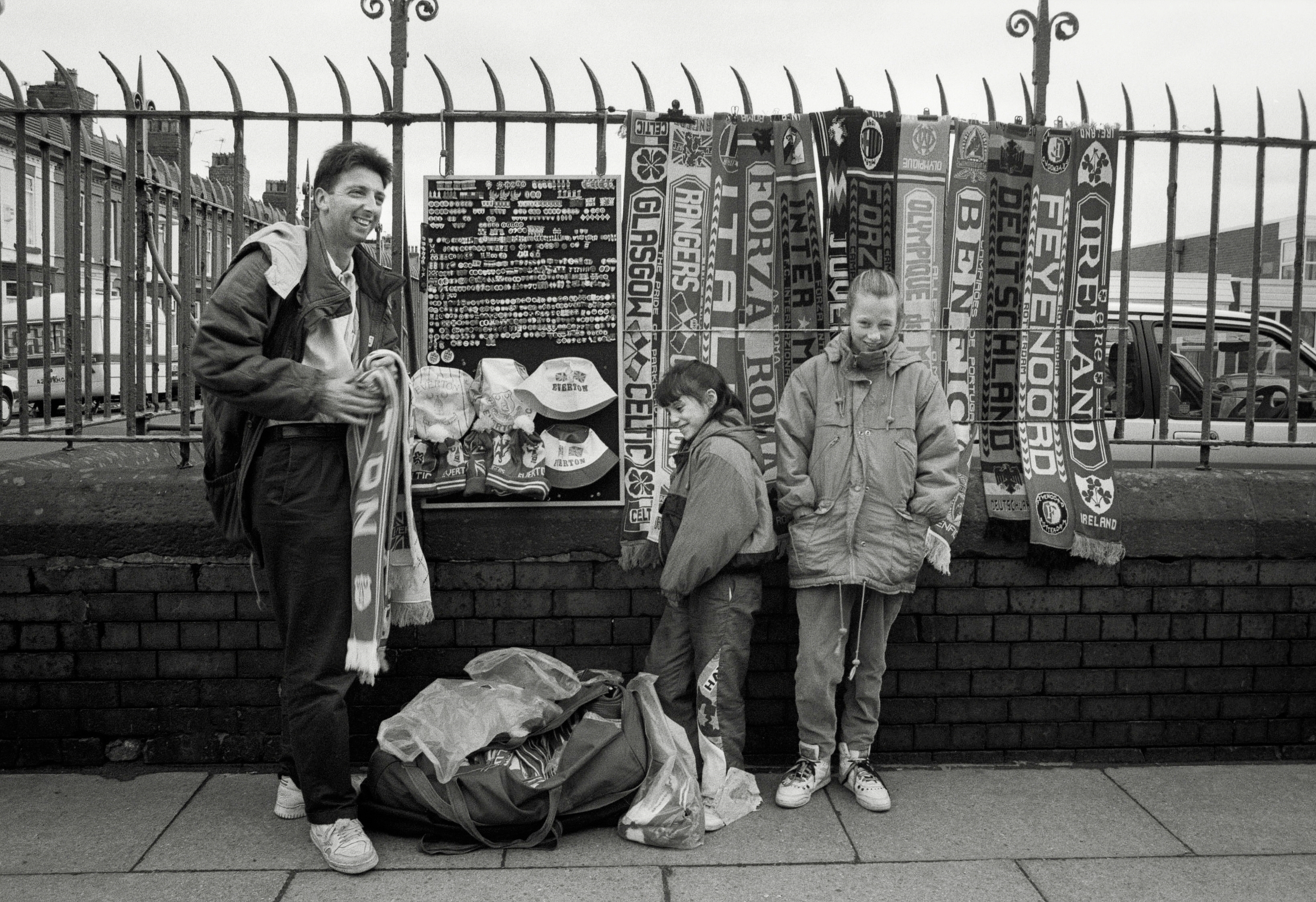 The black-and-white pictures, often featuring young fans queuing up for turnstiles while donning their favourite teams’ kits, show off a warmer, more friendly side to English football’s fandom compared to what had dominated images over the previous decade. Warm smiles run throughout the pictures, as well as a calmness, which is particularly striking when stood around police presences – a contrast to images of conflict and violence that were often found among the pages of the printed press and beamed across screens by broadcasters.