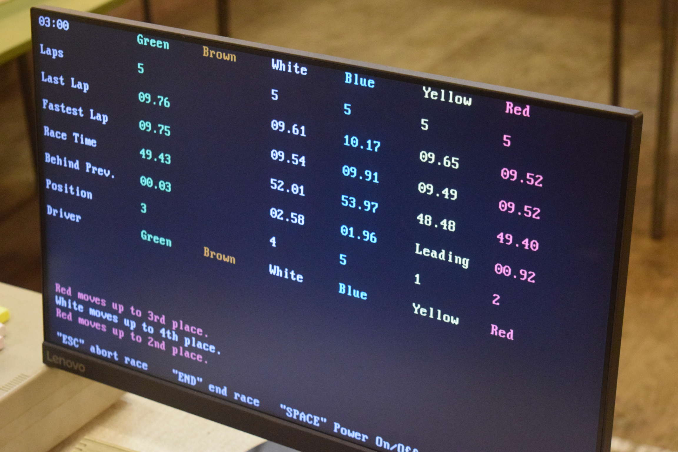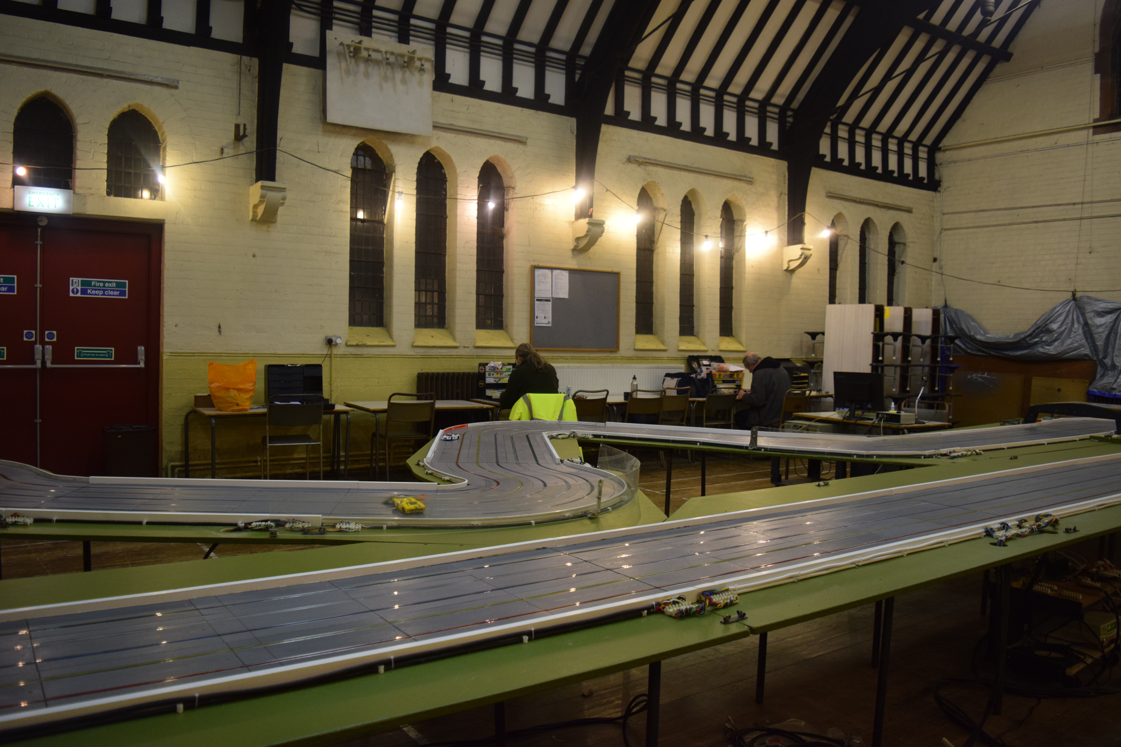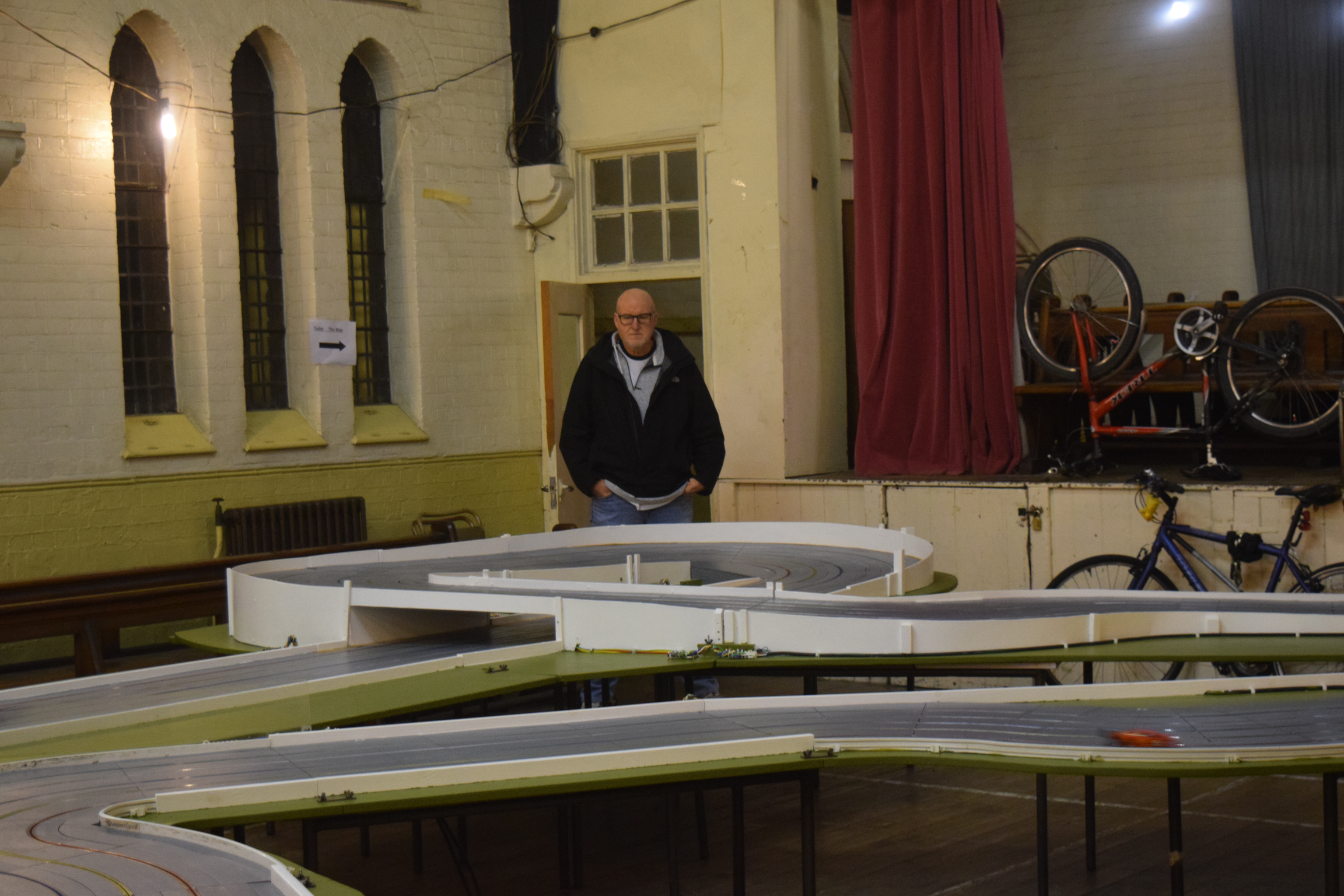 Fresh-faced, but with a seasoned sense of calm, Michael sits at an old desk in the middle of a north London church hall on a cold January evening. He’s typing away at a desktop monitor, running a 1980’s leaderboard simulator with a refreshing, primary-colour-only simplicity, dwarfed by a five-lane racing track – the only one of its kind in the world.