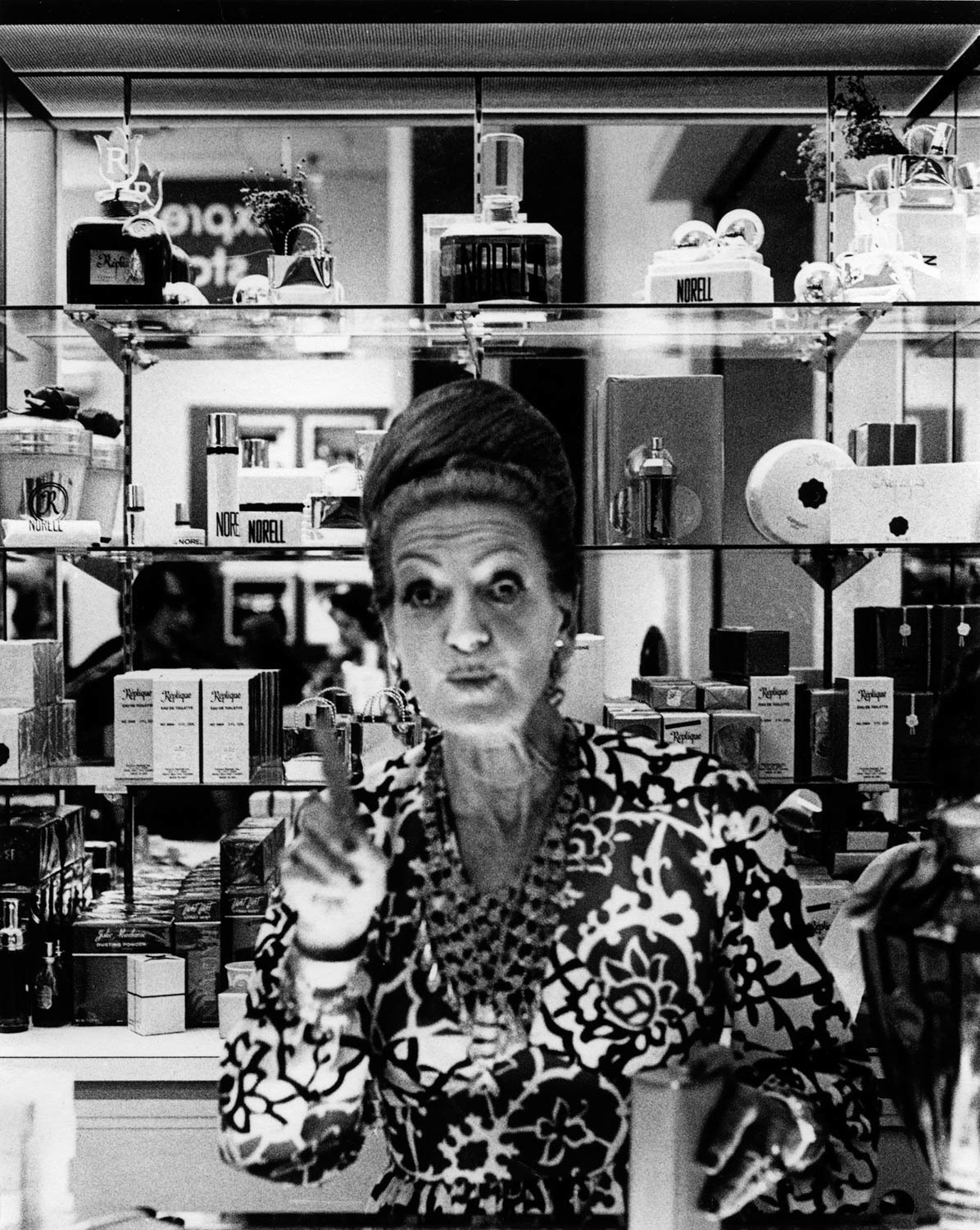 Pointing to the 1973 photograph she made of a woman working at a perfume counter in Bloomingdales, Meisler recognizes this as one of the very first works to articulate her aesthetic sensibilities.
