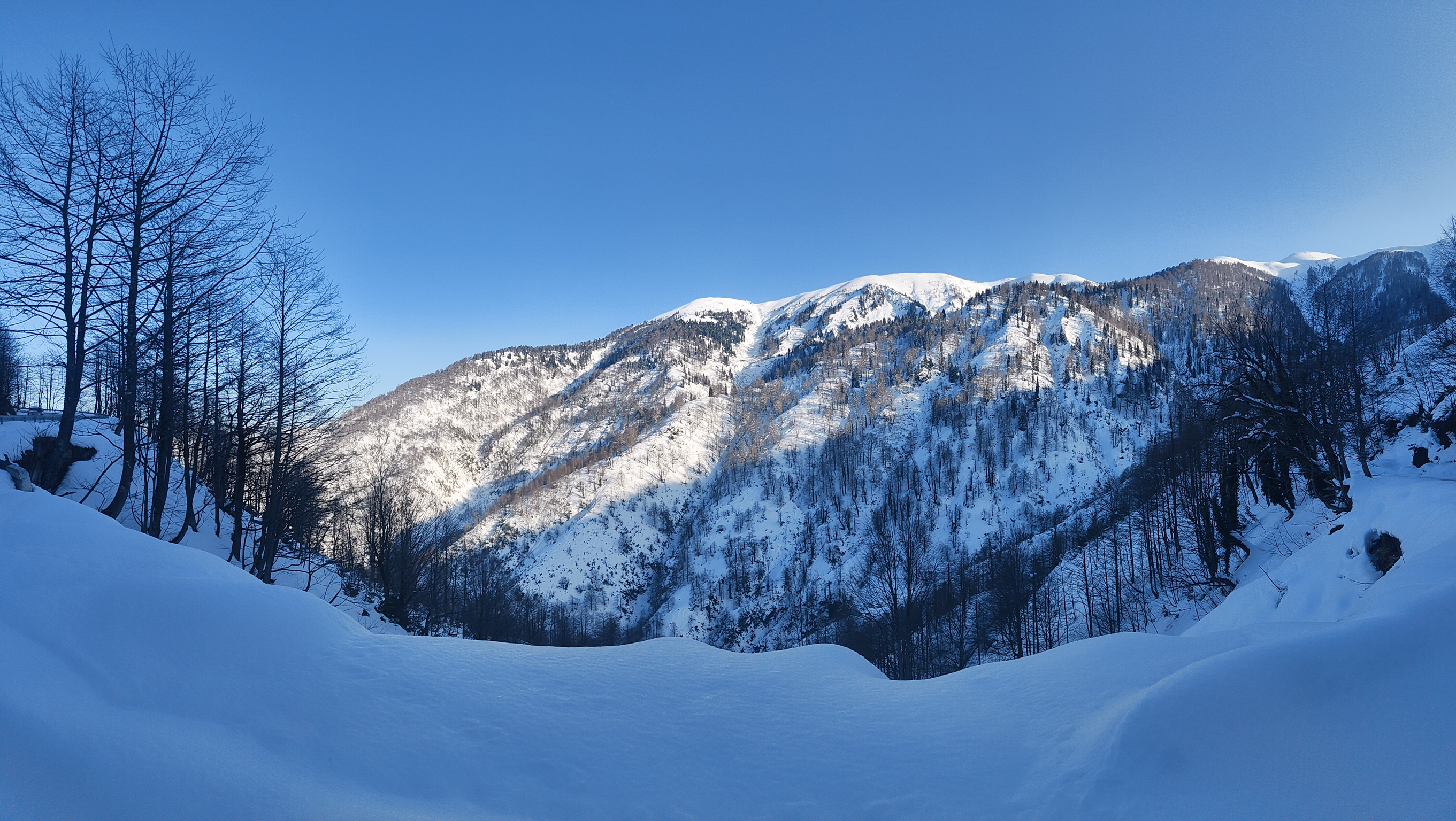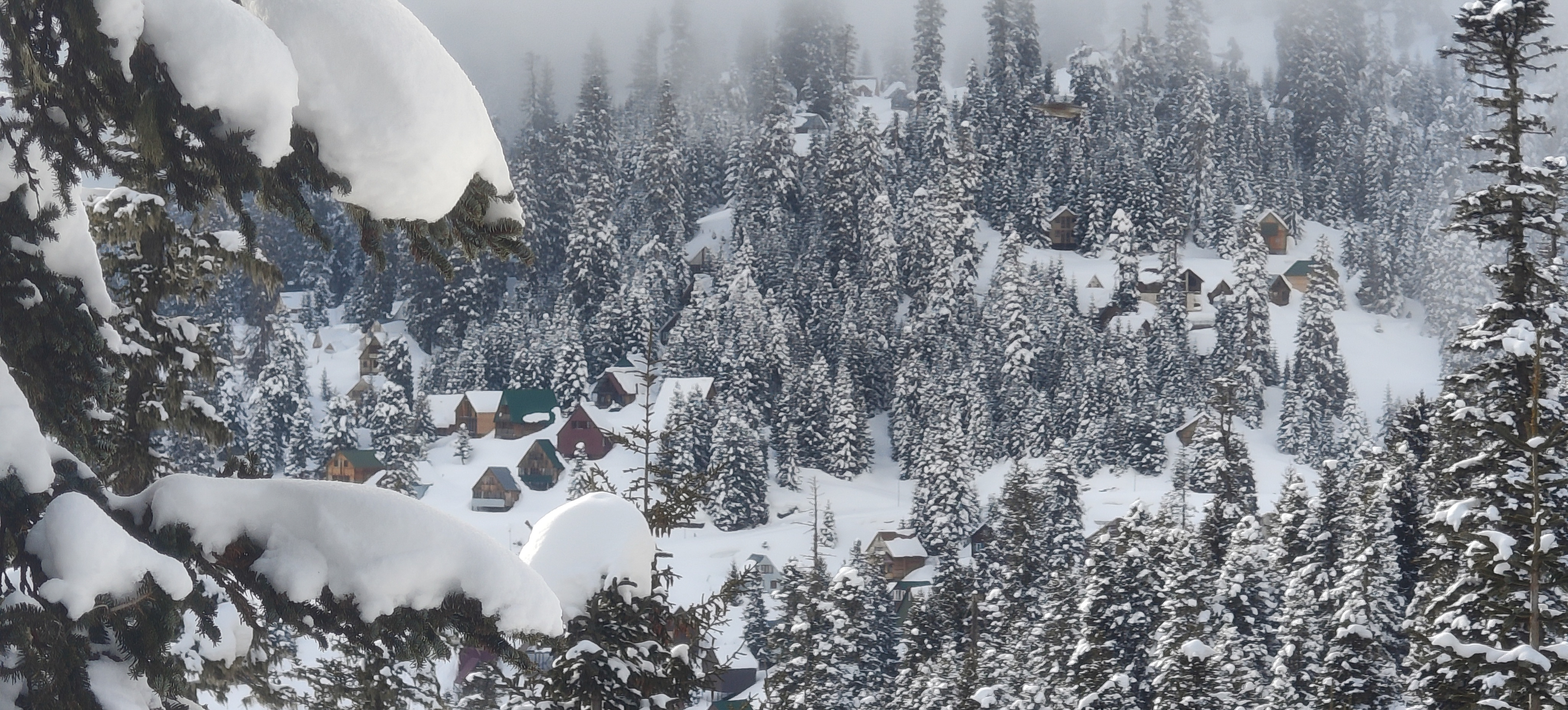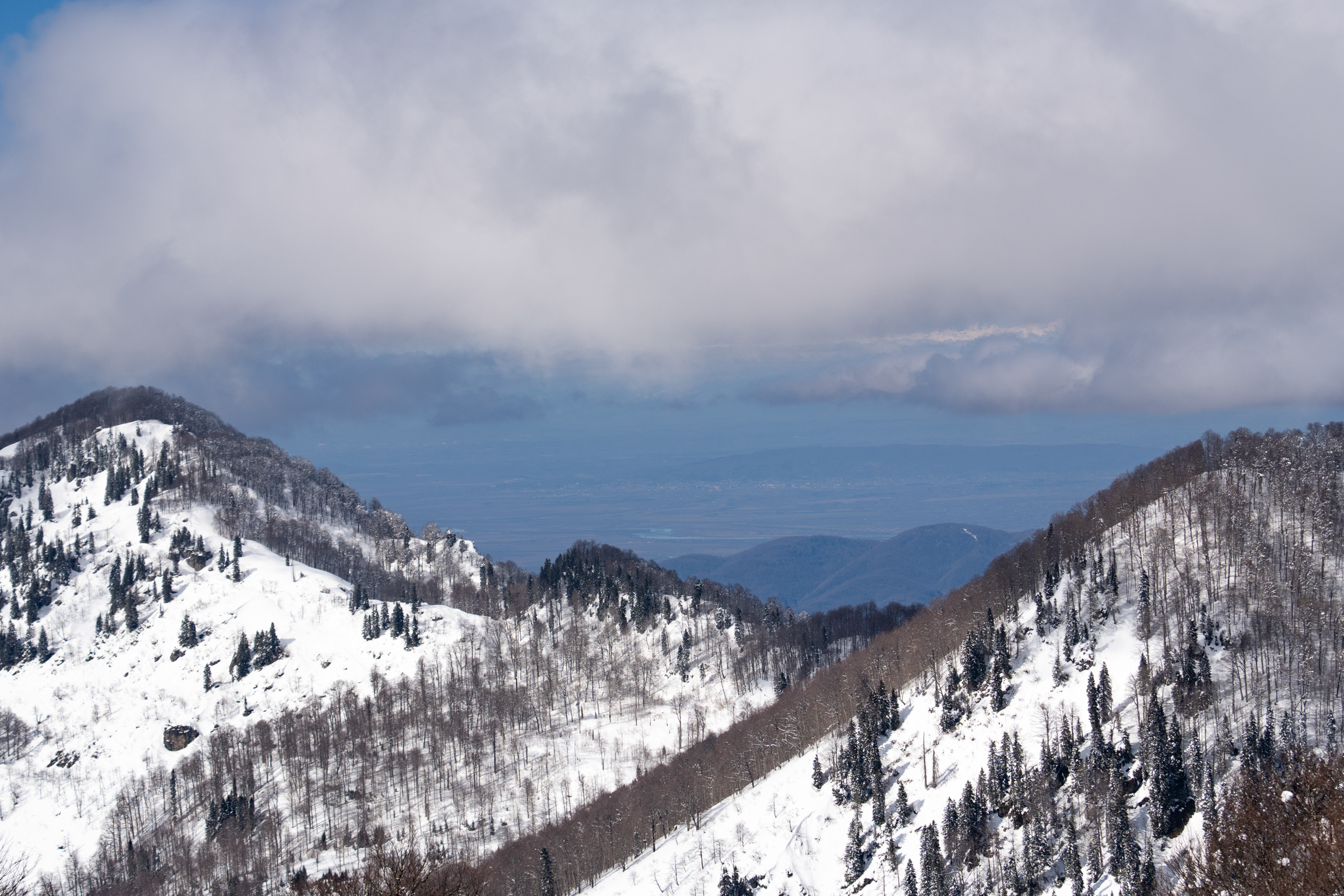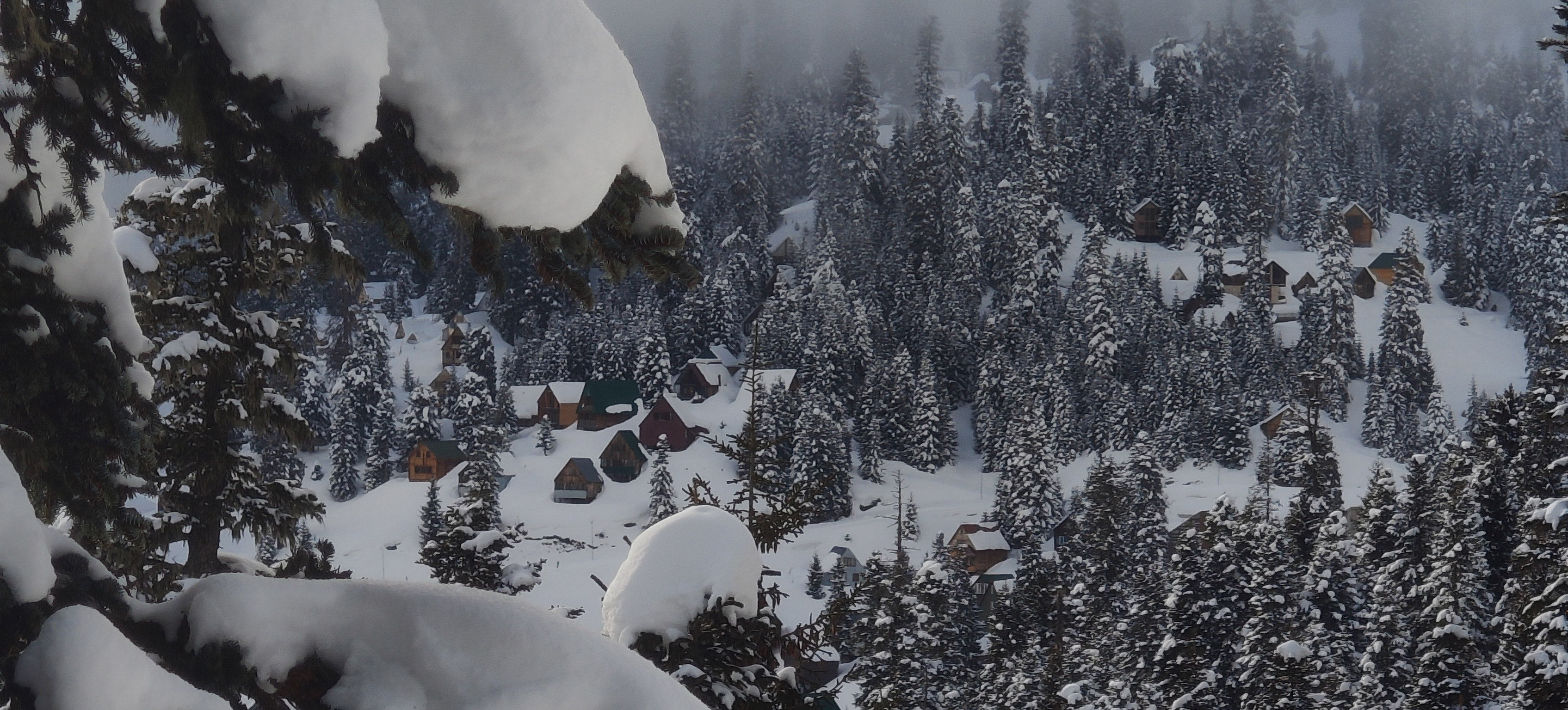 The tranquility of Bakhmaro under a matte of velveteen March powder is broken only by the powerful thrum of a snowcat vehicle.