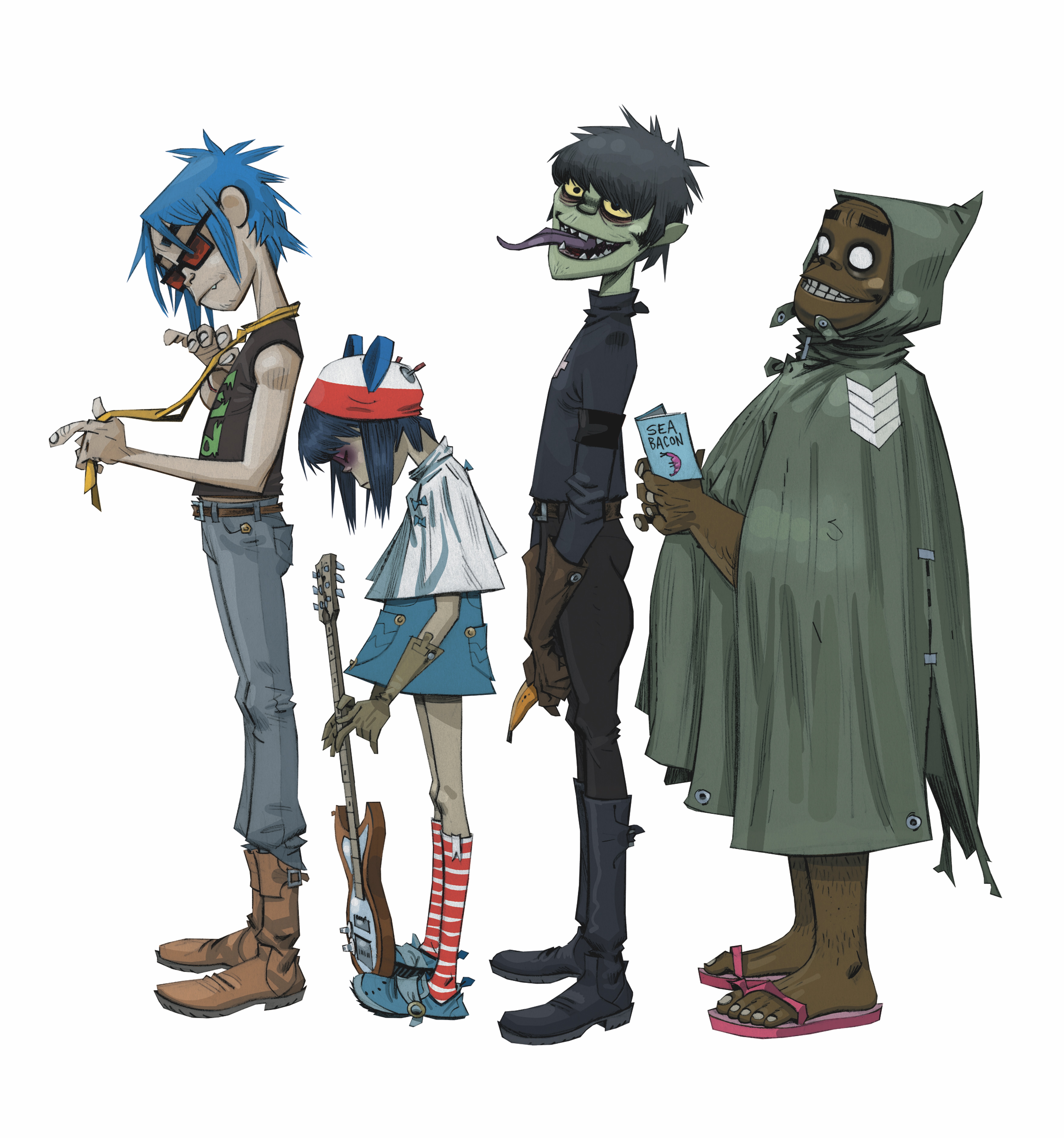 I recount someone telling me that ‘the tide comes in until you hit 46, then the tide starts going out and there’s nothing you can do about it’. He laughs at this analogy of getting old and continues doing so when I mention that there are Reddit forums discussing which of the Gorillaz characters are most likely to be killed off. “Well, they can’t die because they’re cartoon characters,” Hewlett exclaims. “I think Murdoch’s had his head chopped off a few times, and I think Murdoch killed 2D but they don’t die. But in this album, they could experience the afterlife on our behalf, and come back and tell us what it’s like. Actually, we had an idea for the next album, and we’re both getting quite excited about that, so there will be more Gorillaz, but how it appears next is to be decided.” One of the beautiful things about creating a virtual band for Hewlett is that he can do exactly what he wants with the characters, with whole new looks and colour palettes for each record.