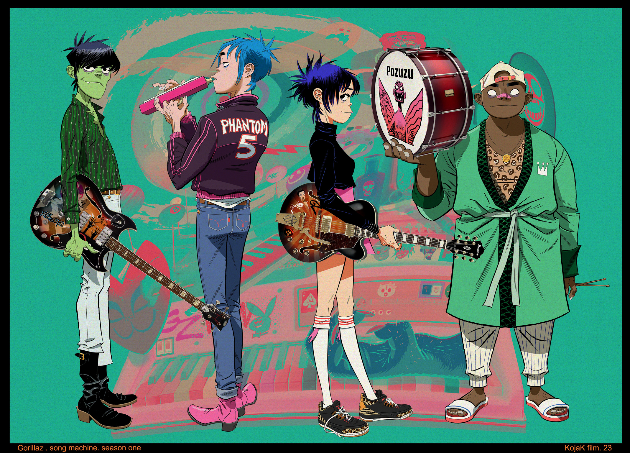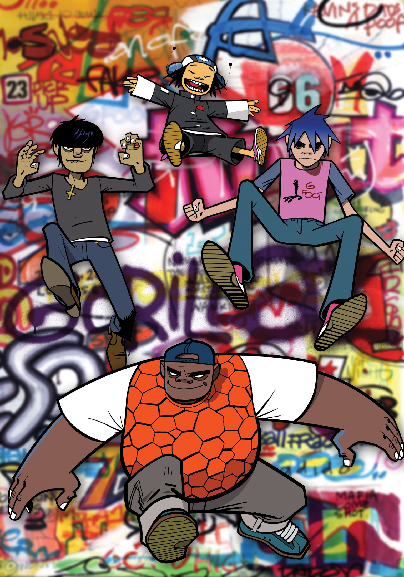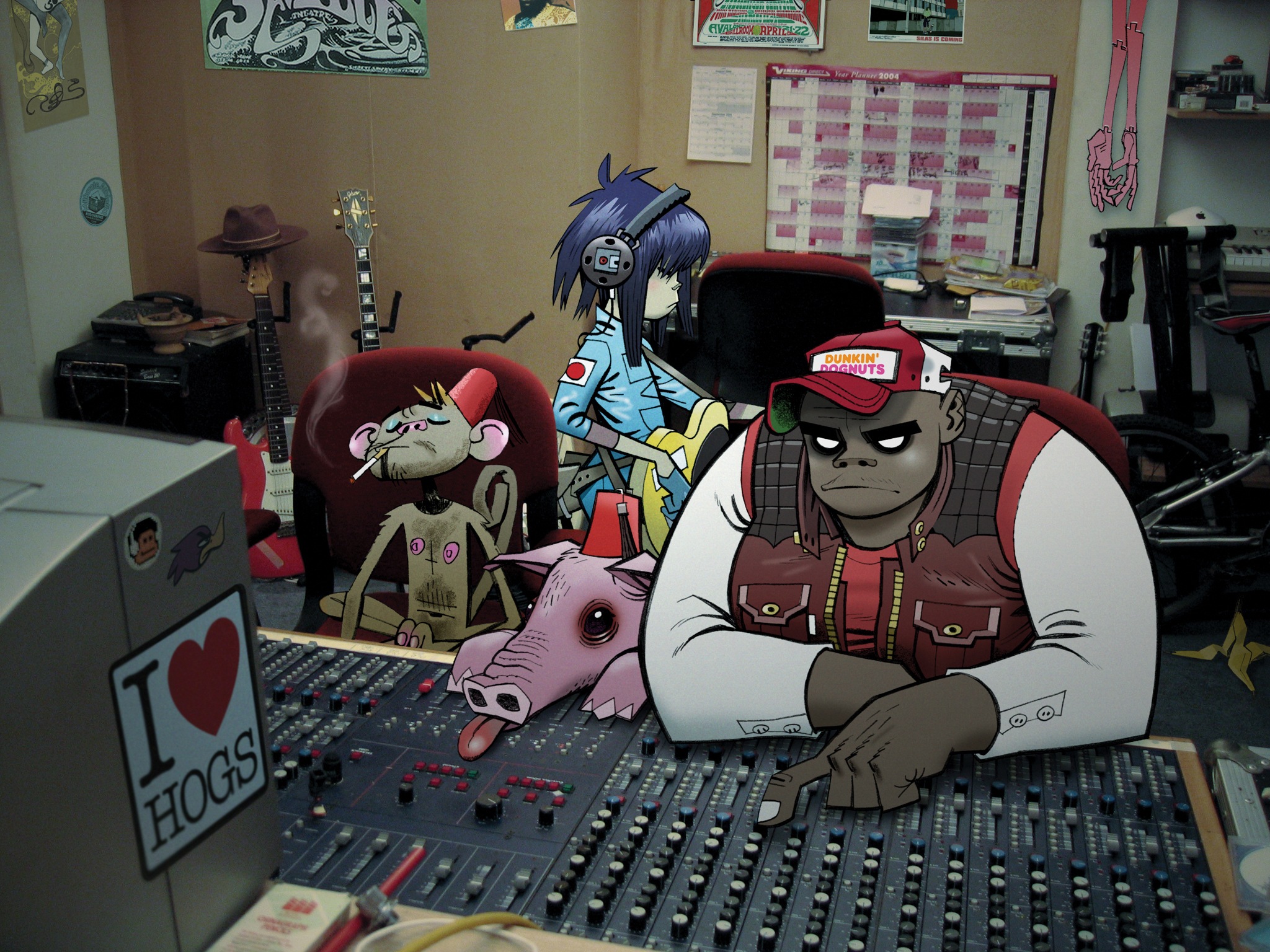 It can be easy to forget that the Hewlett body of work is long and deep – Gorillaz is just one outlet for his work and his career has genuinely defined aspects of pop culture. His zine Atom Tan spawned the global dominatrix Tank Girl – an anarchic cult comic that was famously turned into a blockbuster film, and continues to find relevance and inspire youth culture today. He also, somewhat less famously, drew the animated characters for the title sequence of huge hit UK TV programme SMTV Live – a Saturday morning must see three hours of chaos, which ran from 1998 to 2003, and hosted by now UK TV institutions Ant and Dec. “I forgot I did that,” he laughs when I ask him if he mentions it to any of the Gorillaz collaborators who’d have been teenagers in that era. “That was a very long time ago. I remember me and Damon taking Ant and Dec out one night. We had an idea to do a modern day version of [famous ’70s drunken alter egos of comedians Peter Cook and Dudley Moore] Derek and Clive, but with those two. We had this idea to get them in the studio, get them pretty drunk and just let them go. We took them out for a drink, and they were like: ‘Yeah, it’s a great idea, but we can’t, because we’re leaving tomorrow for Australia. We’ve got this new TV show called I’m A Celebrity, Get Me Out Of Here.’ Then, of course, we never saw them again.’”