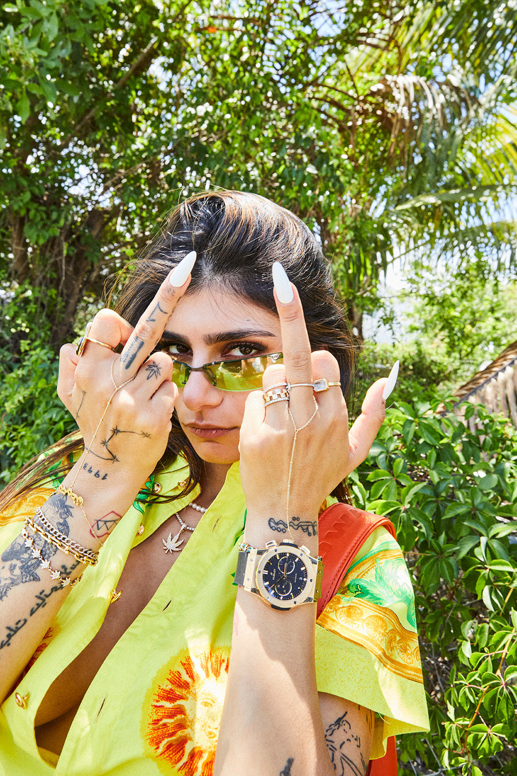 It’s a tension and a hypocrisy that American-Egyptian comedian Ramy Youssef helped highlight in season two of his Emmy-award-winning show Ramy, in which he cast Mia to play herself. “Statistically, Muslim countries consume more porn than anyone else,” she tells Youssef in the show. “The men who are yelling at me are the same men who are clicking on me.” It was a dream come true to appear on the show, she says, not least because of how much she admires Youssef for his sense of humour, his representation of the culture, and his determination to stay true to himself.