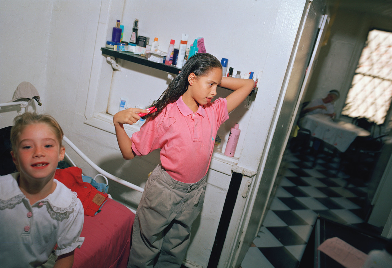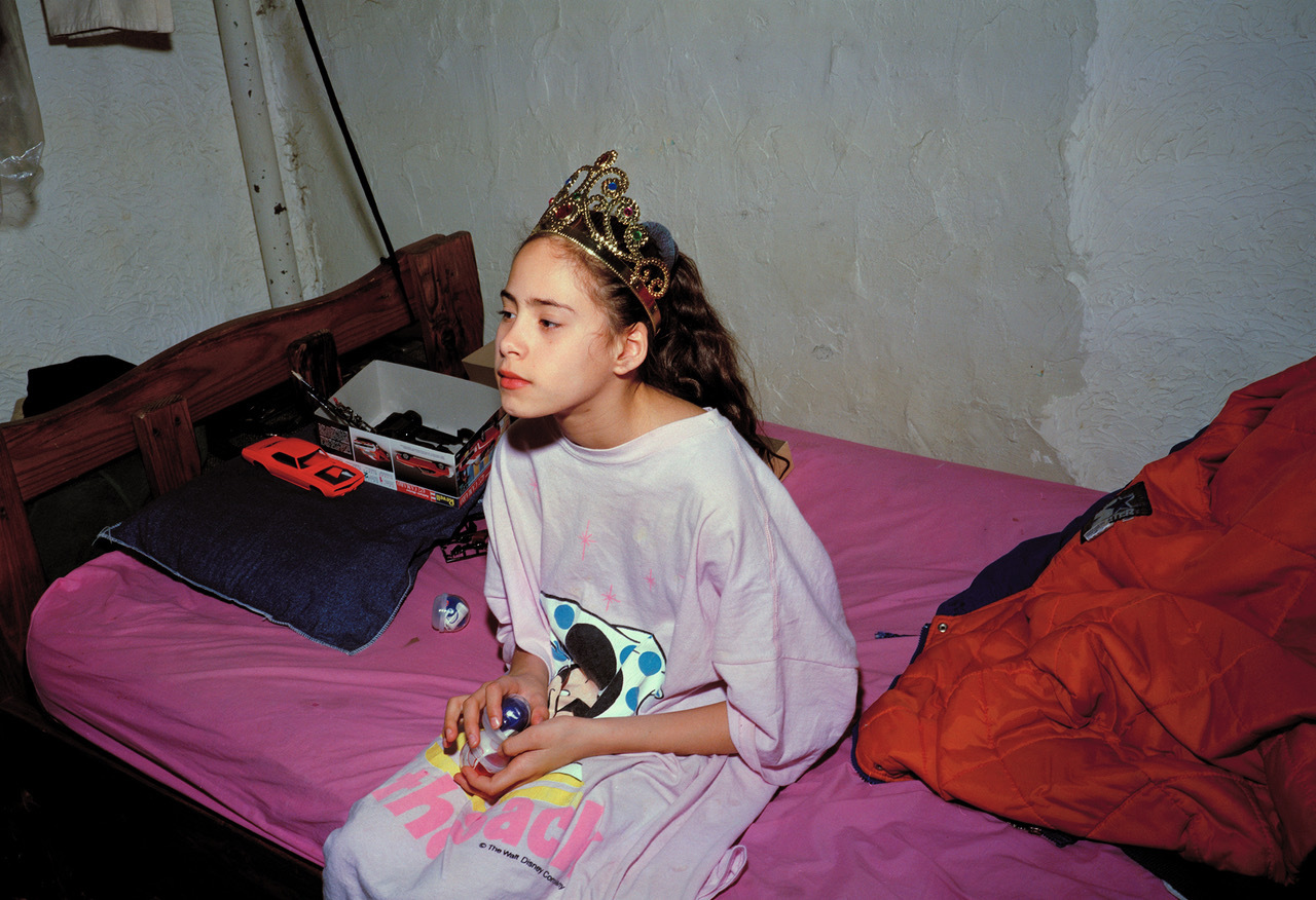 Cappetta would spend time photographing families she met out and about in the early hours. She found herself particularly drawn to a neighbouring Puerto Rican family and their youngest daughter Glendalis, whose life reminded the photographer of hers. “I grew up multi-generationally, very typical of a Mediterranean family system – no boundaries, no privacy, everyone’s on top of each other – it’s kind of insane but also very joyous,” she recalls. “I’m the youngest daughter and she’s the youngest daughter in terms of their family system, and every photographer is looking to beautify their own experiences of who they are.”