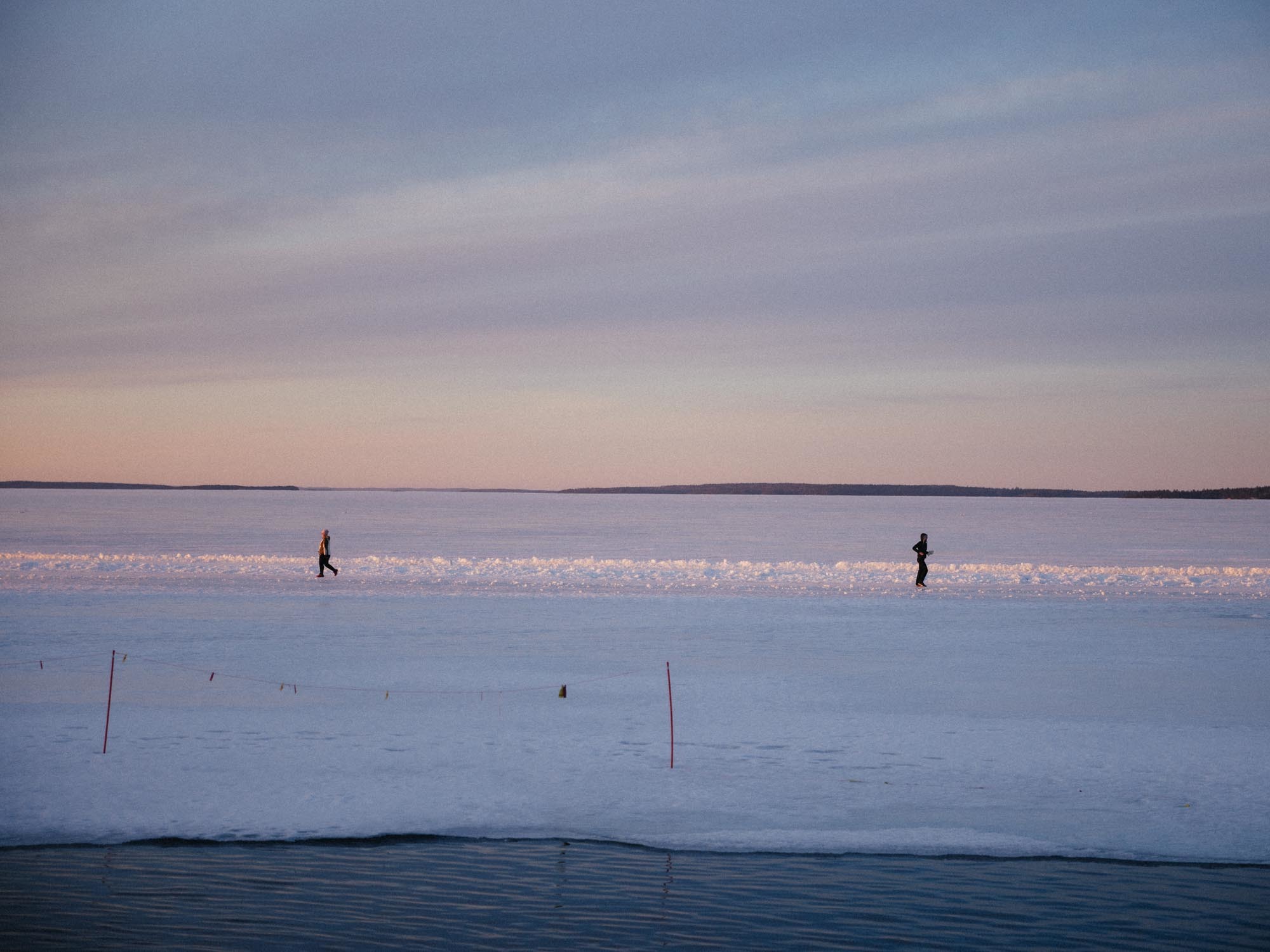 I pause for a second, looking out over the vast expanse of ice before me, surrounded by dark pines trees, barely visible on the distant horizon. My heart can feel the cold blood already returning from my extremities and the chest tenses. At the last step, I push out into the near-frozen expanse of water, with all but my head immersed and somehow manage to make strokes towards the exposed edge of the ice on the other side of the pool. I’m barely aware of my breathing, it feels like my lungs have frozen shut. Time slows down.
