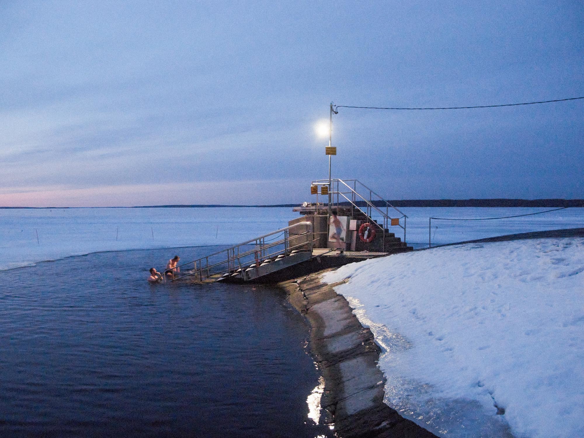 Tampere is nestled between two enormous lakes and has a river running through its centre, which provides for a diverse range of Avanto spots across the city. Some of the larger Avanto spots also have public saunas perched on the lake’s edge, others just have small changing facilities, while some, like the spot near Tahmelan Huvila cultural centre in Pirkkala, are just small holes drilled into the ice.