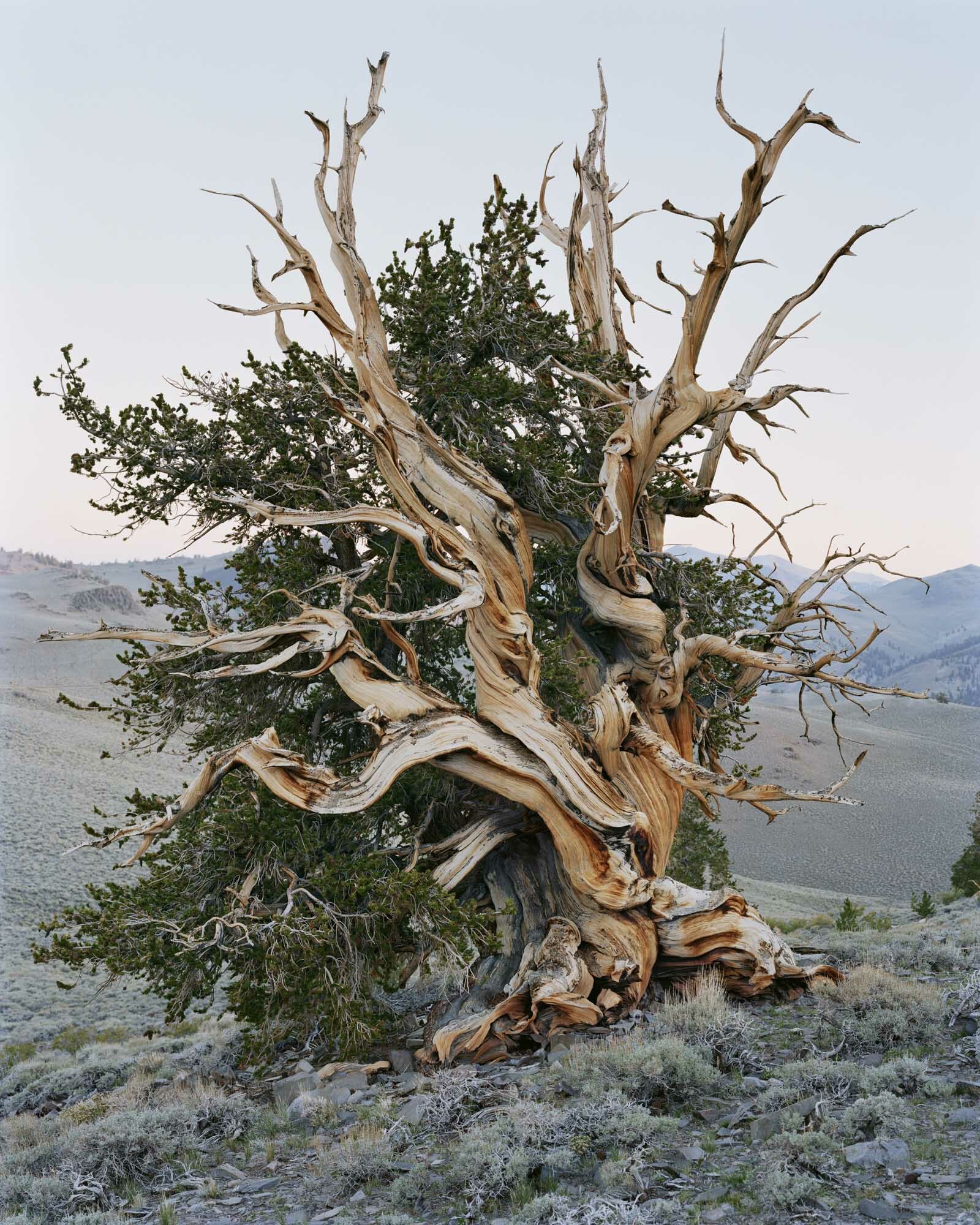 “I made three trips to make photographs in the ancient bristlecone pine forest in White Mountains of California,” he continues pointing to the scenes of wizened trees sprouting from mountainous terrain. “It’s impossible to describe the utter enchantment and other worldliness of this landscape, with trees that have lived for thousands of years, in what seems like inhospitable set of circumstances.”