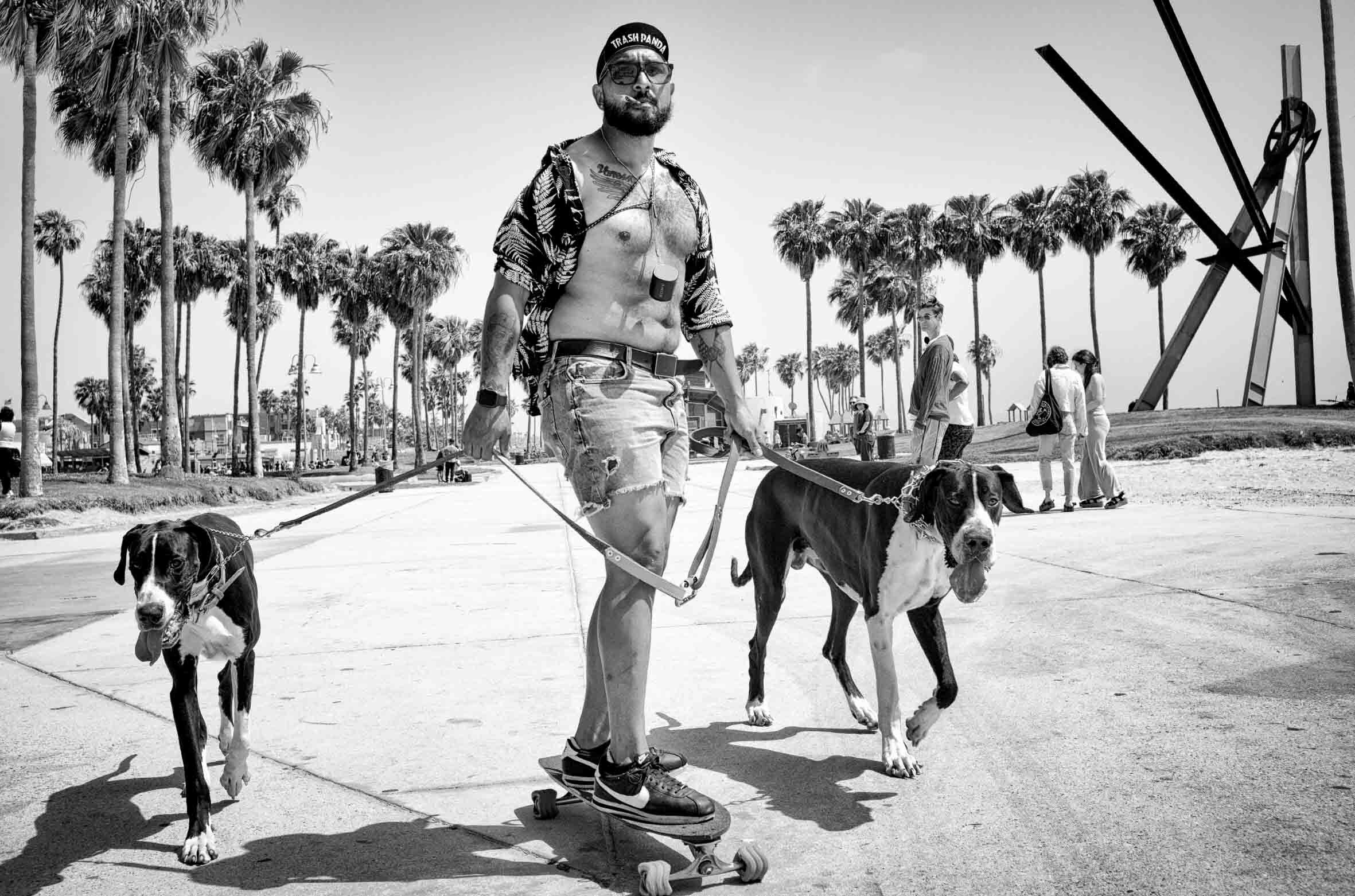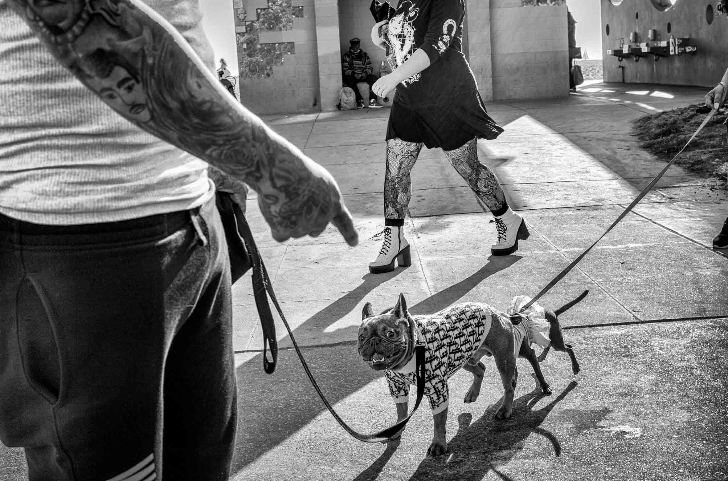 Either way, in the present day, Dogtown is a fitting name for an area that is teeming with pets. From pint-sized chihuahuas to built bulldogs, dogs are everywhere on the beachfront, and Saguy’s pictures capture their diversity. “There’s a lot of bulldogs, some great danes, poodles,” he says. “The thing that’s really in fashion is pugs and bulldogs and there’s actually meets where they bring their bulldogs and they’re all decked out in Louis Vuitton, gold chains – it’s really funny.”
