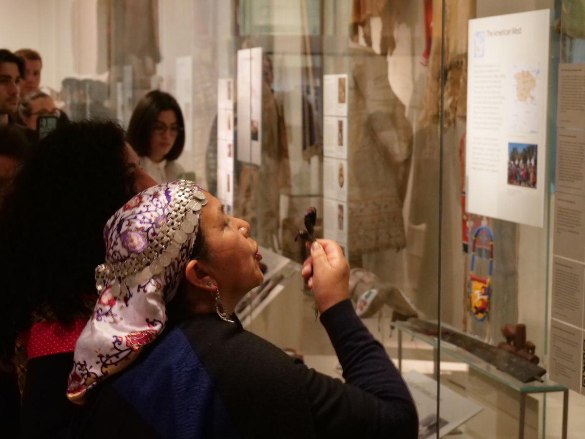 The ceremony took place in the Americas section of the British Museum, surrounded by cabinets of stolen objects and symbols of colonial power. The rooms of the British Museum were marked with water from the highest mountains in the Andes. Taking place in the week before COP26, the UN conference on climate held in Glasgow this year, the ceremony saw activists and museum-goers led through the many rooms of the British Museum.