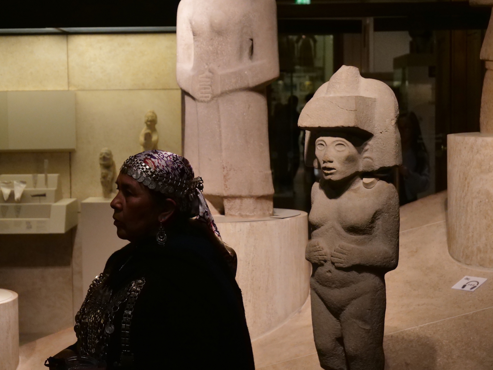 Panchita Calfin, an Indigenous elder from Mapuche nation in Chile, guided people from room to room, pausing in front of stolen artefacts and exhibits to daub them with water before holding a moment of silence and stillness with each. The cumulative effect was to draw attention to just how much of the wealth, both cultural and financial, held within the walls of the museum and the wider city is owed to or stolen from Indigenous communities across the world.
