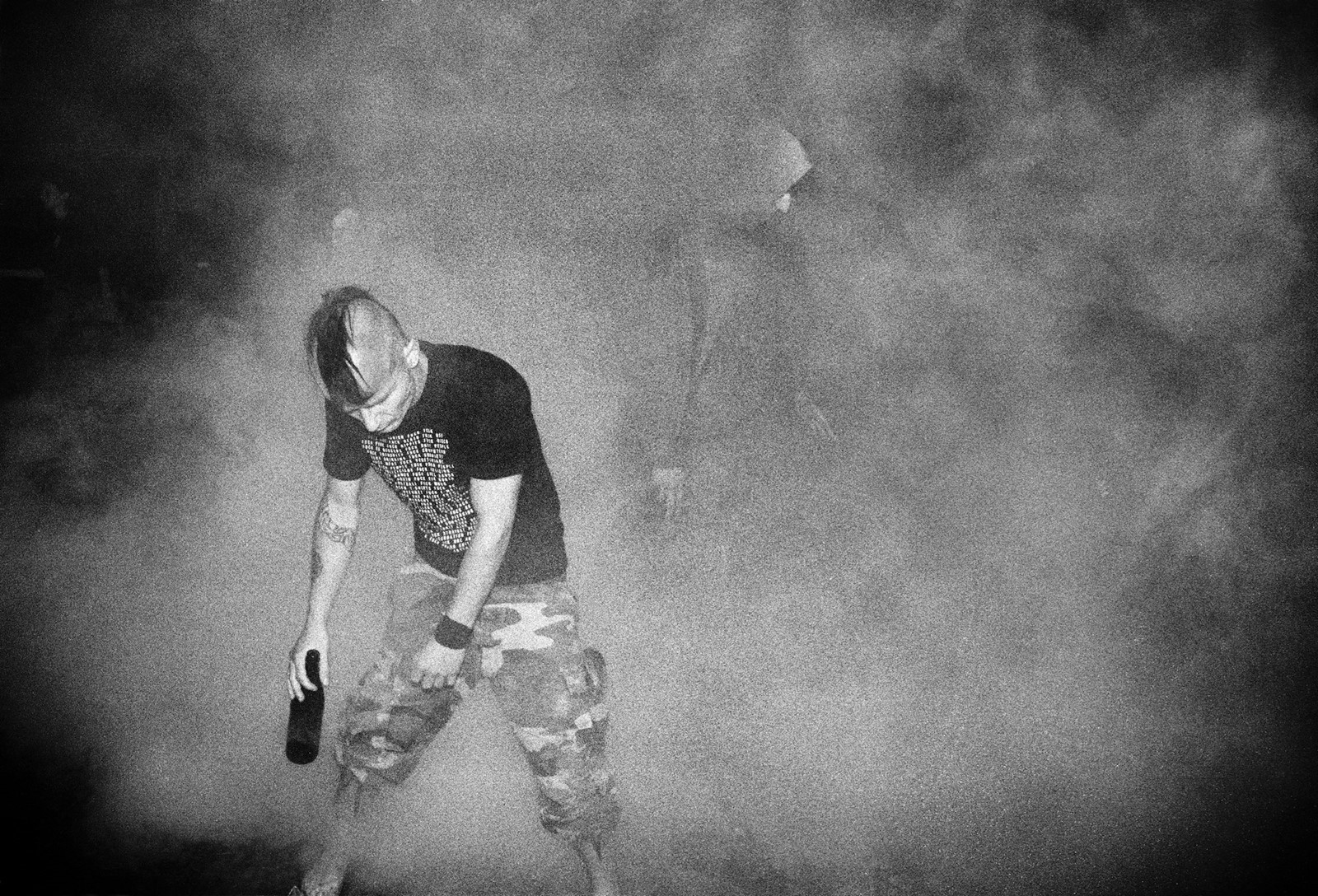 Zoppellaro’s introduction to the free party scene and his entrance into photography came hand in hand. Having brought his camera along with him to the party, he began shooting in the early hours of the morning. “I was already a photographer, but I was more like a person taking pictures before then,” he says. “After that, I felt more like a proper photographer.” He quickly abandoned cinema and threw himself into the medium.