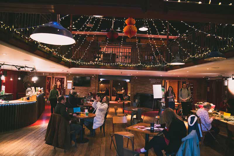Inside the Stratford theatre being used as a warm bank