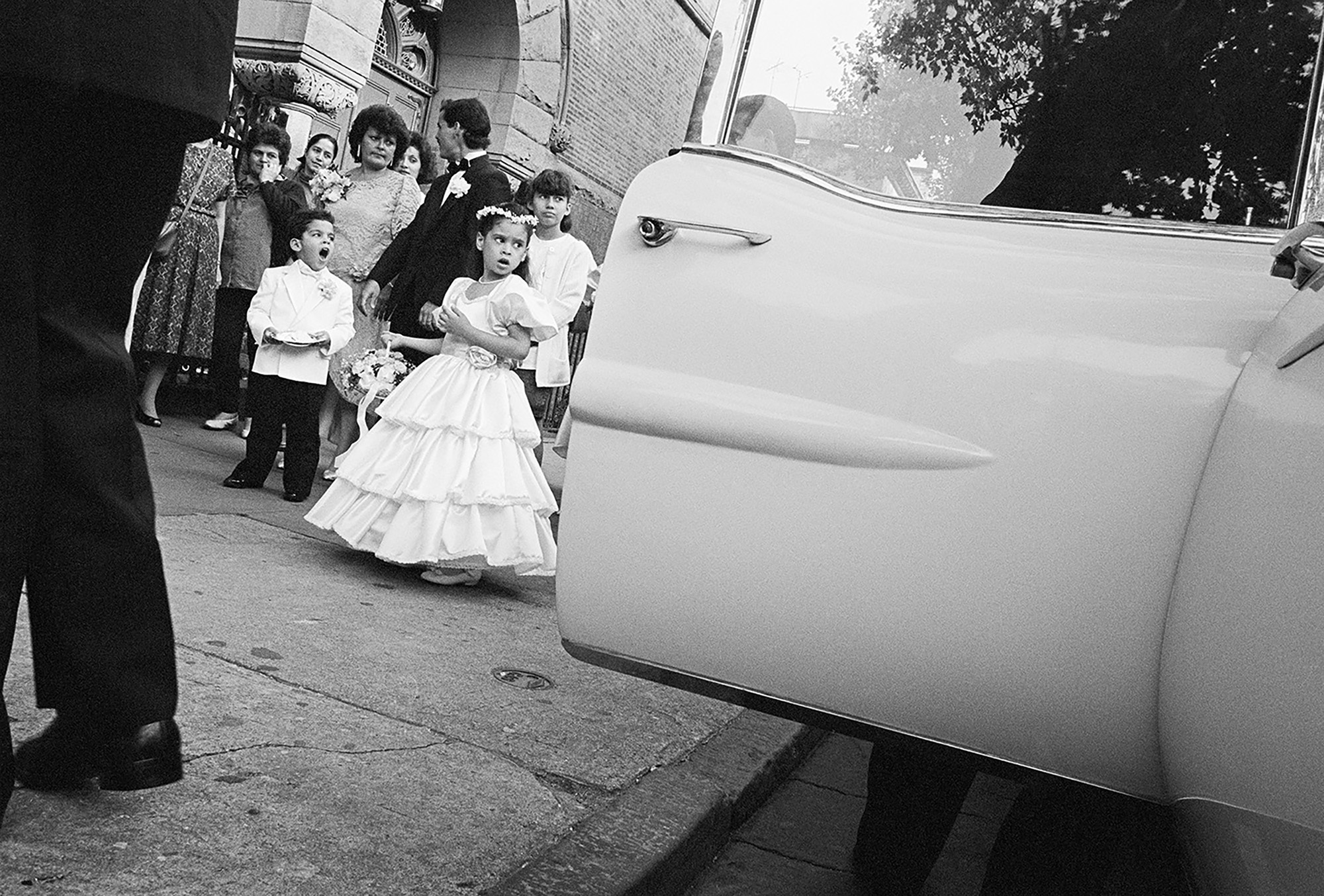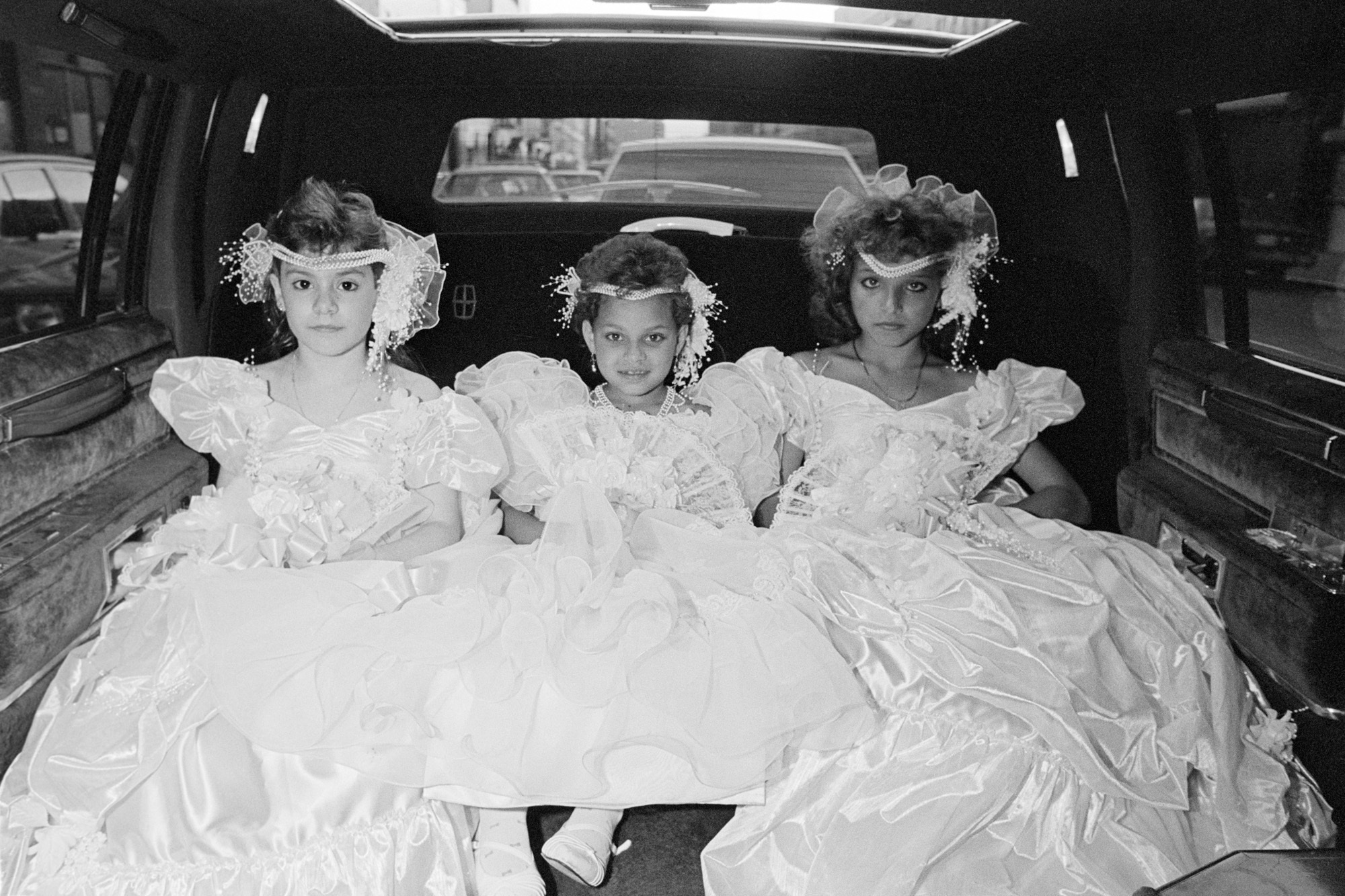 “Limousines gave working class people the opportunity to be rich for the day,” Shorr says. “Almost every time I stopped the car to let passengers out, neighbourhood children and adults would come over and start talking to me as they peered through the windows.” Some spectators got lucky, like the young couple and little boy who spotted Shorr parked on Ocean Parkway and asked if they could go inside the limo for a minute. It was a moment that demanded a portrait, even though they had not hired the car.
