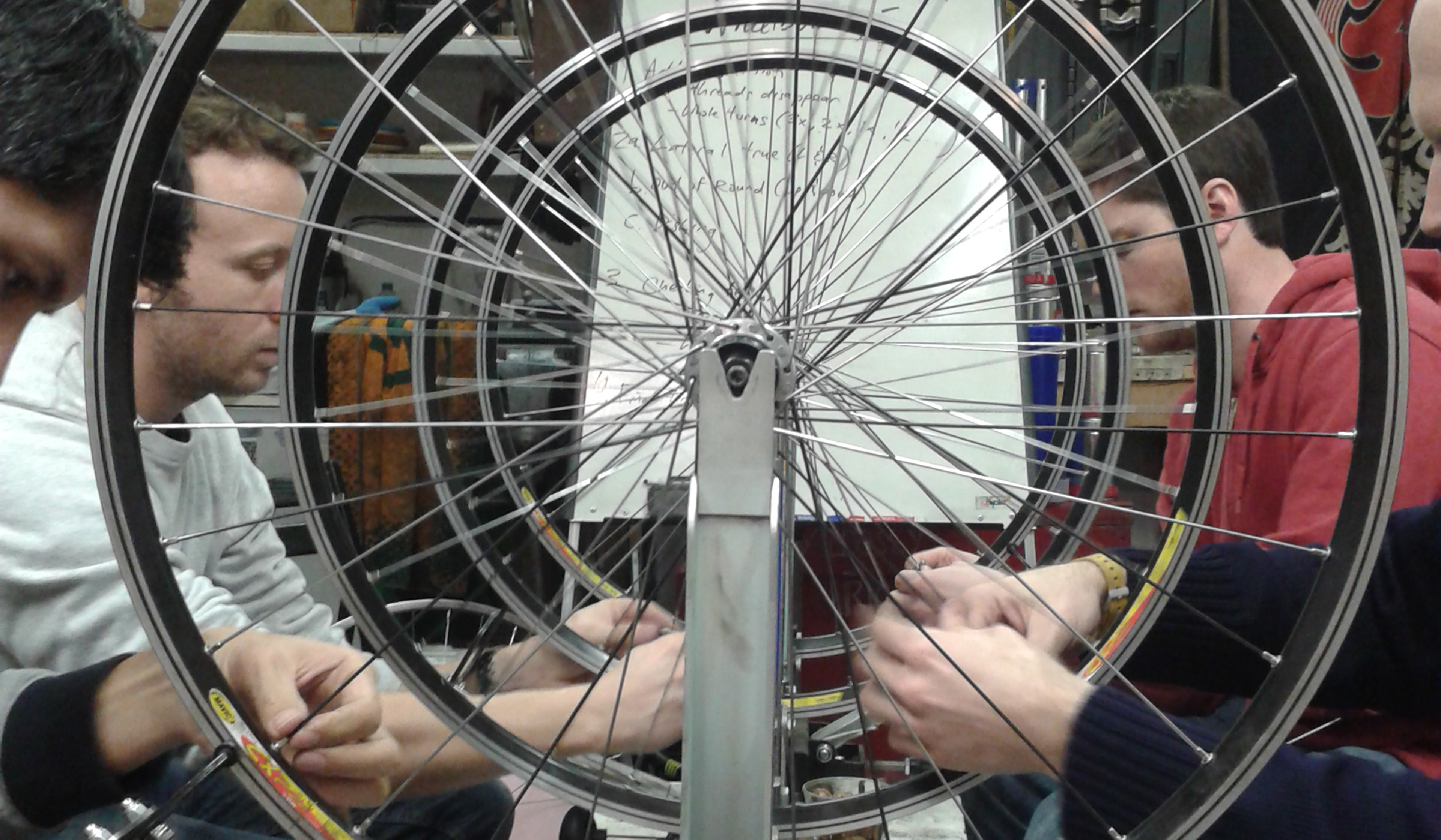 We have a group of about ten mechanics. Most of us work drop-in sessions where we advise people on how to fix their own bike. A chunk of us teach classes, and another chunk run our women and gender-variant (WaG) night. Some of us are on the steering group (soon to be board of directors), and a couple work with local schools, teaching students and young offenders.