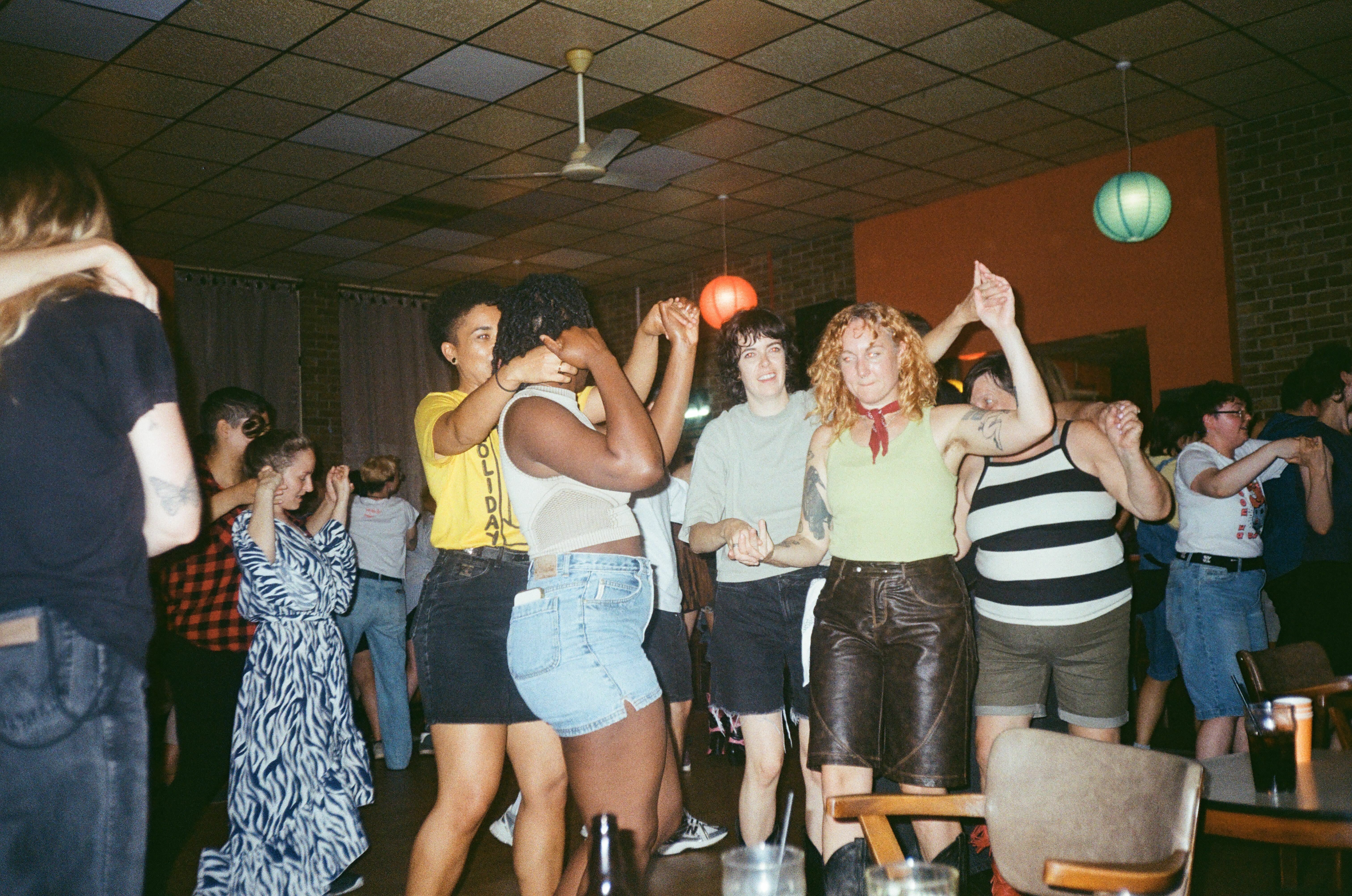 Social dancing such as this is a language, an oral tradition, sustained as it passes from person to person. That is one of the things that excites me most about what I’m learning: this knowledge that I could walk into a line dancing night anywhere in the world and be able to slot in. There might be slight vernacular differences in certain movements, but the idea of having a community somewhere you’ve never been, waiting for you, in itself feels very queer.