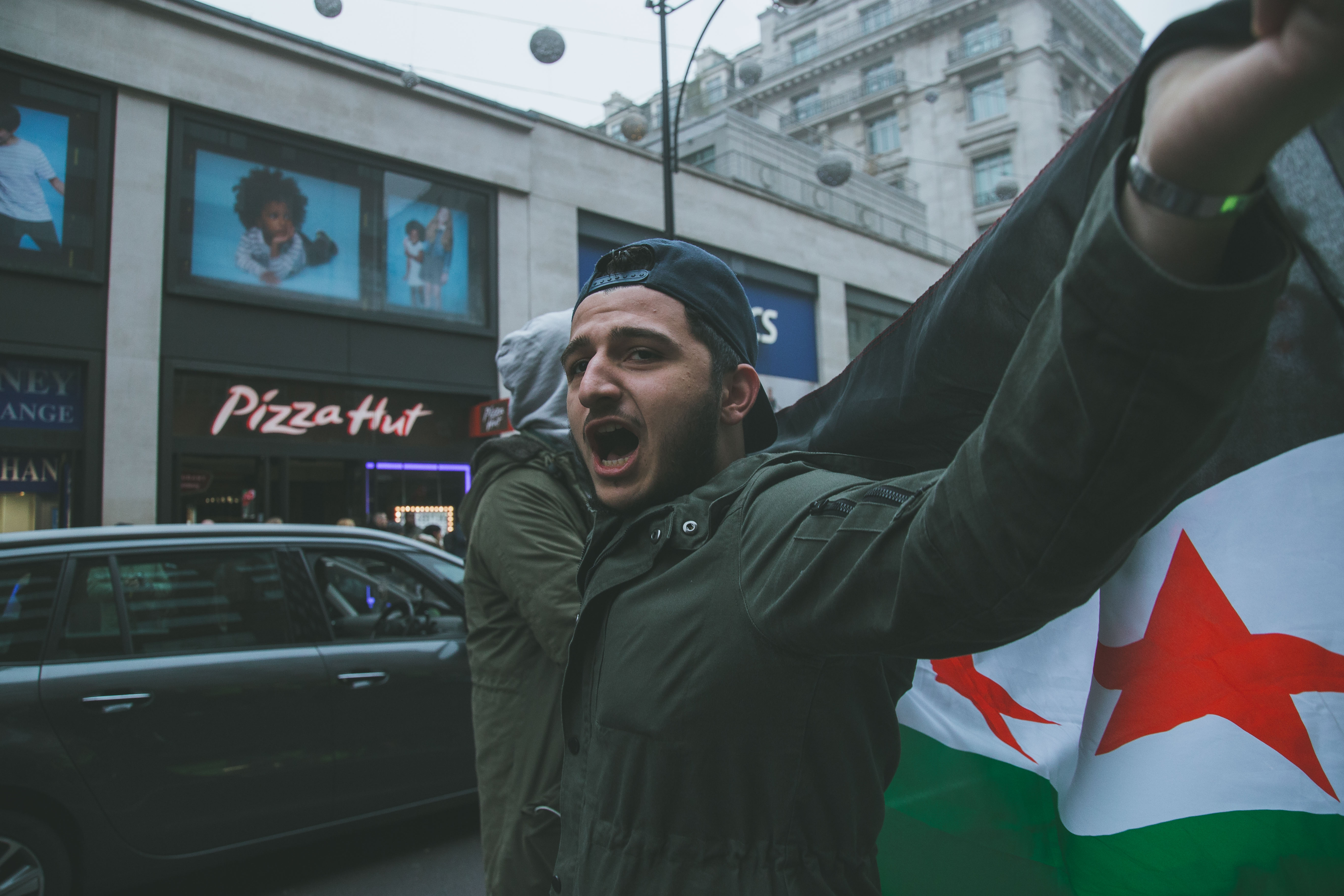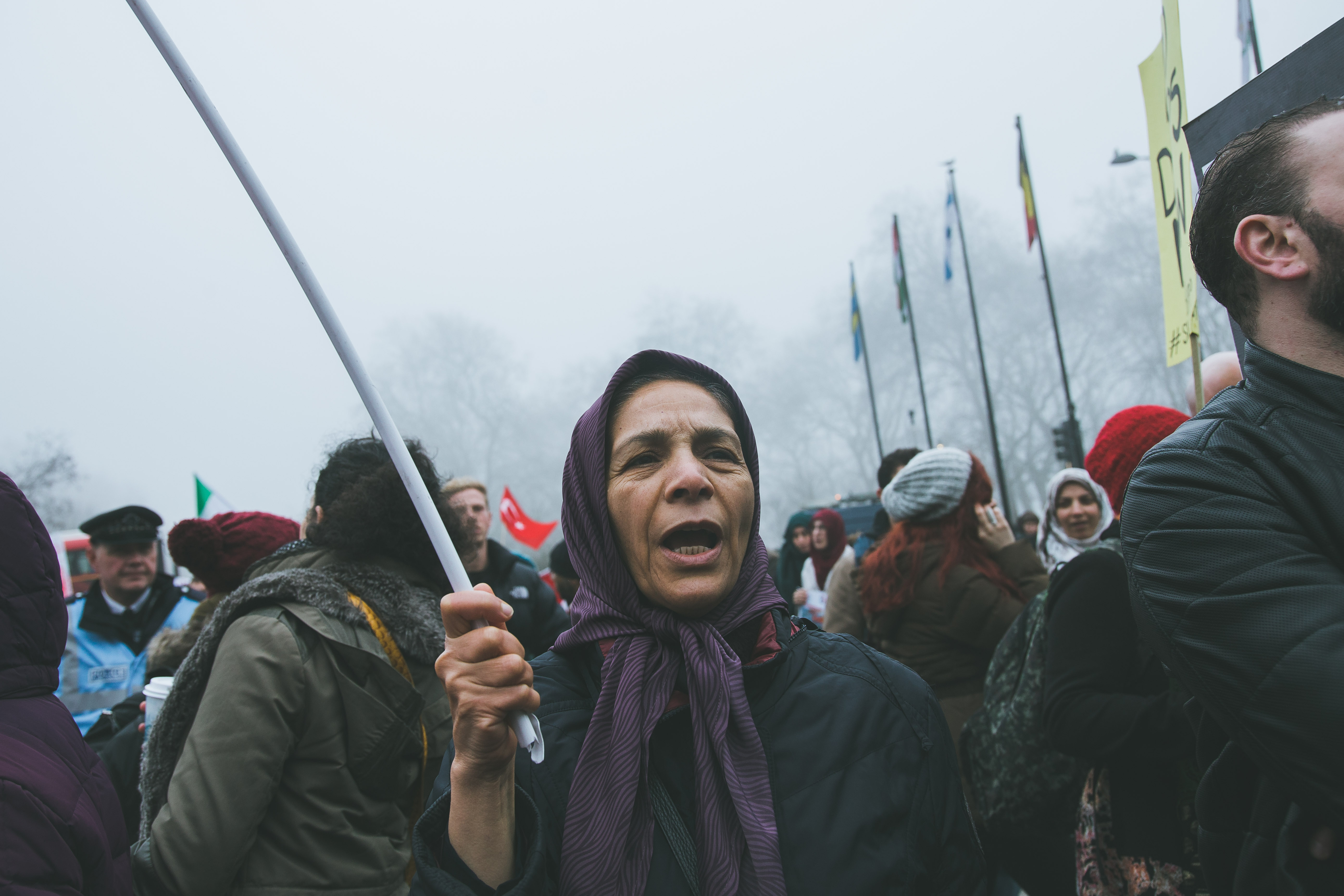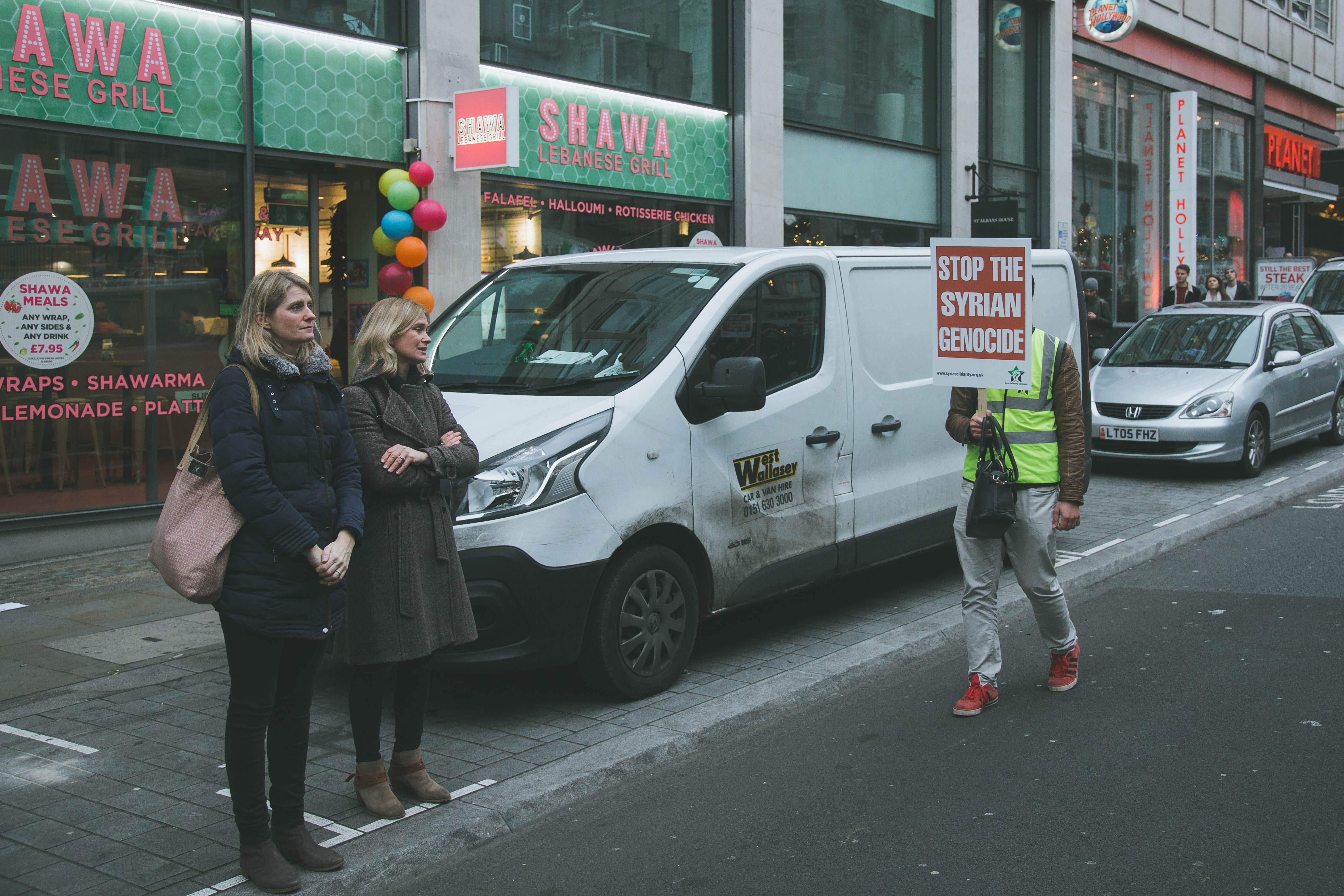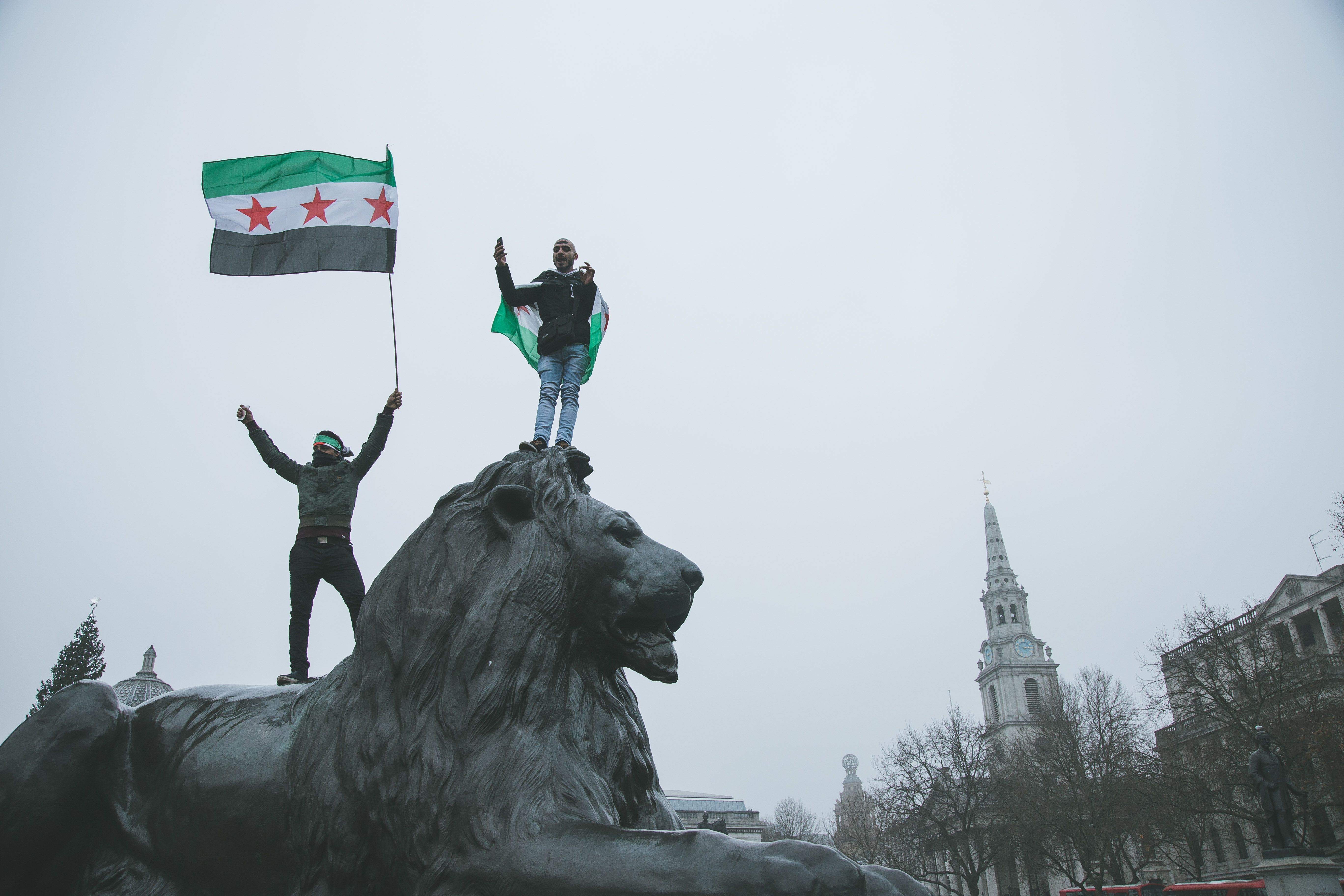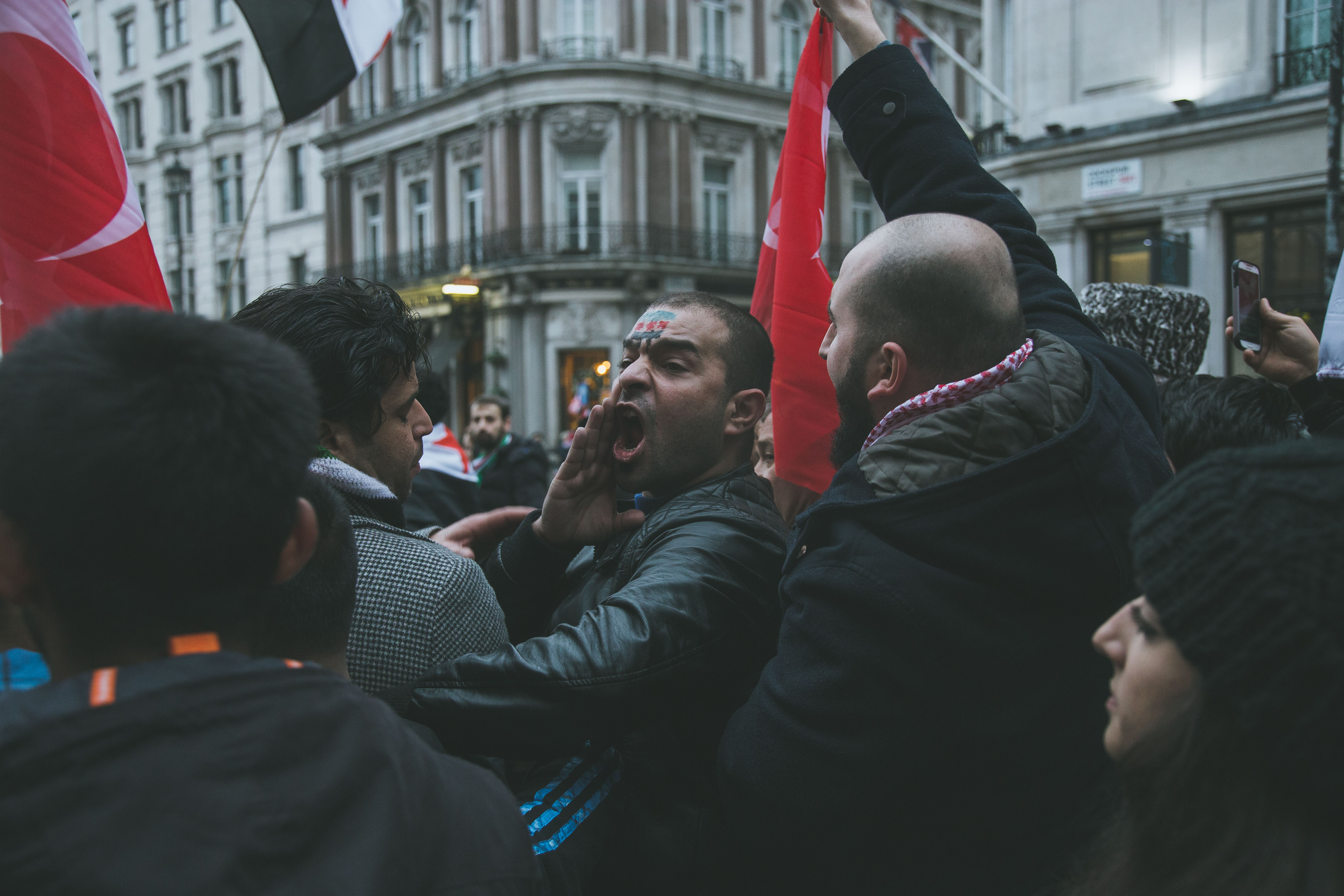 At first glance, the gathering of people at Marble Arch in the December fog could have been mistaken for a logjam of Christmas shoppers. But as the Syrian and Turkish flags and placards alien to your typical Oxford Street Saturday afternoon came into focus, and the chants of ‘While you’re shopping, bombs are dropping’ and ‘Down with Assad’ hit your ears, the reality soon became clear.