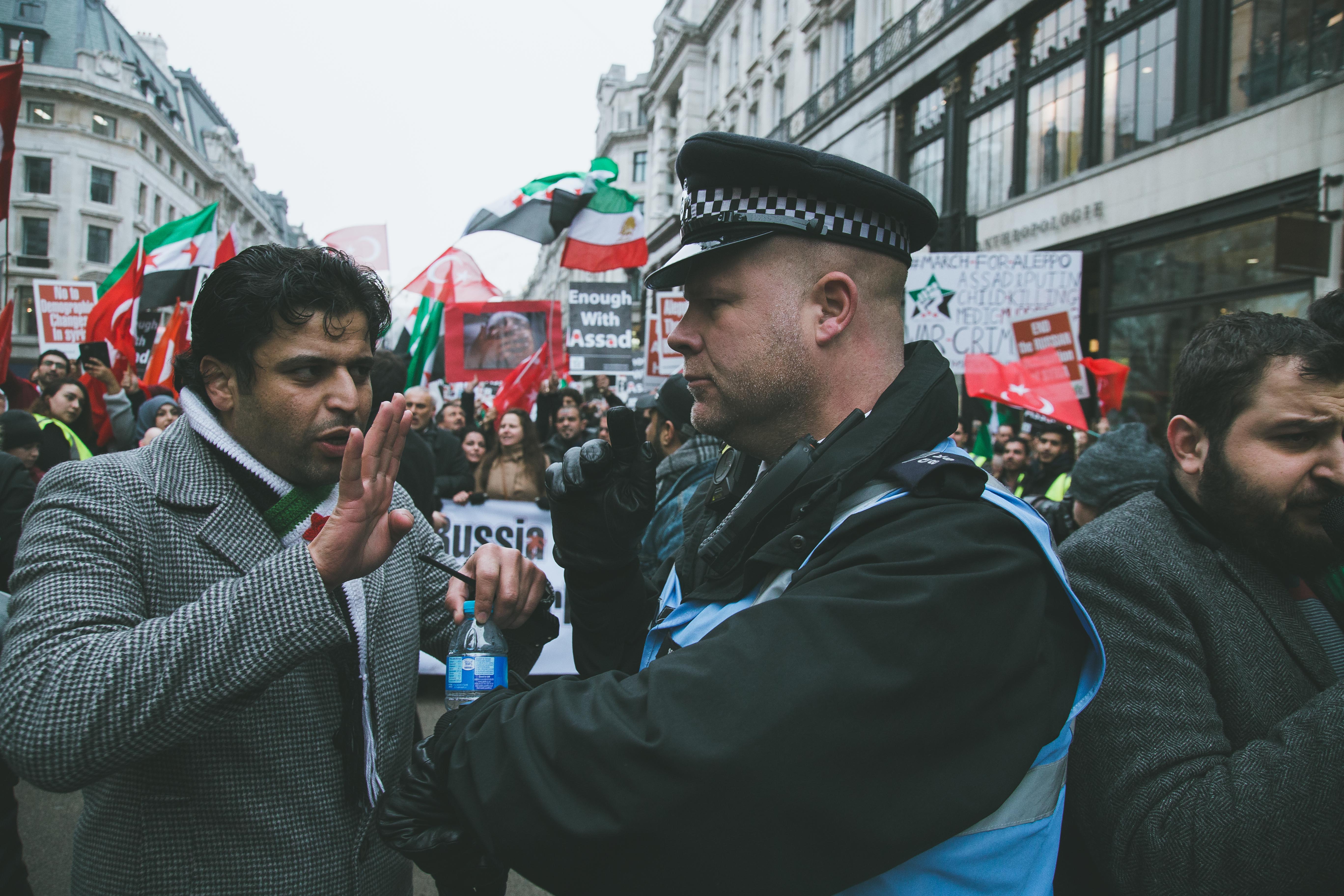 Marching from Marble Arch to Downing Street hundreds of protestors called on the British government and the international community to take action to help the civilians who remain in Syria’s eastern capital city of Aleppo. Yesterday’s crowd which included mainly Syrians, Turks and Iranians, as well as British supporters, was friendly and harmonious, but united in its determination to have its voice heard.