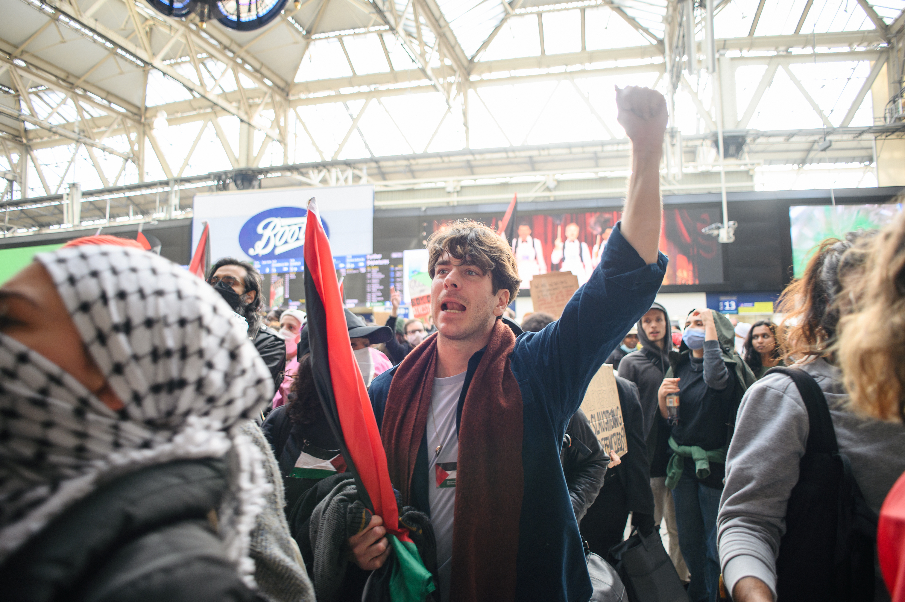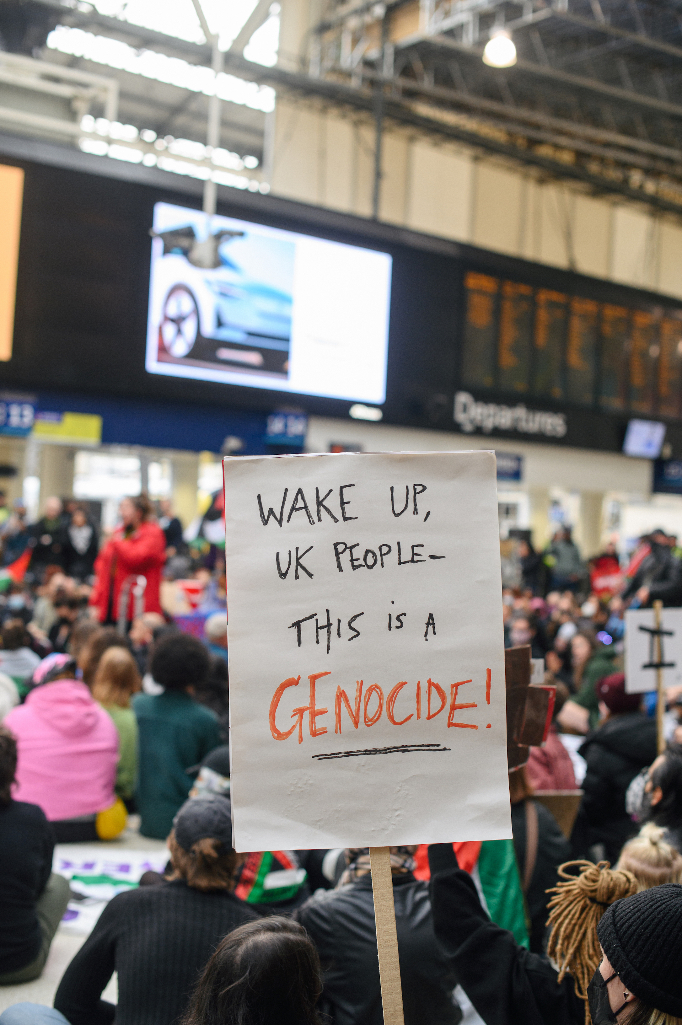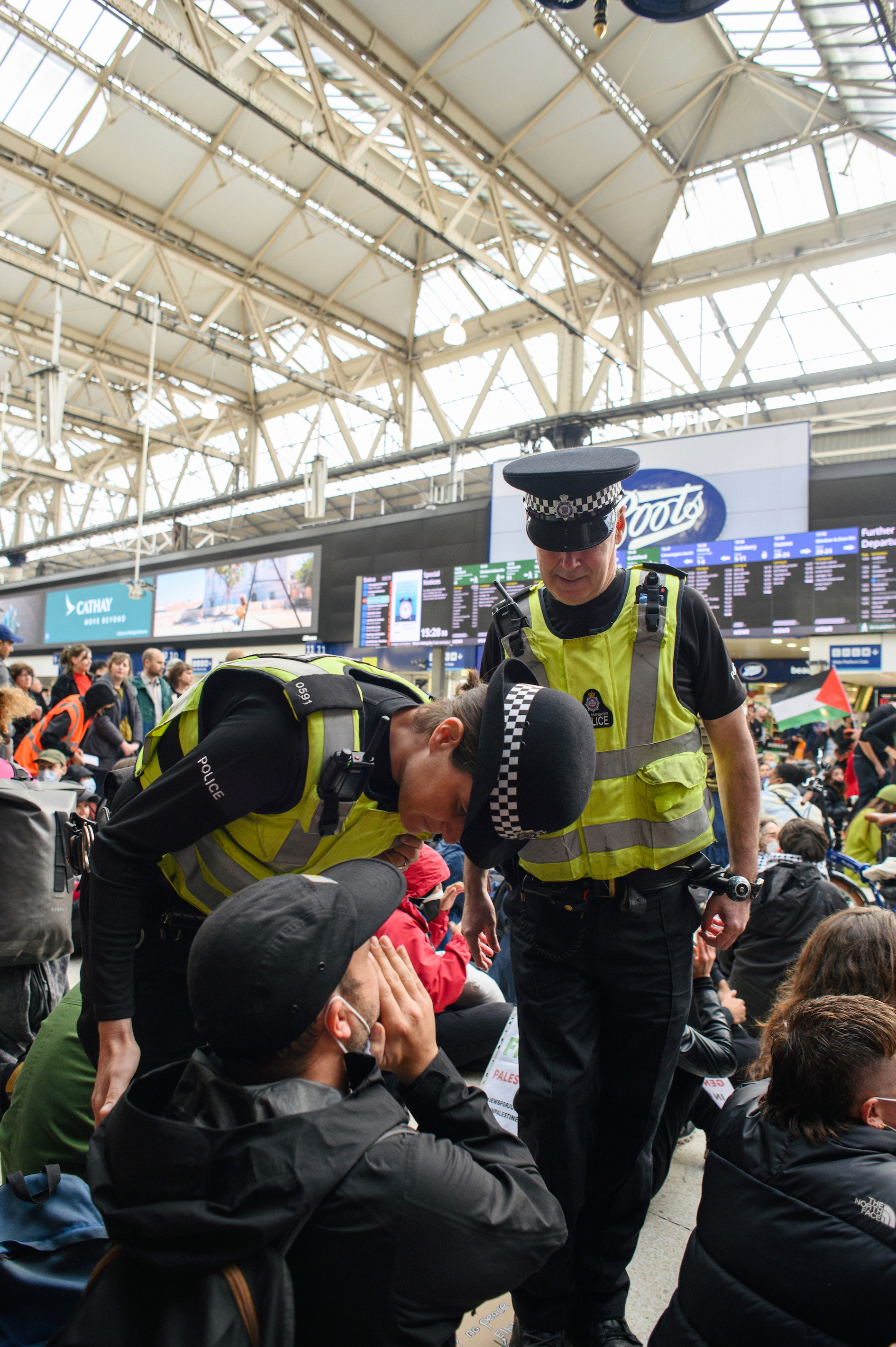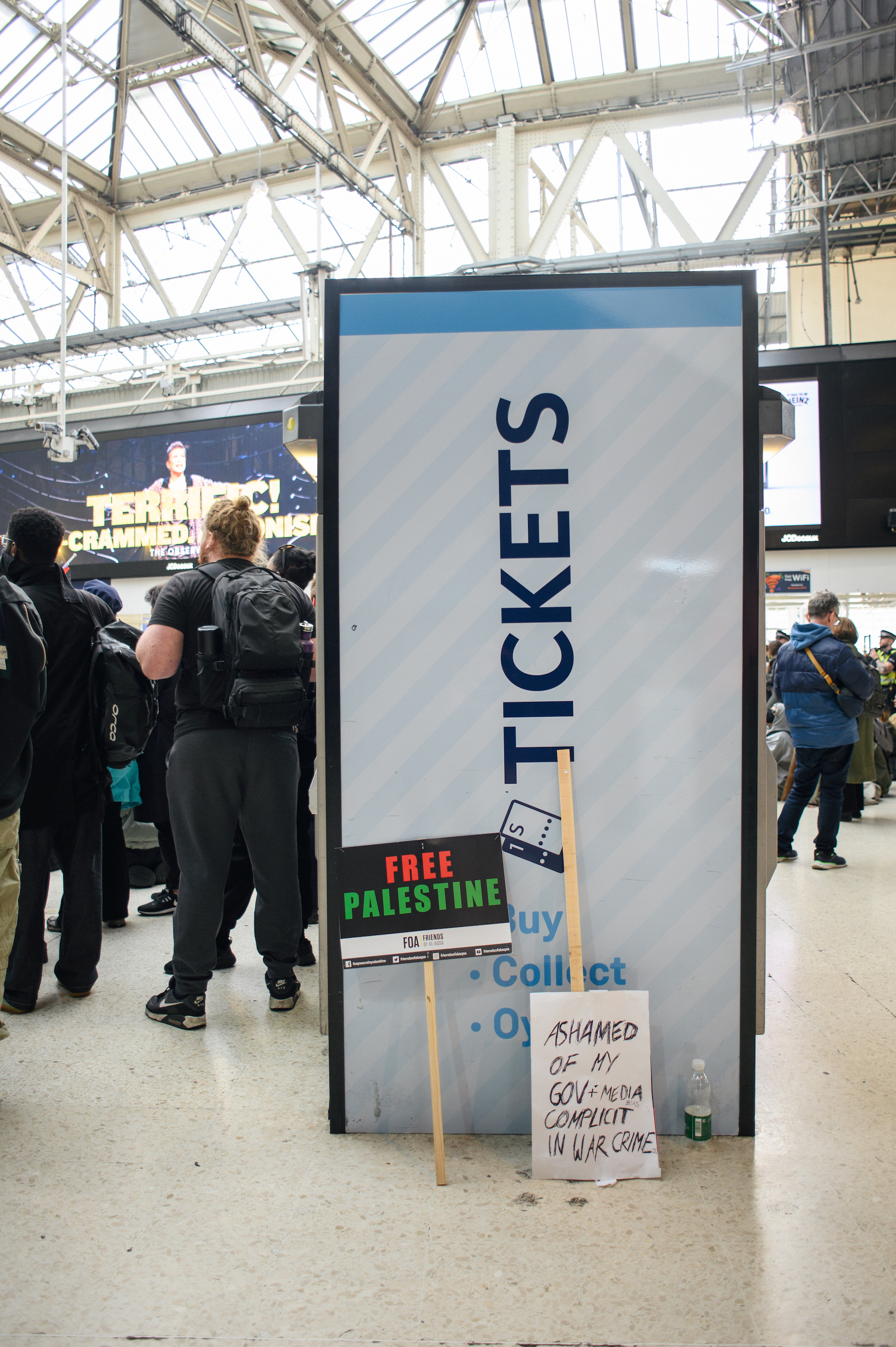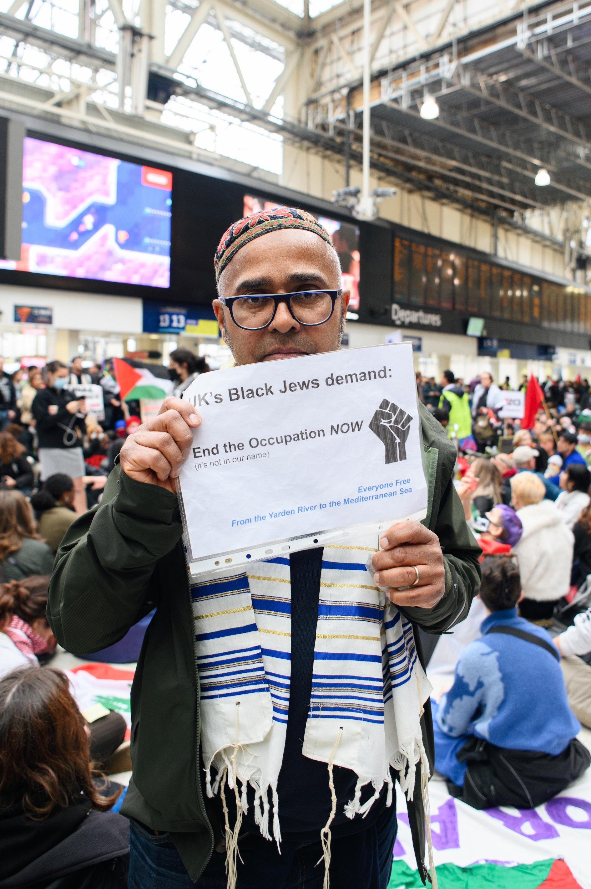 On Saturday, a similar action at London’s Waterloo station took place as the PSC march took place outside. The sit-in, called by activist group Sisters Uncut saw hundreds of activists, including those from groups like Na’amod and Black Jewish Alliance, take part. Those gathered listened to speeches, with organisers tweeting that they faced intimidation from the police. The sit-in ended with no arrests.