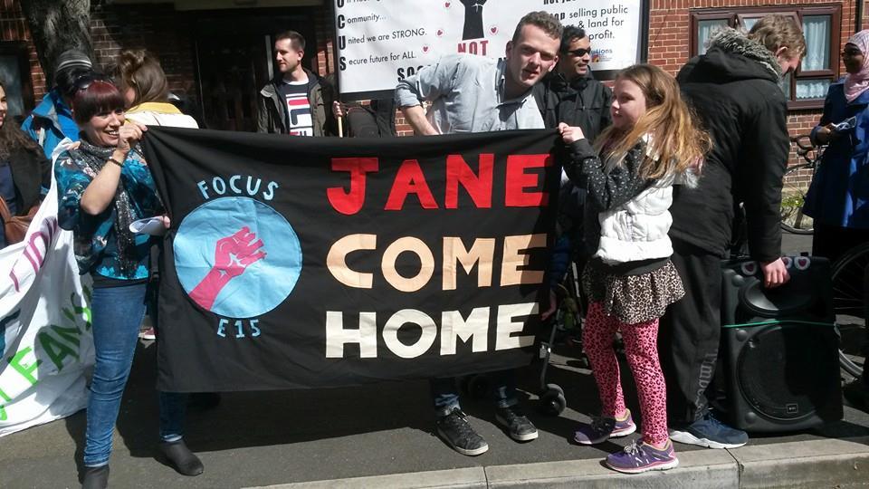 In East London, the Focus E15 Mums have occupied Jane Wood’s former home to protest against her eviction by Newham Council, after their successful occupation on the Carpenters Estate in 2014 forced Newham Council to rehouse families in the properties it had previously claimed were uninhabitable.