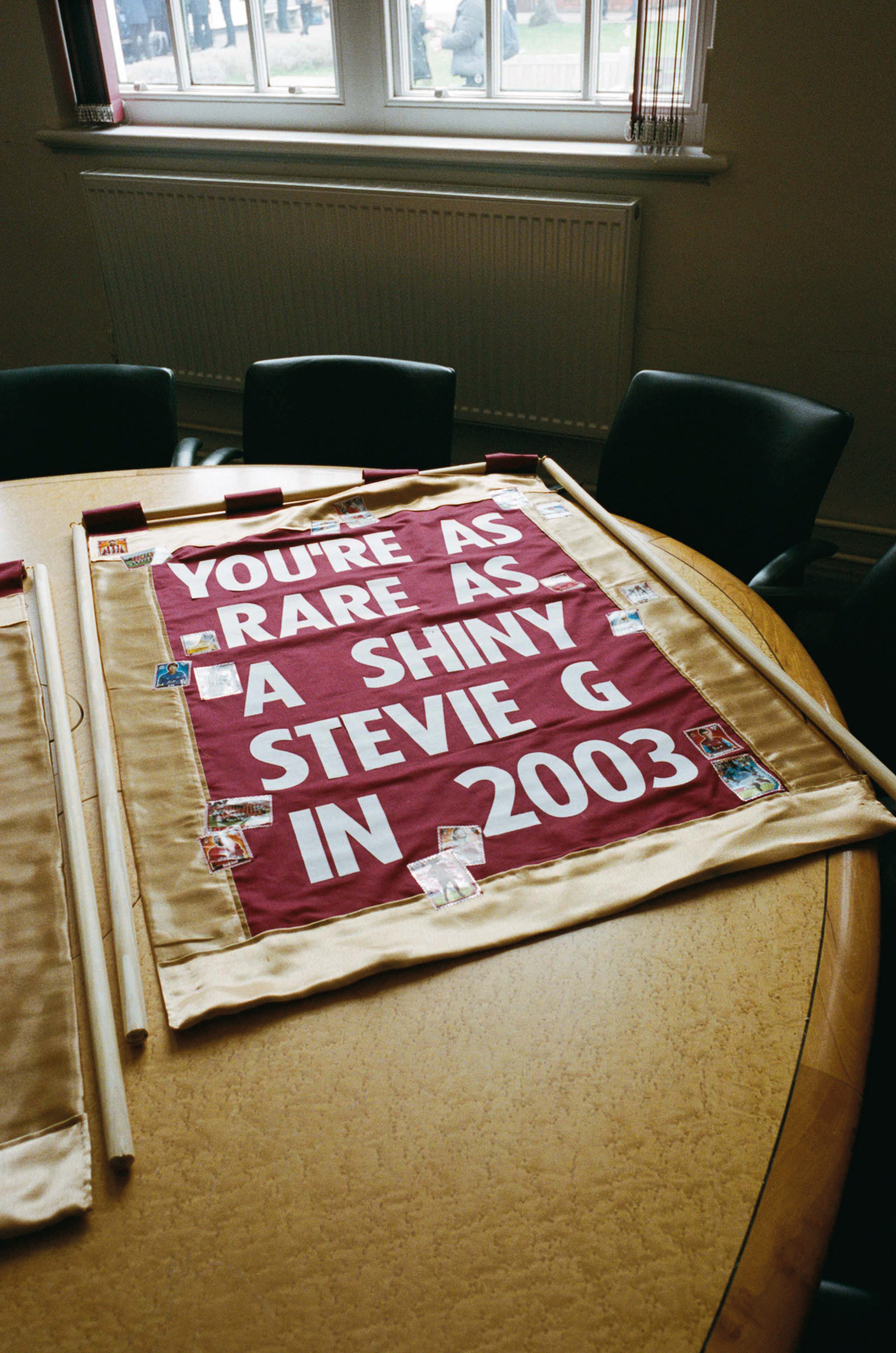 There’s a lot of art happening subliminally in spaces you wouldn’t imagine. I think it’s how you look at it. I was formed by those spaces, that’s why they bleed out into my work. I didn’t always see them as spaces of inspiration. It was only when I started to study art at university and started to study artists’ work that was autobiographical. I was homesick at the time and feeling out of place at university. Reflecting on my relationship with the north, and Sheffield particularly, through my family and football, I never realised that my mundane could be interesting to someone else or relatable. I would come home to visit my dad and go to football with a completely different mindset. I felt as though I could see things clearer. That’s when I started to see the art in all of it. The songs, the dress code, the flags and banners, the spaces I knew so well were transformed for me.