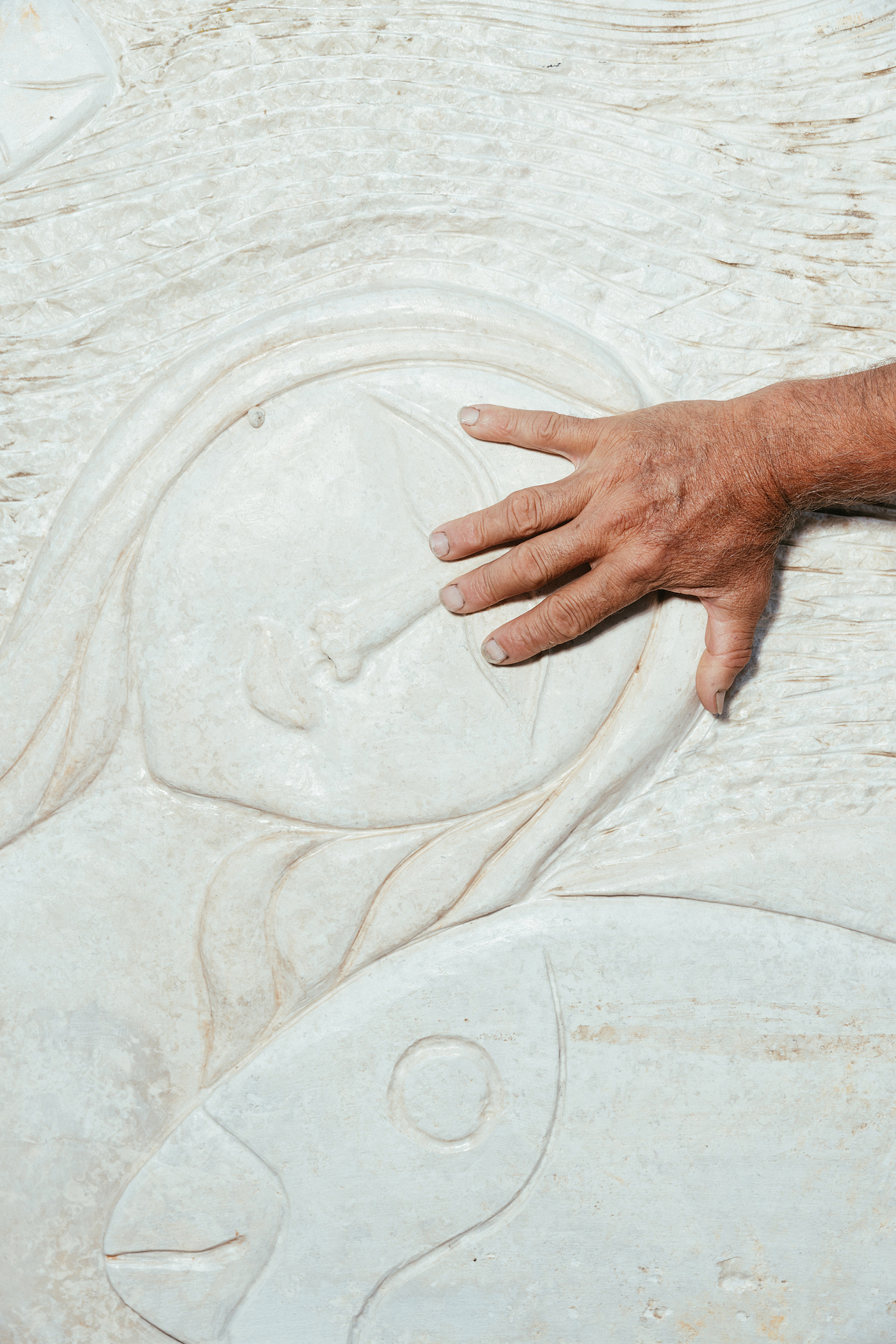The concept, a kind of eco-interventionist art, got a lift in 2013 when he met Franco Barattini, the owner of the Carrara quarry where Michelangelo used to source the white marble for his sculptures, and asked him if he could donate any blocks to be turned into sculptures; Fanciulli was offered 100. “The artistic tradition really helped me with my work,” he says. In 2015 Casa dei Pesci or ‘the house of the fishes’ was born, including works from the British sculptor Emily Young.
