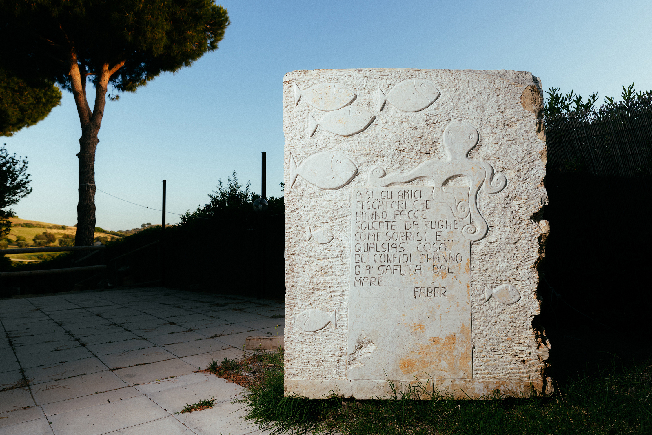 Instead of payment the artists are given a dinner at Fanciulli’s home with fish caught from the bay of Talamone. The new sculptures include: ‘The Big Dive’ by Anna Torre, in which a female figure is bent over mid-dive to remind us of the harmonious relationship humans can have with the sea, Wimar Van Ommen’s ‘Fragment of light’ where huge penetrating eyes keep watch for illegal trawlers above and the ‘Dream of a fisherman’ in which Claudia Zanaga has chiselled a Buddha-like figure cuddling a fish to represent a fisherman who embraces the fish, inspired by Fanciulli.