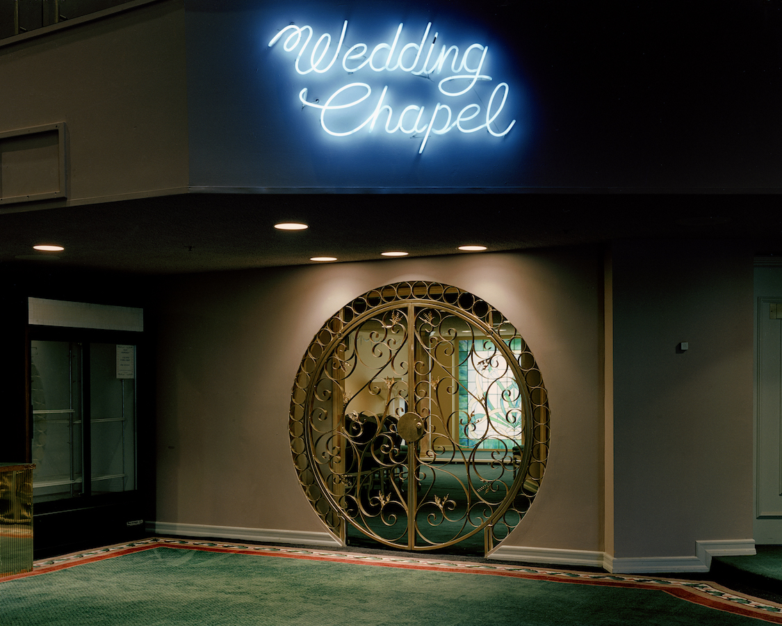 Revisiting the images decades later also prompted Hilton to reflect on the “implosion” of America, with the Financial Crash, and Trump’s presidency. “The American Dream is literally in tatters,” she says. “So now, when I’m looking at the wedding chapels, I feel they reflect that kind of isolation and disquietude… [The country] is going to have to rebuild.”