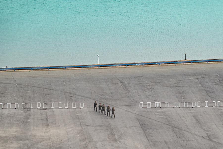 The more mundane scenes, of workers folding blankets, or manning production lines, were prohibited, and had to be taken covertly. The tour guides would ask to see Lau’s camera regularly, and ask for photos to be deleted. But Lau got around this by backing up his photos: “You show them deleting your photo, but they don’t know you have a copy.”