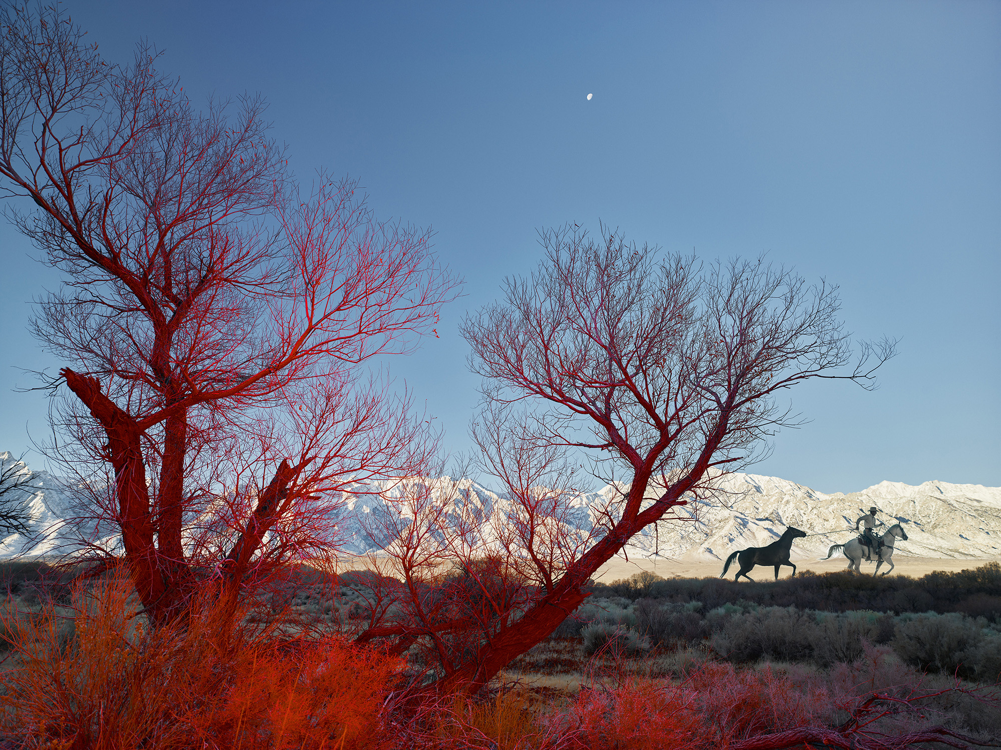 Close as Prince would come was none other than Jim Krantz, the mastermind behind the ’80s and ’90s Marlboro ads that have become synonymous with the myth of how the West was won. Steeped in the vivid mythos of rugged individualism, the cowboy stands as Manifest Destiny incarnate, casting their fate in the ability to hold their own against the perils of nature. “The truth about the West is it is populated by few things, especially the West I’ve been immersed in; it’s cowboys and animals, the symbiotic relationship they have, and the drama of the harsh, unforgiving environment where they live,” says Krantz.