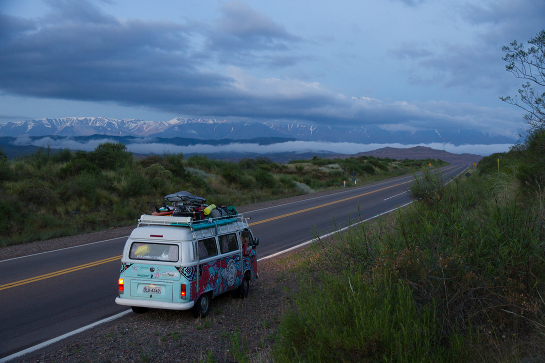 So in 2016, 40 years after the original adventure, the trio set off on the same route – snaking along stretches of open highway, camping beneath snow-capped mountains – with Gabriela, Cissa’s three-year-old daughter, taking up the fourth spot. They hit the road in another old VW Kombi – its baby-blue hue splattered with twisting decals in red and lilac – and are still going.
